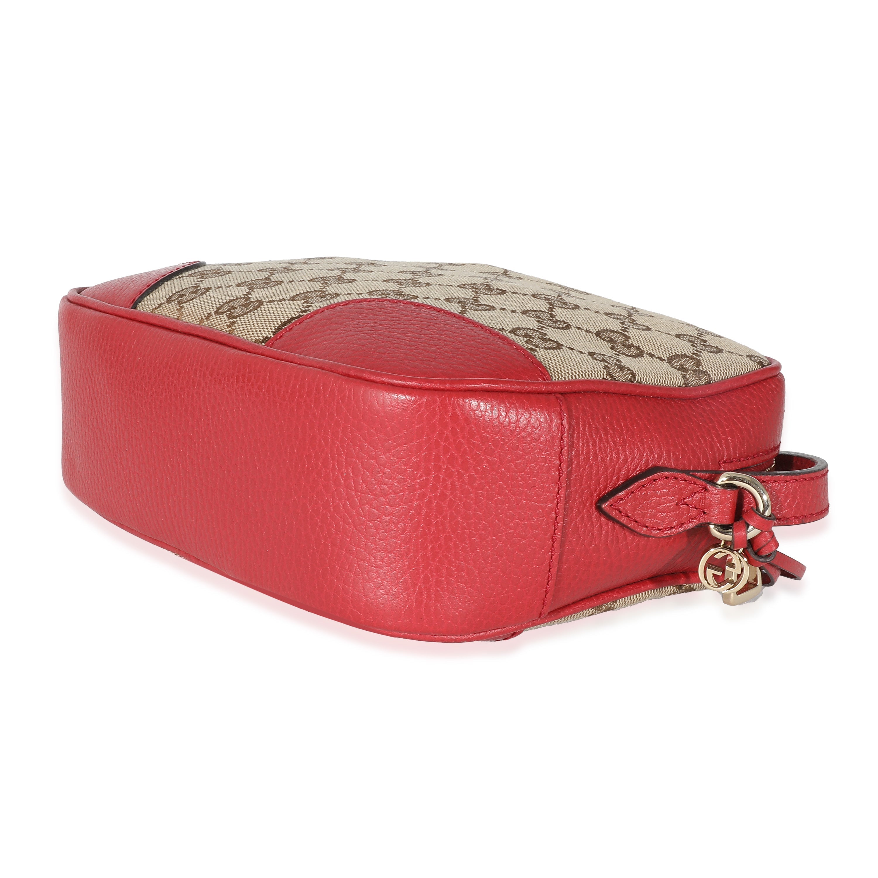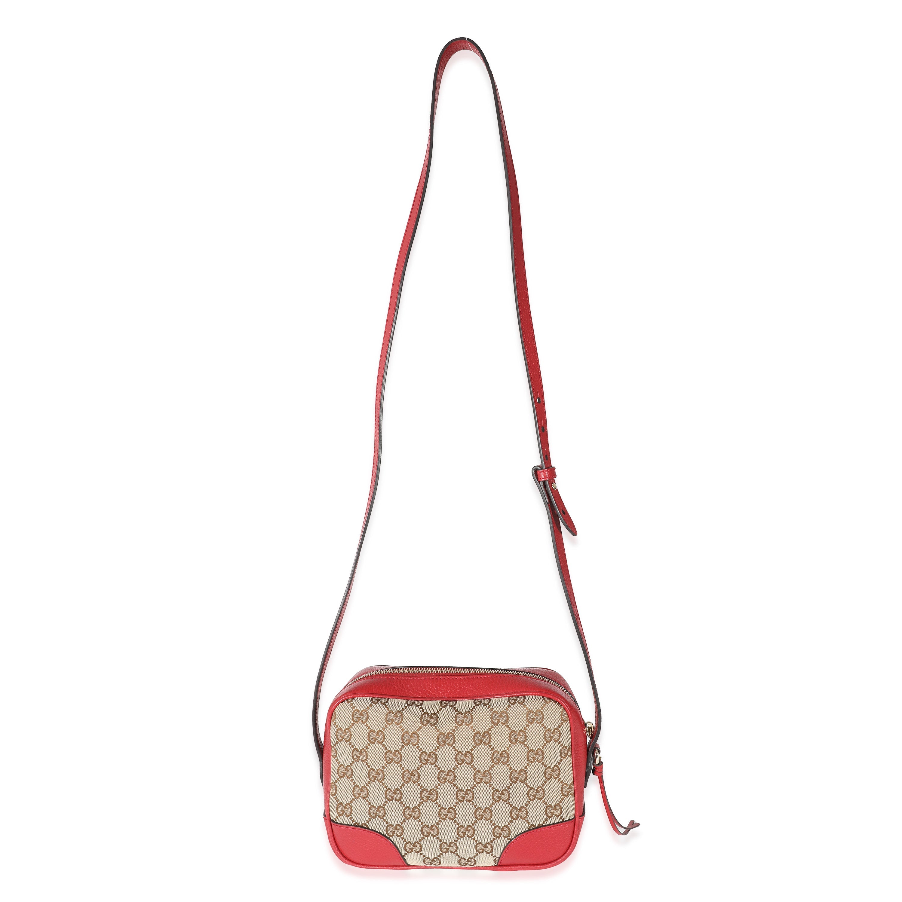 Experimente el lujo con el bolso bandolera Bree de lona GG roja de GUCCI. Fabricado en Italia, este bolso presenta un exterior rojo vibrante de lona duradera. Su tamaño compacto de 8,2 x 7 x 2,6 pulgadas lo hace perfecto para aventuras en movimiento, mientras que la correa ajustable para una caída de 22 pulgadas permite un uso cómodo. Incluye funda guardapolvo y folleto de cuidados.