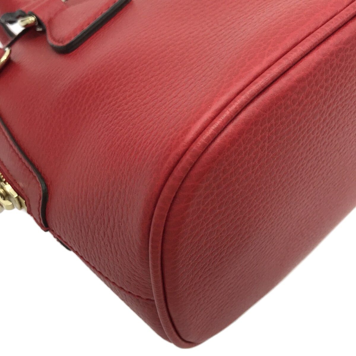 Experimente el lujo y el estilo con el bolso de mano GUCCI con G entrelazada en rojo. Este bolso, que mide 18,3 x 20,3-24,5 x 13 cm, está elaborado con precisión y cuenta con un práctico bolsillo interior. Con una altura de asa de 8,5 cm, es el accesorio perfecto para cualquier ocasión.