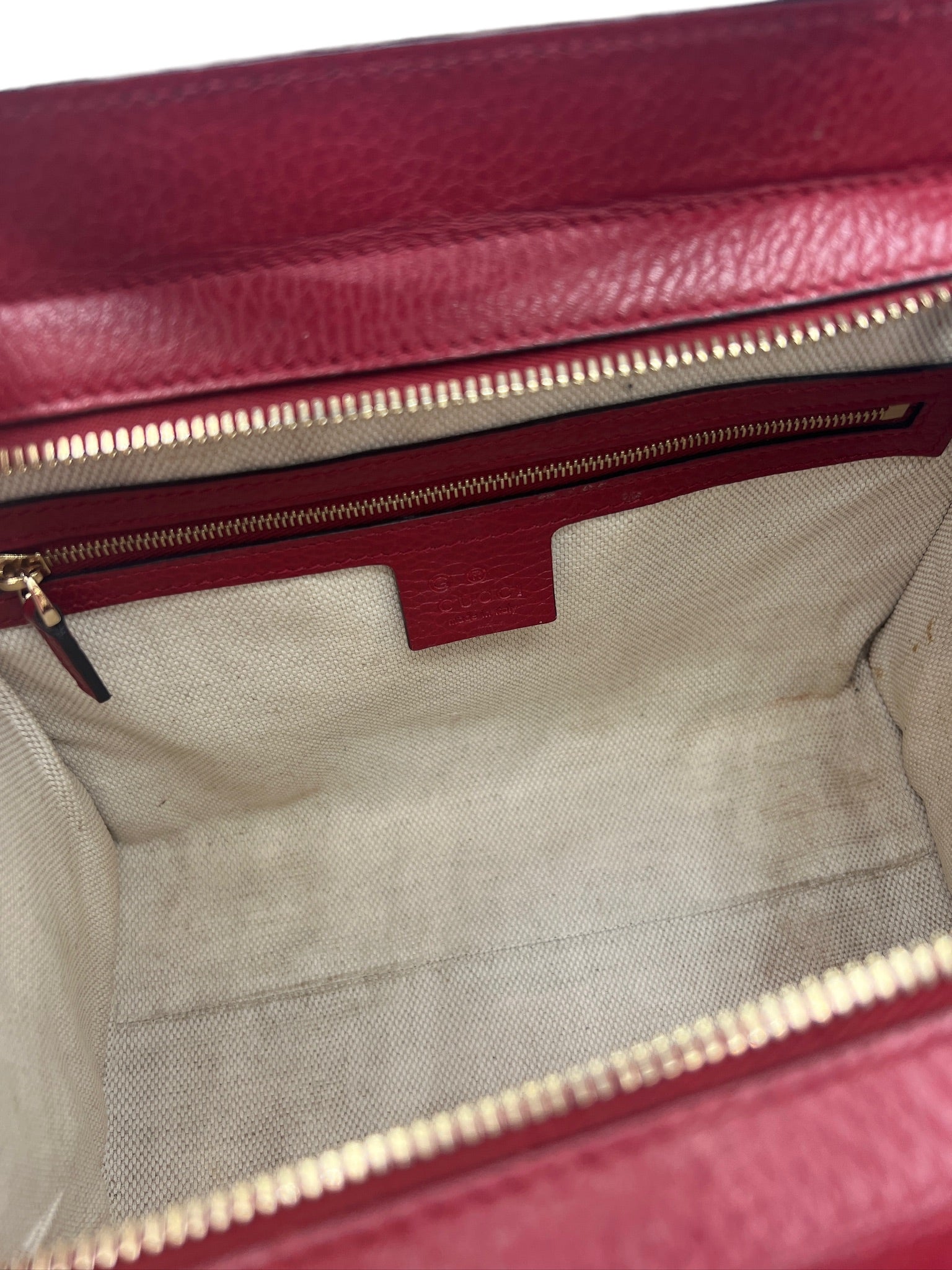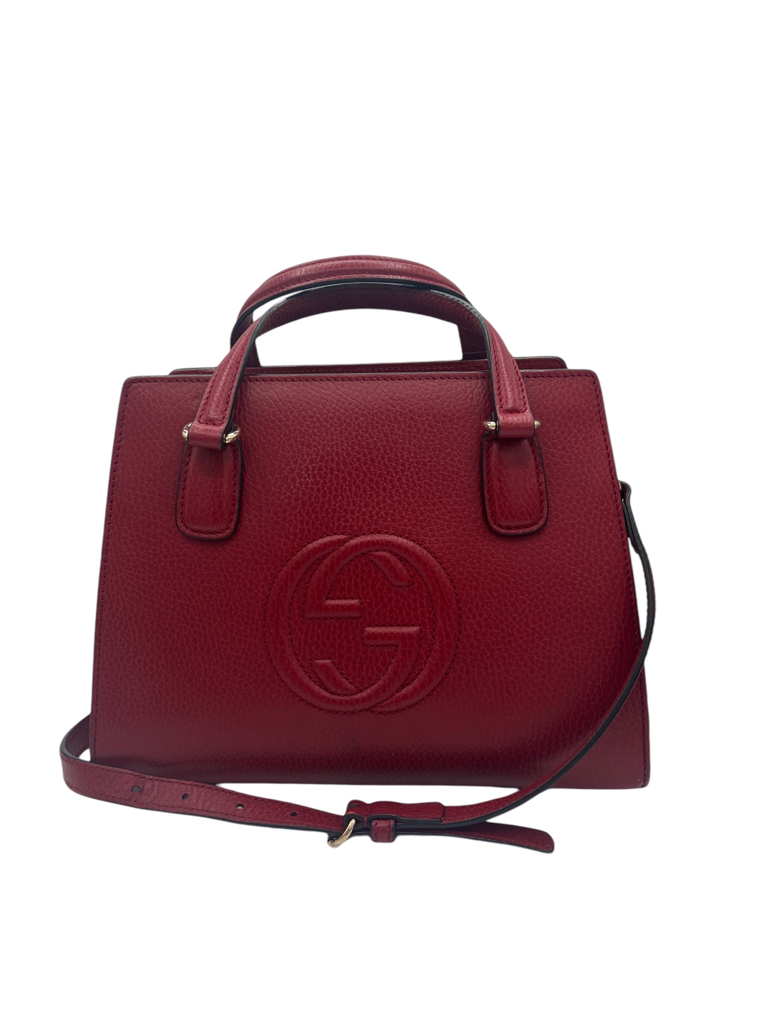 Este bolso GUCCI - Sac Soho GG Roufe usado es el complemento perfecto para cualquier colección. Con su llamativo tejido de piel roja y sus herrajes dorados, seguro que llamará la atención dondequiera que vaya.