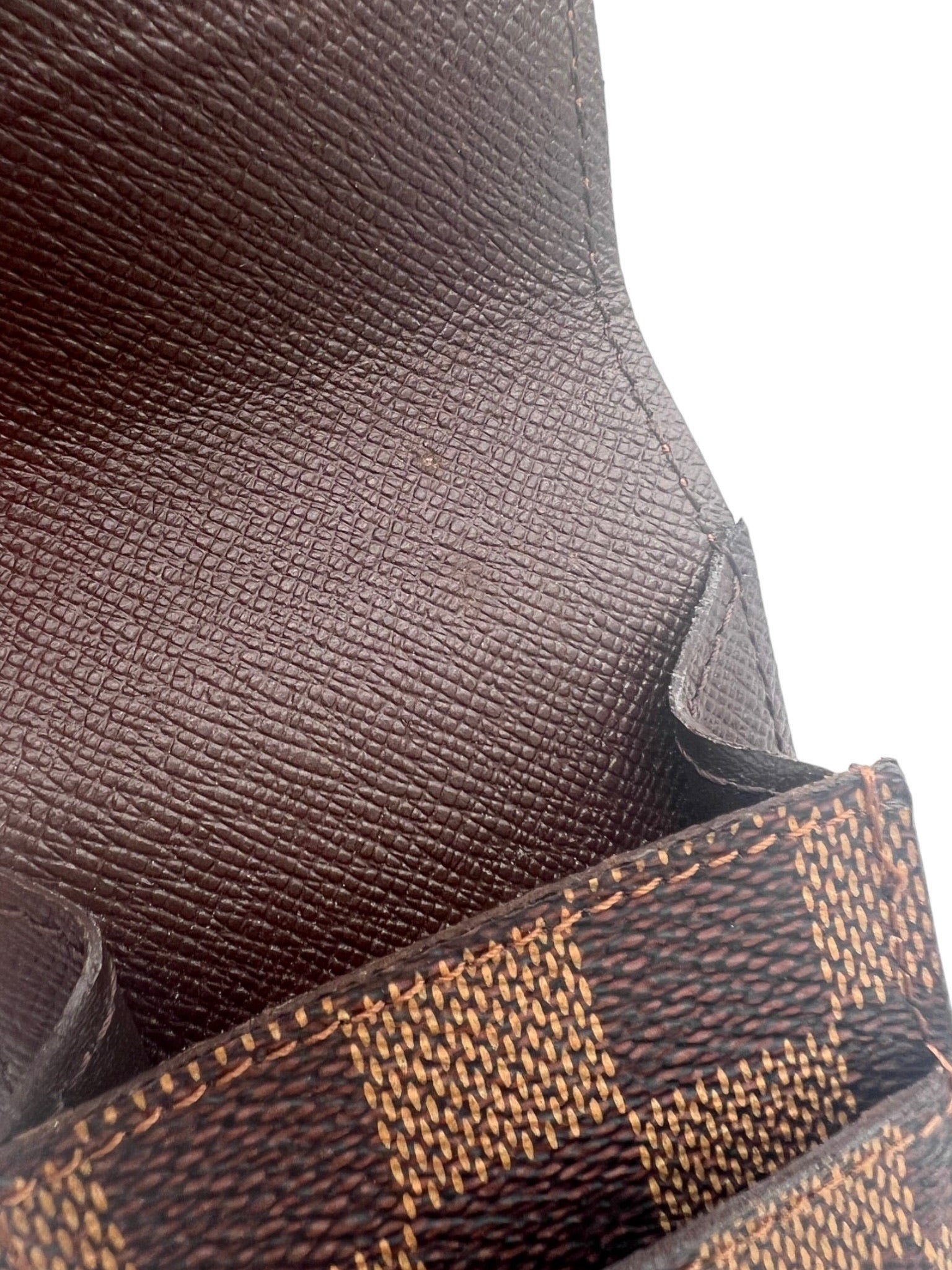 Este exquisito estuche para accesorios LOUIS VUITTON en Damier Ebene es el complemento perfecto para cualquier colección. Fabricado con lona de lujo y con un diseño elegante, ofrece una elegancia atemporal. Compacto y práctico, este estuche protegerá sus cigarrillos con estilo. Mide 4,72" x 2,56" x 0,98".
