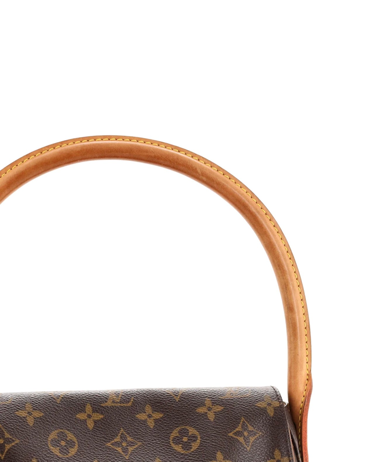 El bolso de mano Looping Monogram Mini de LOUIS VUITTON es el accesorio perfecto para cualquier ocasión. Con lujosos herrajes dorados y el icónico monograma LV, este bolso rezuma elegancia y sofisticación. Con un interior espacioso y un asa duradera, es elegante y funcional. Aunque el asa puede mostrar un desgaste moderado y marcas de agua, la calidad general y la artesanía de este bolso de diseño no se pueden negar.