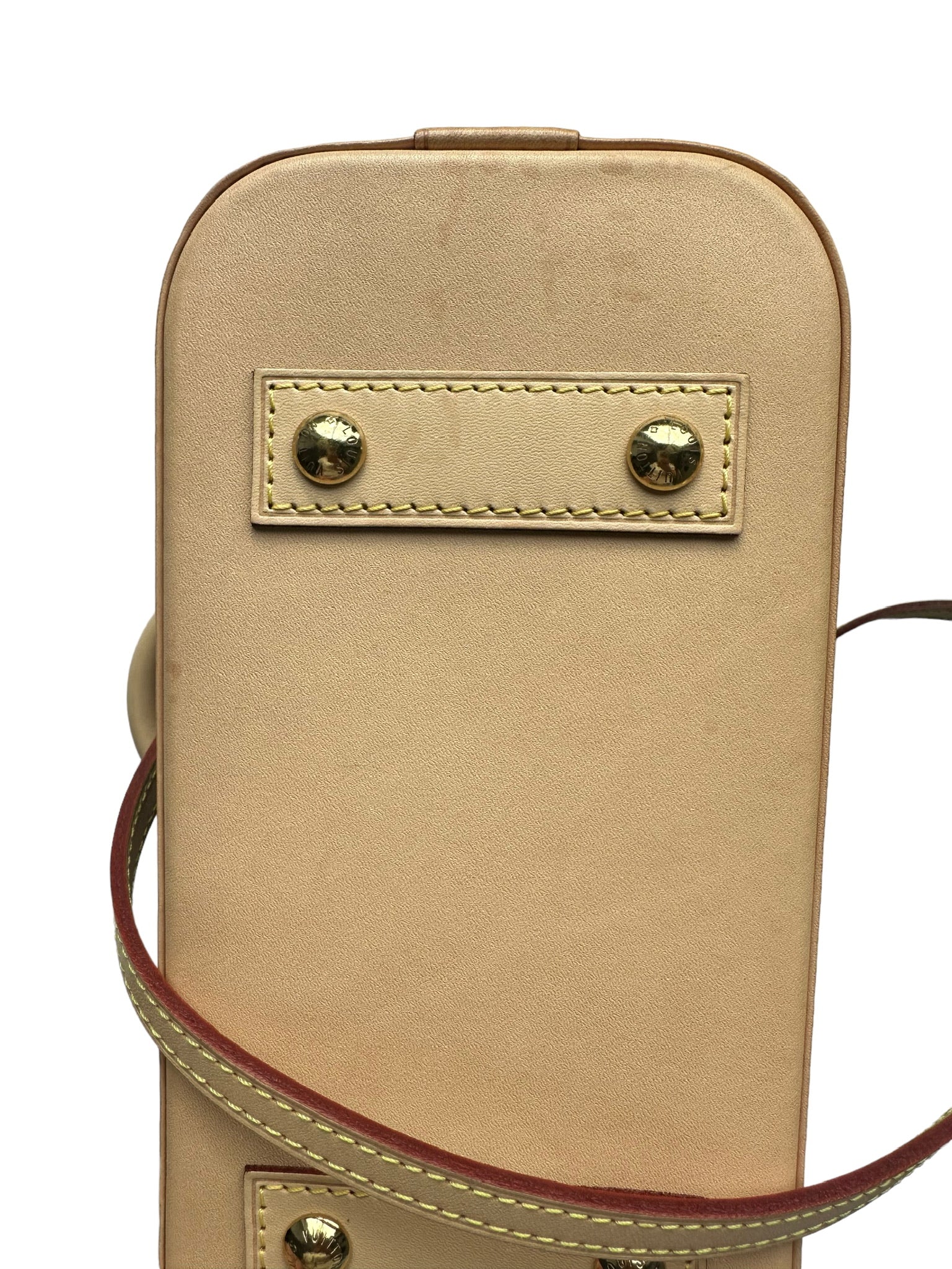 Estado: Muy bueno. Signos leves de desgaste. Muy buen estado. Pátina ligera en el cuero. Marcas de agua en la base. Ligeros rayones en los herrajes. Ligera decoloración en el forro. Incluye funda guardapolvo