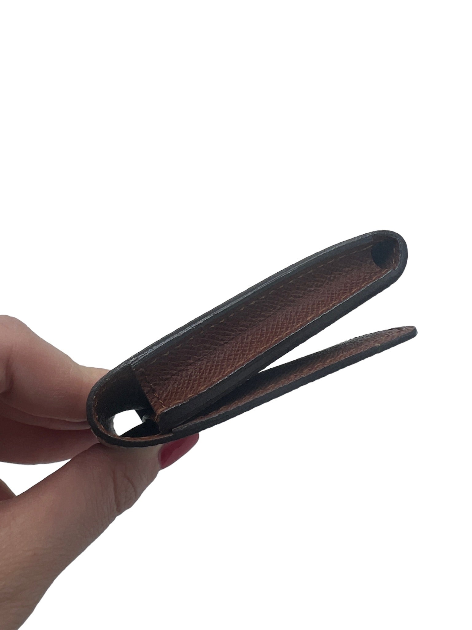 Impresione a sus clientes potenciales con este tarjetero de LOUIS VUITTON. Su tamaño compacto permite guardarlo fácilmente en un bolsillo o maletín. El diseño clásico con monograma irradia profesionalidad, mientras que los compartimentos y bolsillos internos brindan una organización conveniente. Dimensiones: Alto: 3,15 pulgadas (8 cm) Ancho: 4,13 pulgadas (10,5 cm) Profundidad: 0,59 pulgadas (1,5 cm)