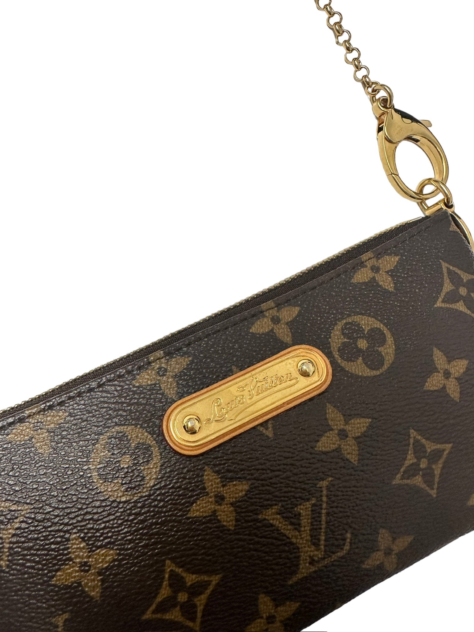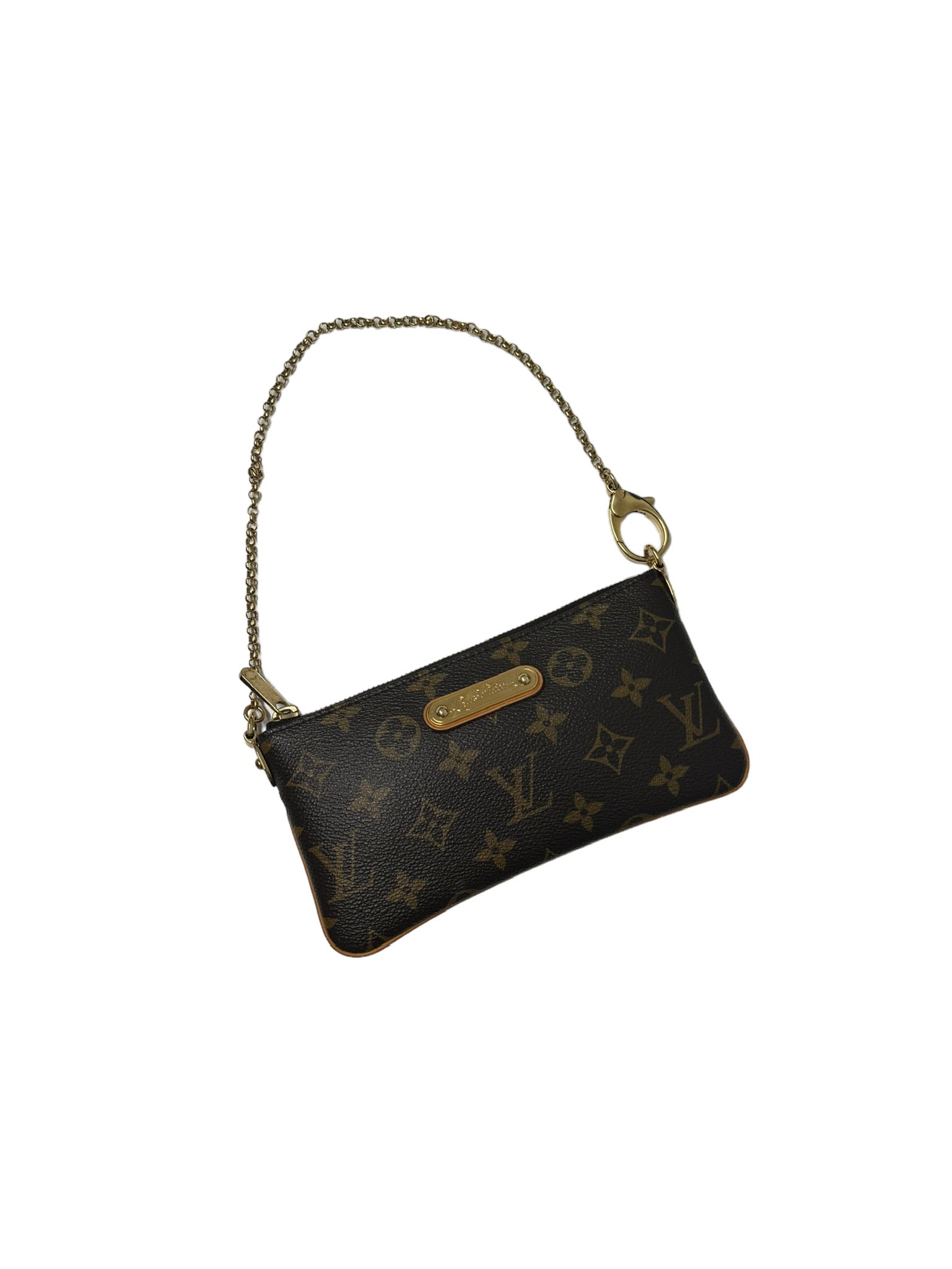 El bolso de mano Milla de lona Monogram de LOUIS VUITTON es un elegante bolso de mano confeccionado con la icónica lona revestida Monogram y lujosos herrajes dorados. Es perfecto para salir de noche o para ocasiones especiales, ya que combina un estilo atemporal con la calidad característica de la marca.