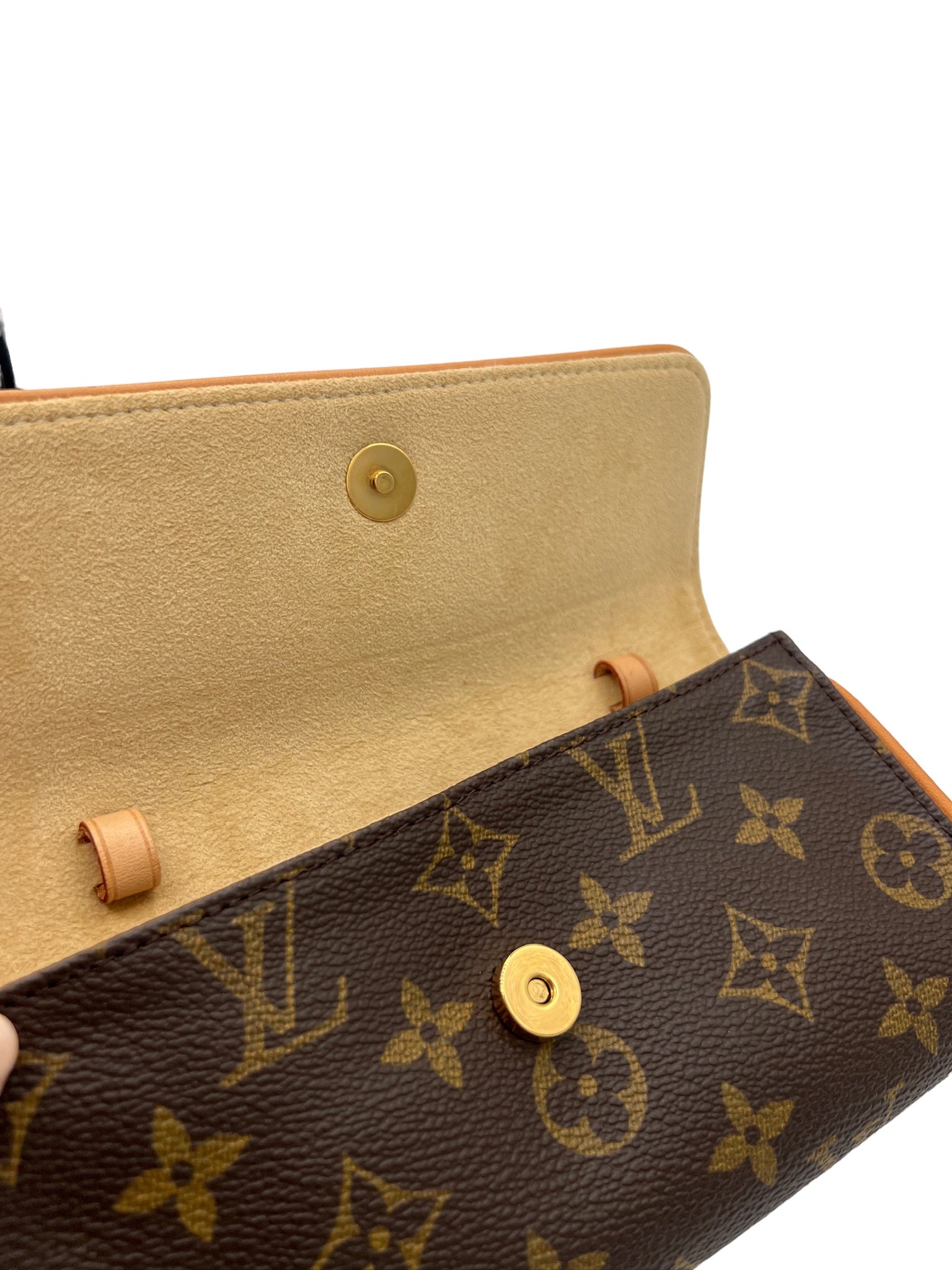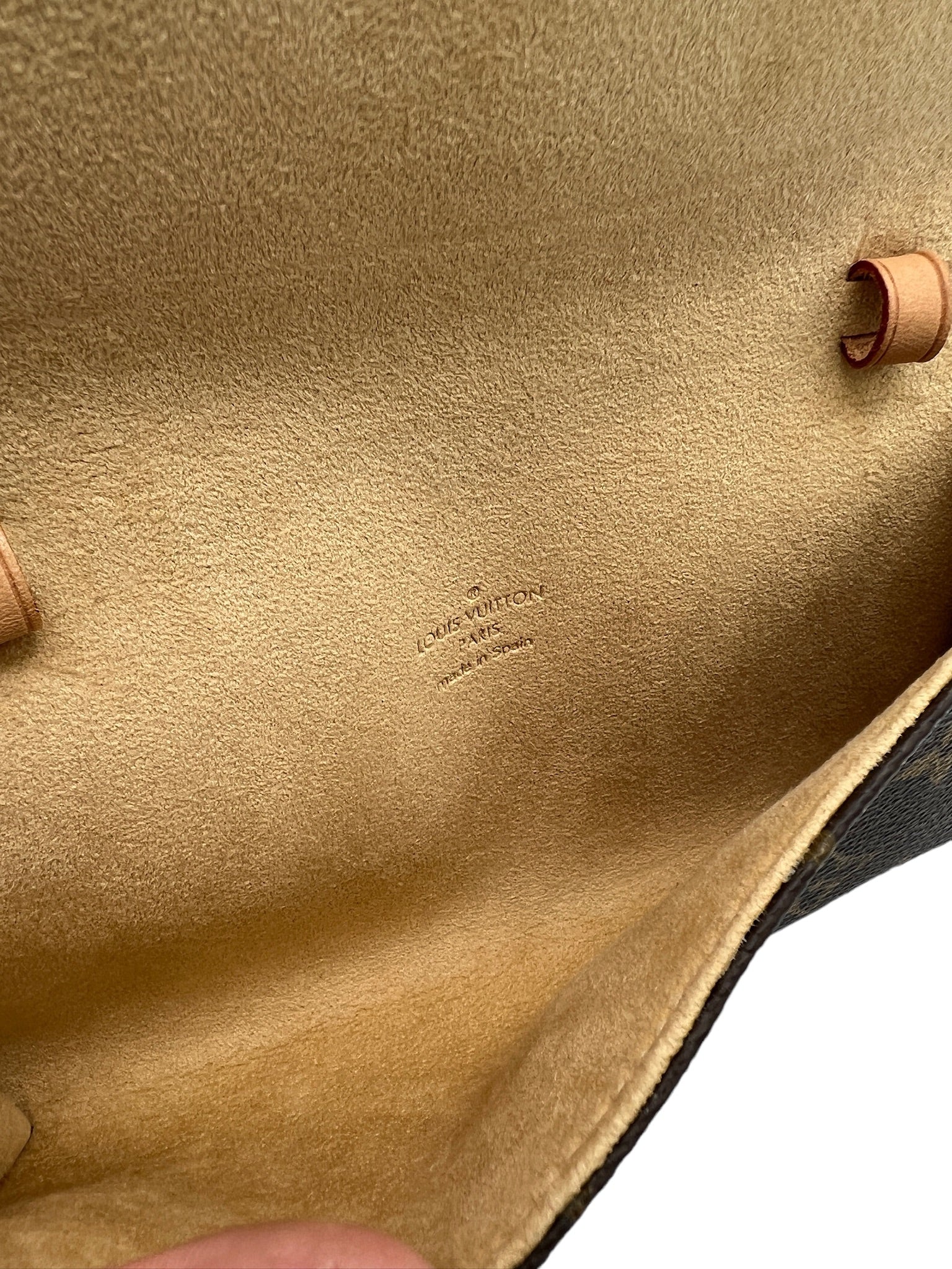 El bolso Pochette Twin de lona Monogram de LOUIS VUITTON usado viene con una bolsa guardapolvo para mantenerlo protegido cuando no está en uso, lo que hace que la compra valga aún más la pena.