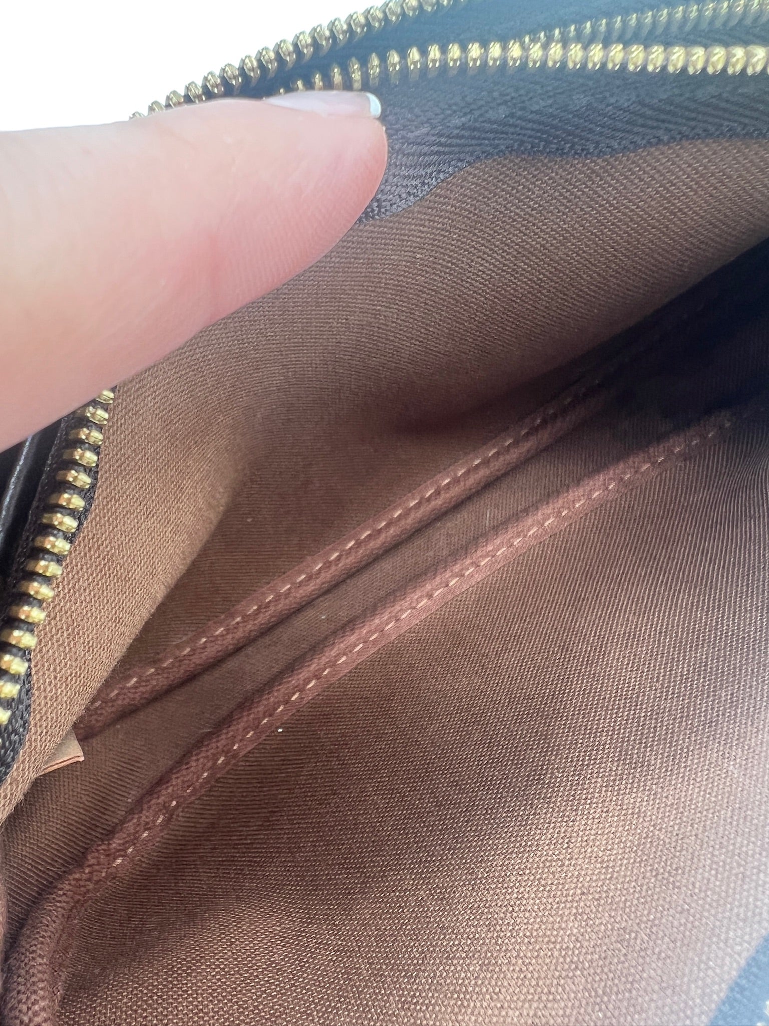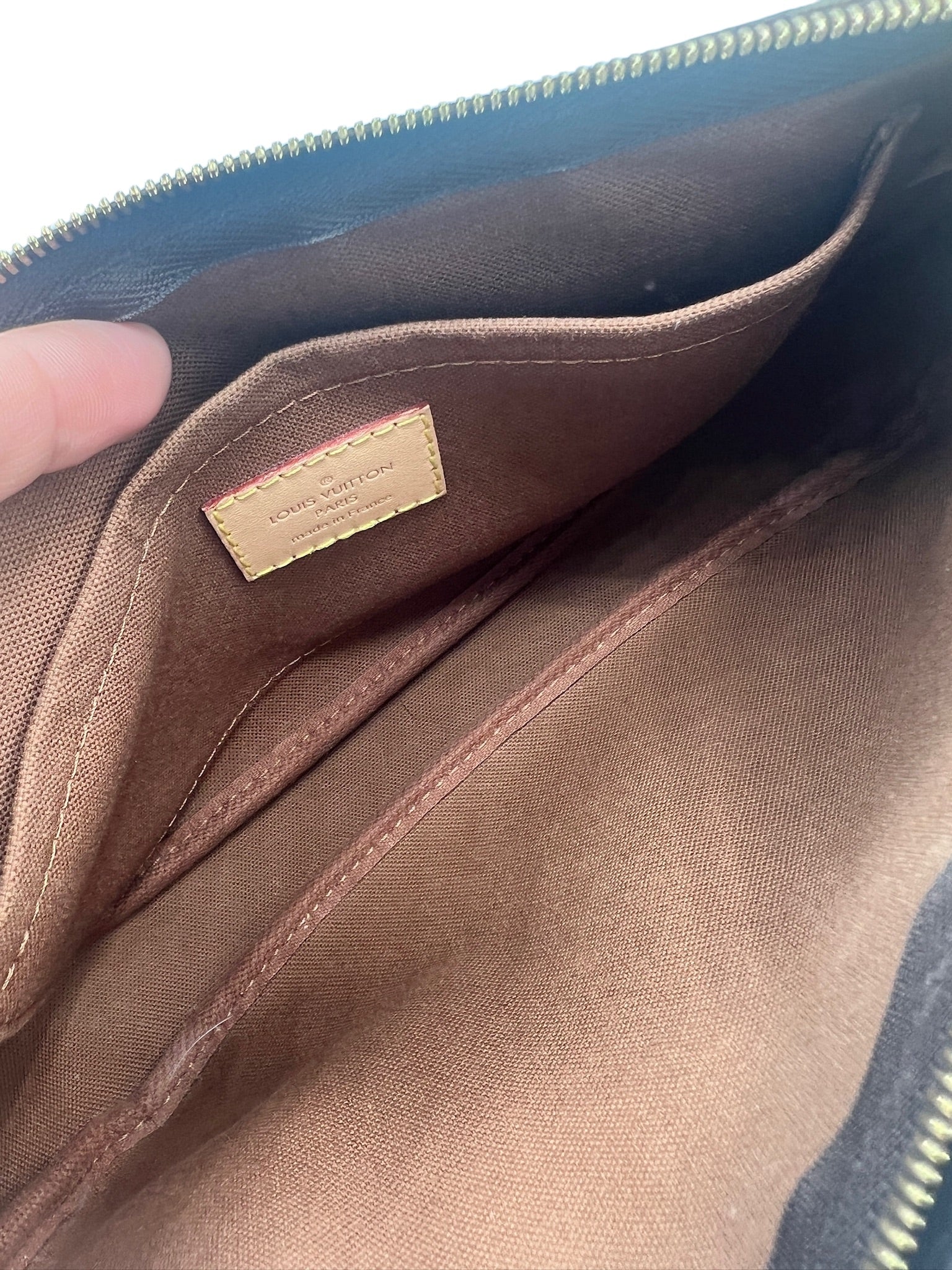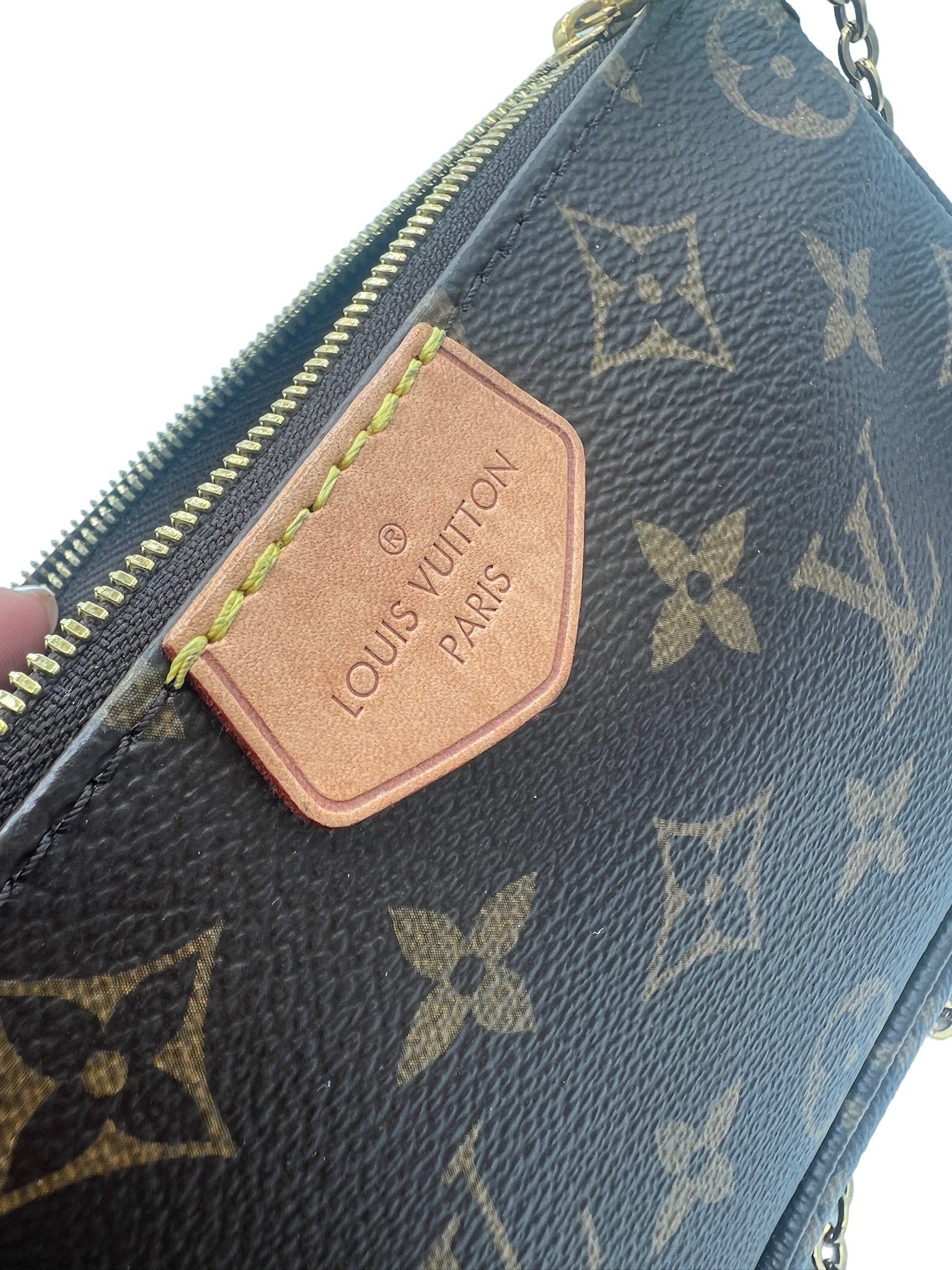 El autenticador/agencia de Entrupy ha verificado que este producto está en muy buenas condiciones. Tiene signos mínimos de uso que no afectan su funcionalidad ni apariencia. Si buscas un bolso bandolera elegante y funcional, ¡no busques más que este Louis Vuitton Green Monogram Canvas Multipochette!
