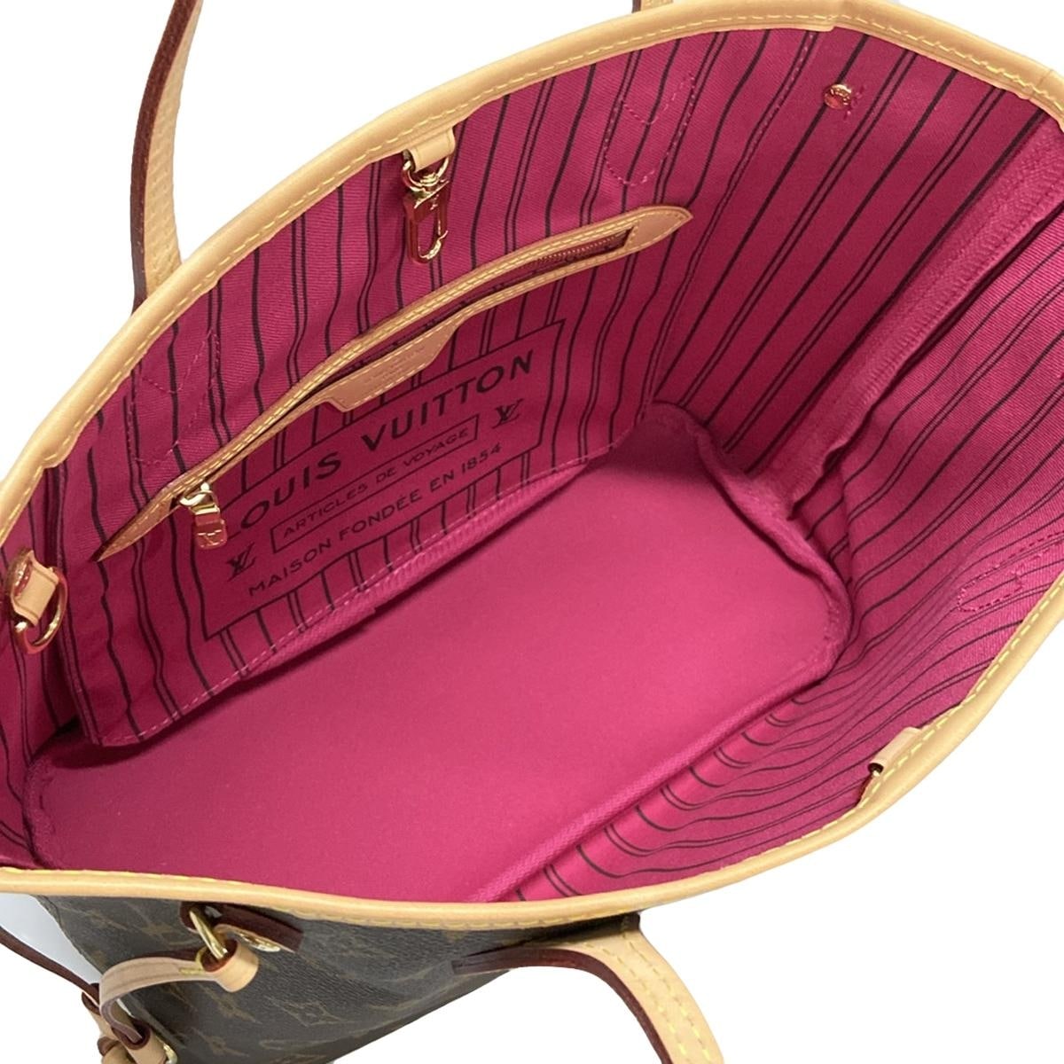Este bolso de hombro de lona con monograma Neverfull PM Pivoine de Louis Vuitton usado es un accesorio clásico y versátil, perfecto para el uso diario.
