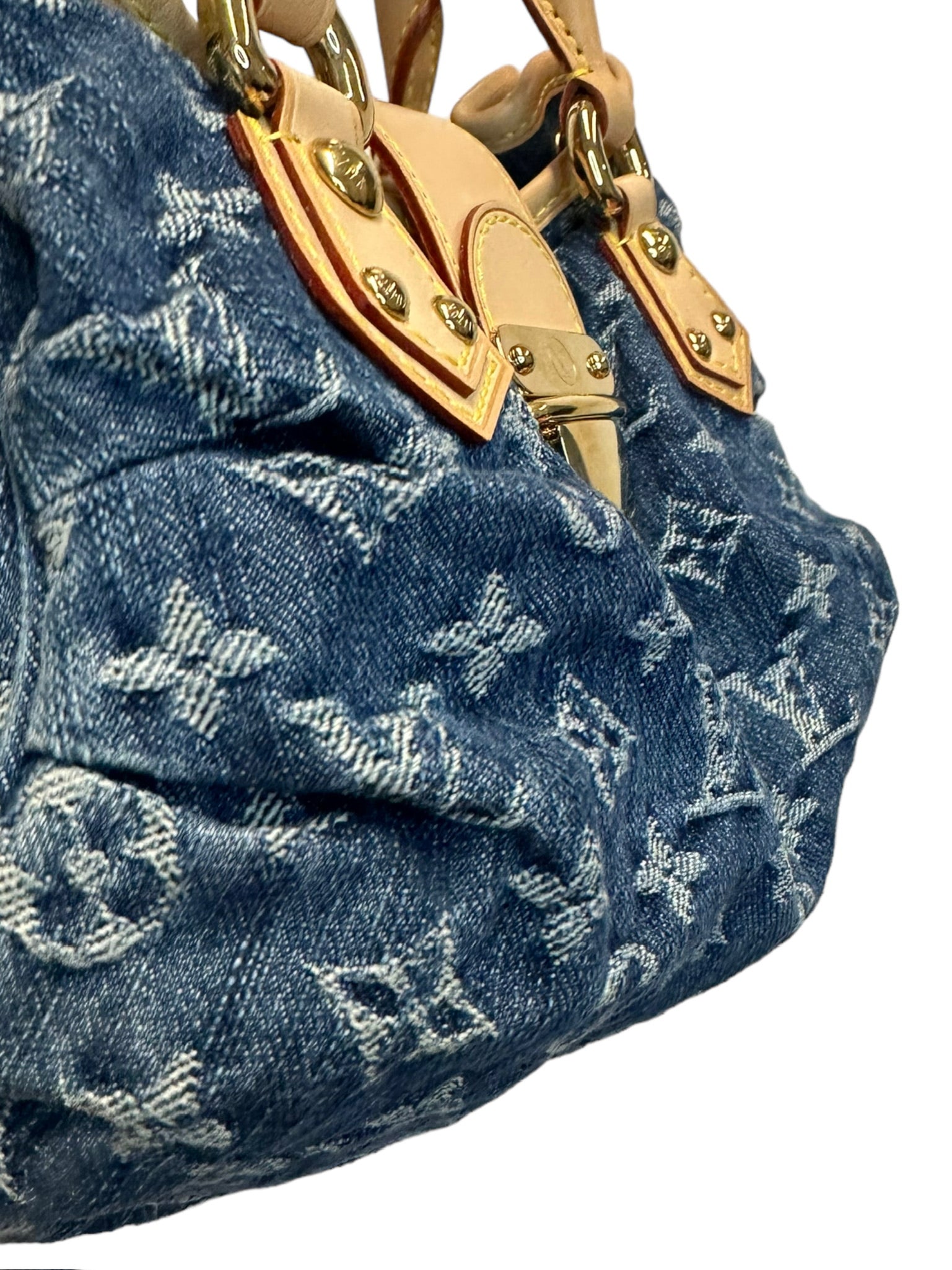 Mejora tu guardarropa con el elegante y atemporal Pleaty Monogram Denim de LOUIS VUITTON. Esta pieza de mezclilla vintage presenta lujosos detalles dorados que le agregan un toque de sofisticación a cualquier atuendo. Adopta la durabilidad y el estilo de este diseño clásico, perfecto para cualquier persona a la moda.