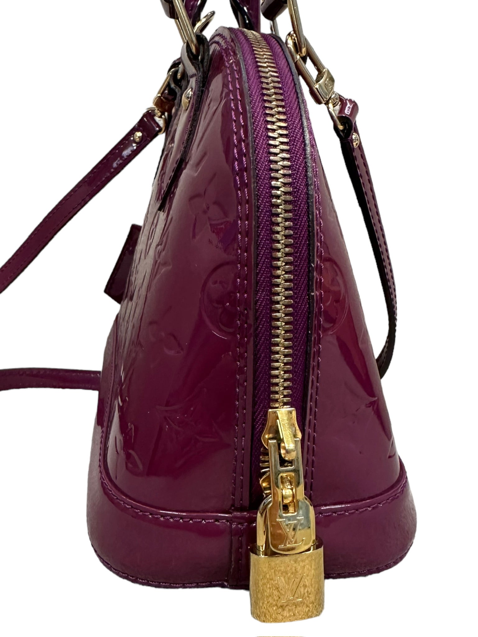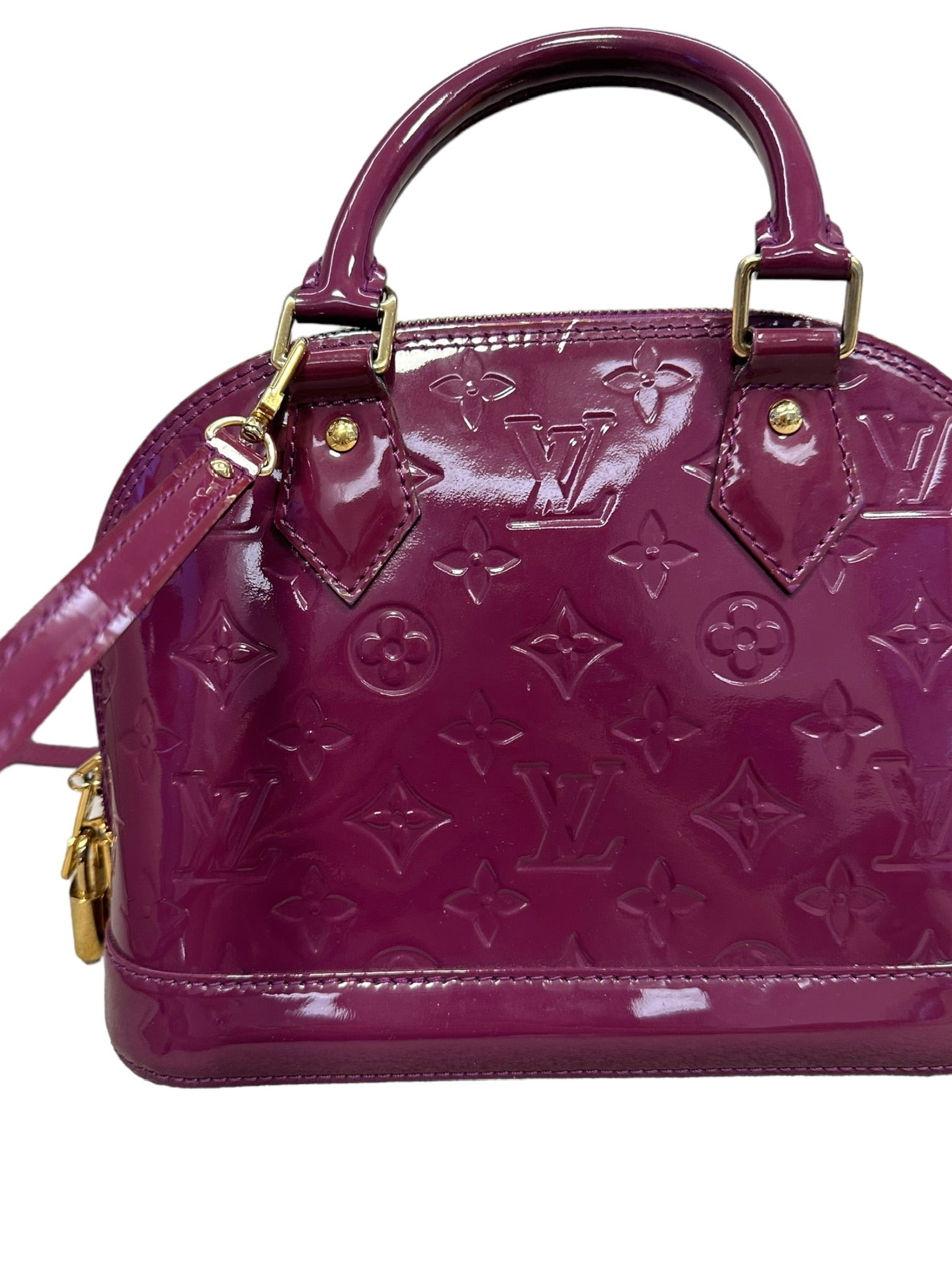 Realza tu estilo con el lujoso LOUIS VUITTON - Purple Patent Alma BB. Los detalles dorados añaden un toque de elegancia, mientras que las correas extraíbles ofrecen versatilidad para cualquier ocasión. Actualiza tu guardarropa con esta pieza atemporal.
