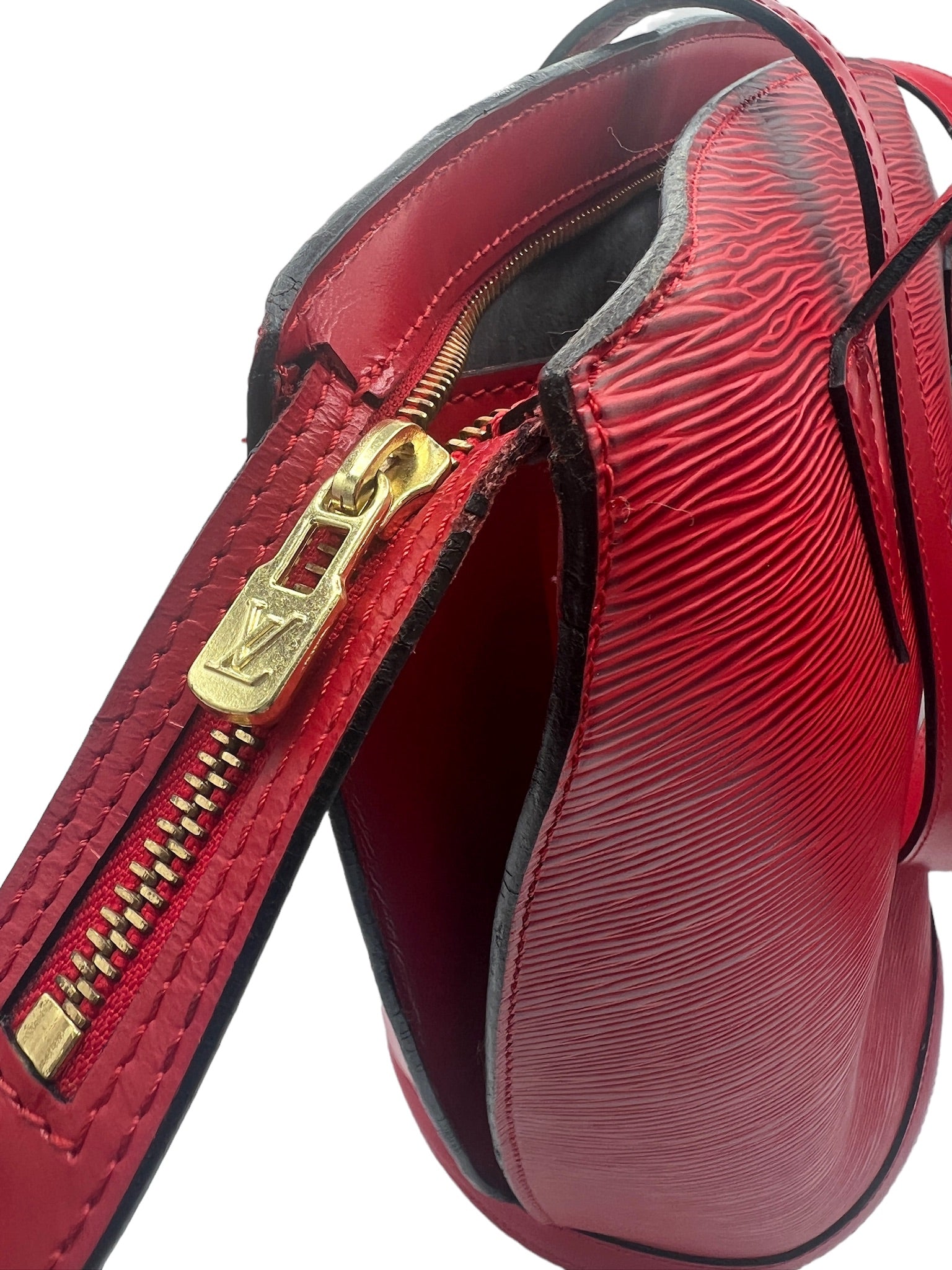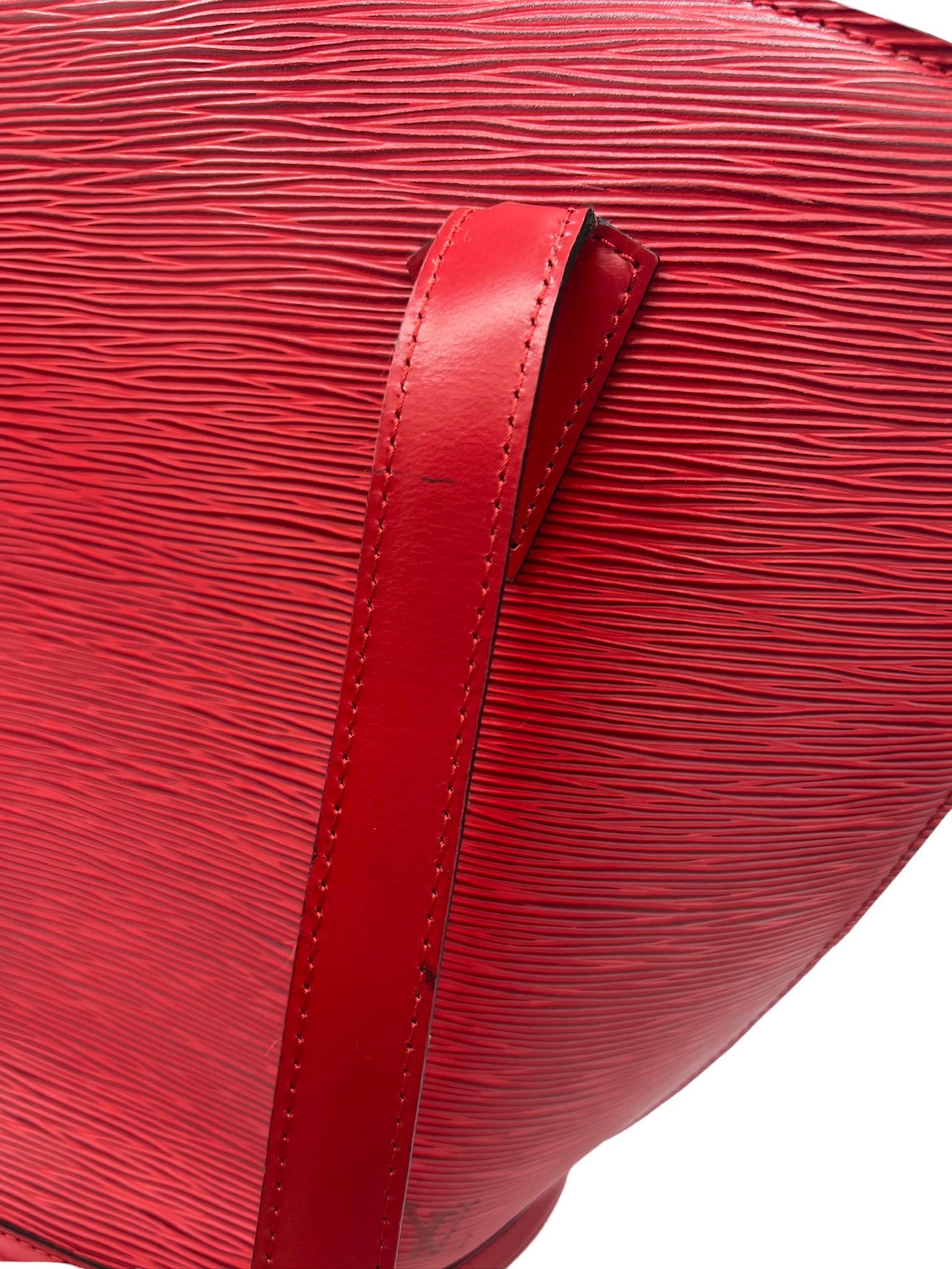 Este bolso de hombro Epi Saint Jacques rojo de Louis Vuitton usado es una elegante incorporación a su colección de bolsos.