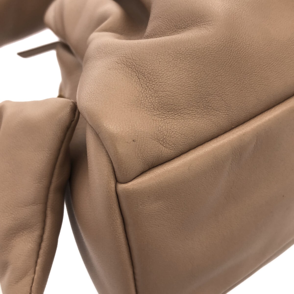 Realza tu estilo con el bolso de hombro MIU MIU en piel de napa beige rosa. Su elegante diseño incluye pequeños arañazos, ligeras marcas de suciedad y adherencia de fibra para un toque único. La parte inferior presenta un ligero roce en las esquinas y la correa evita la pérdida de forma.