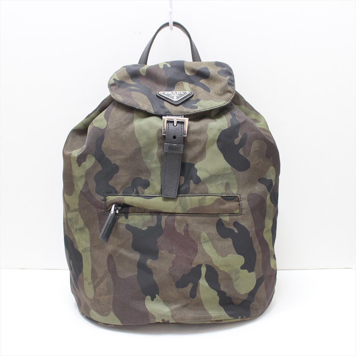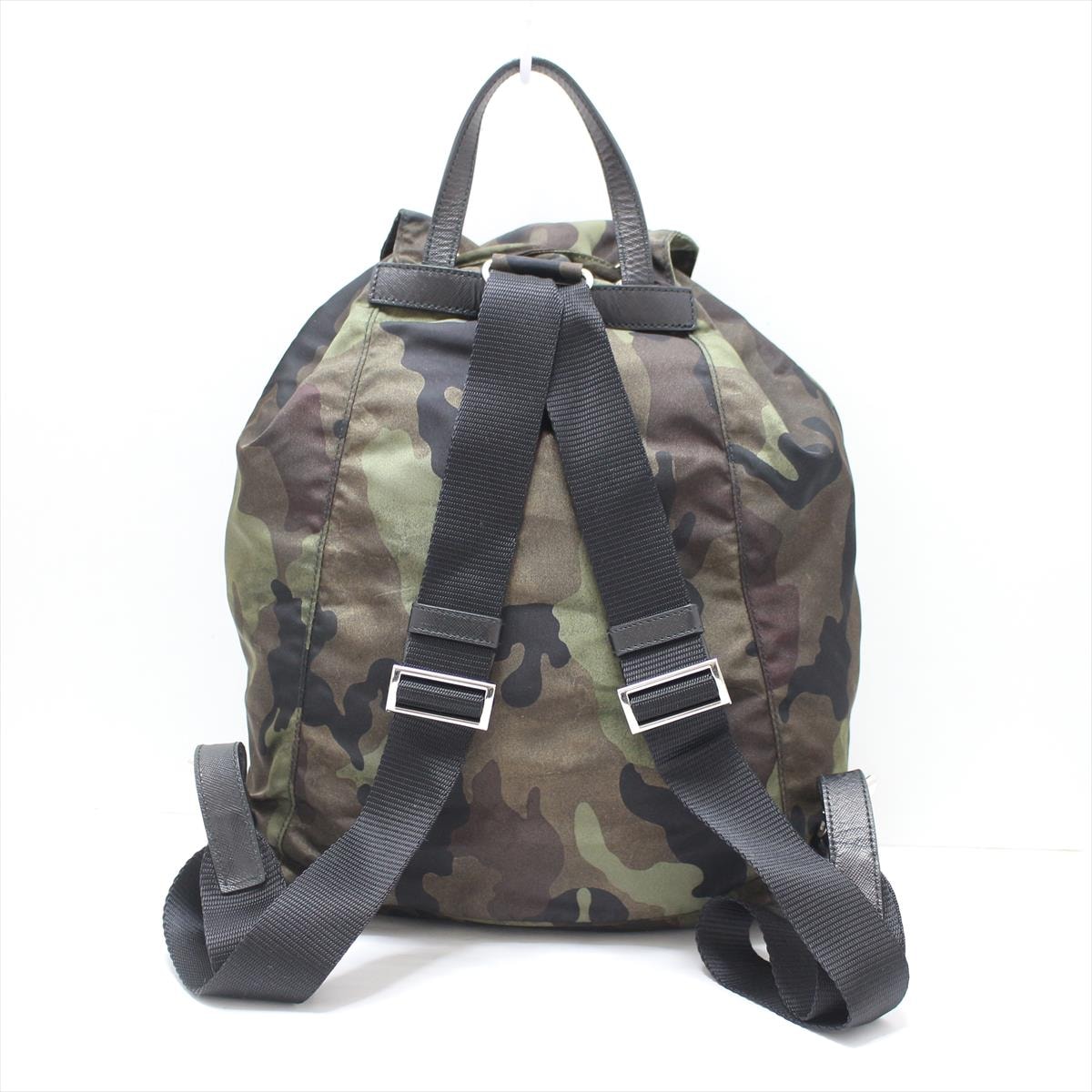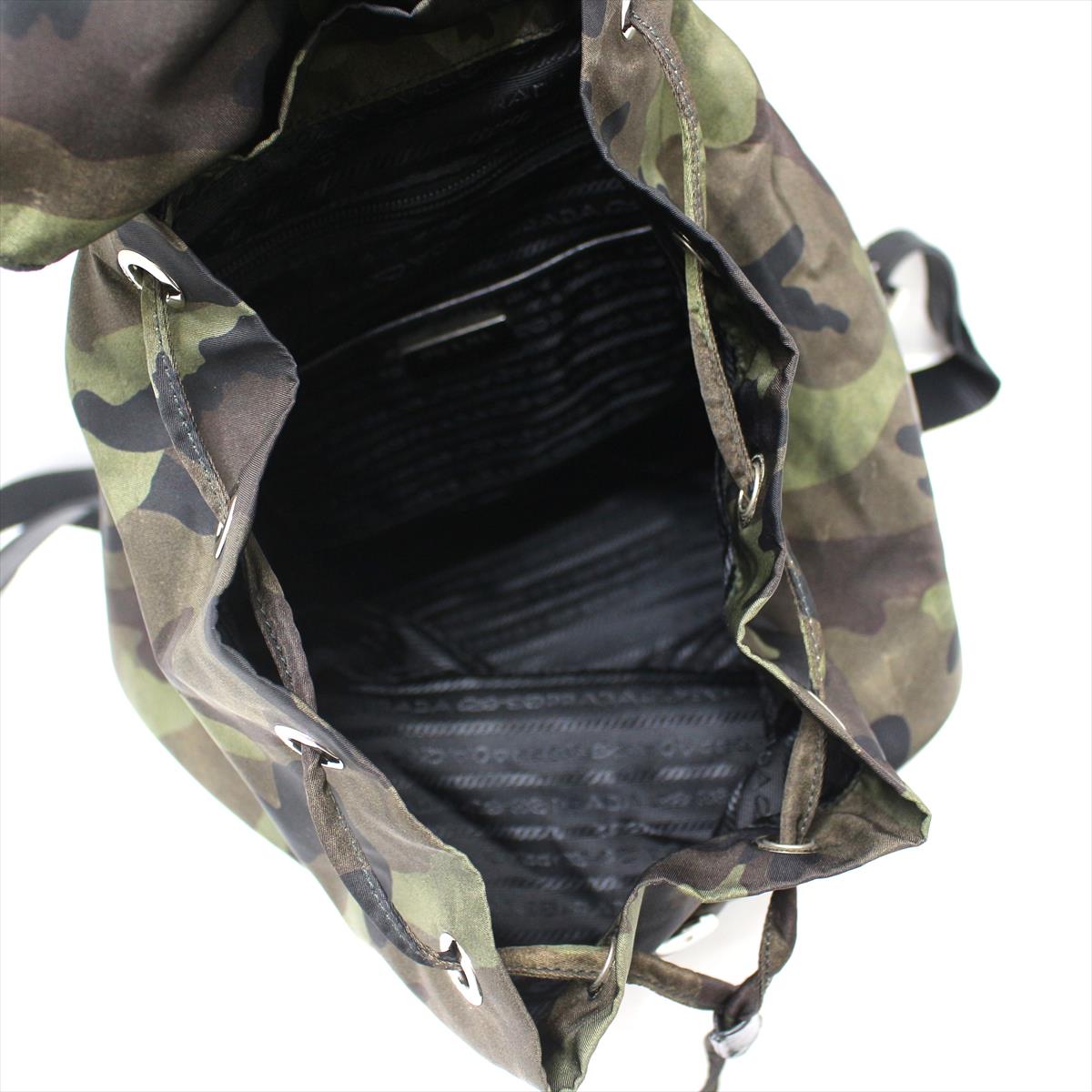 PRADA - Mochila Mimetico (Caqui) Marrón oscuro Negro Nailon Piel Saffiano