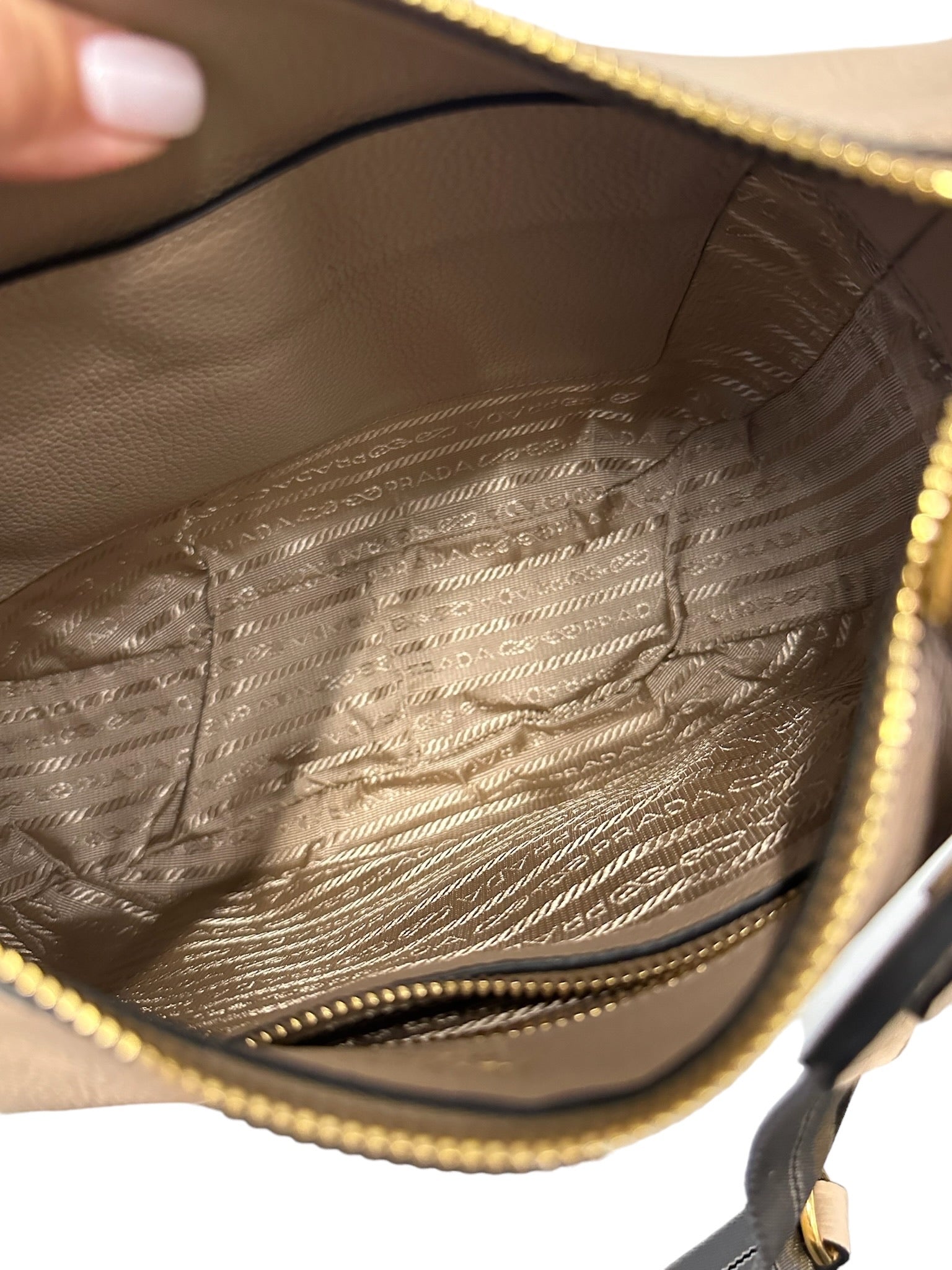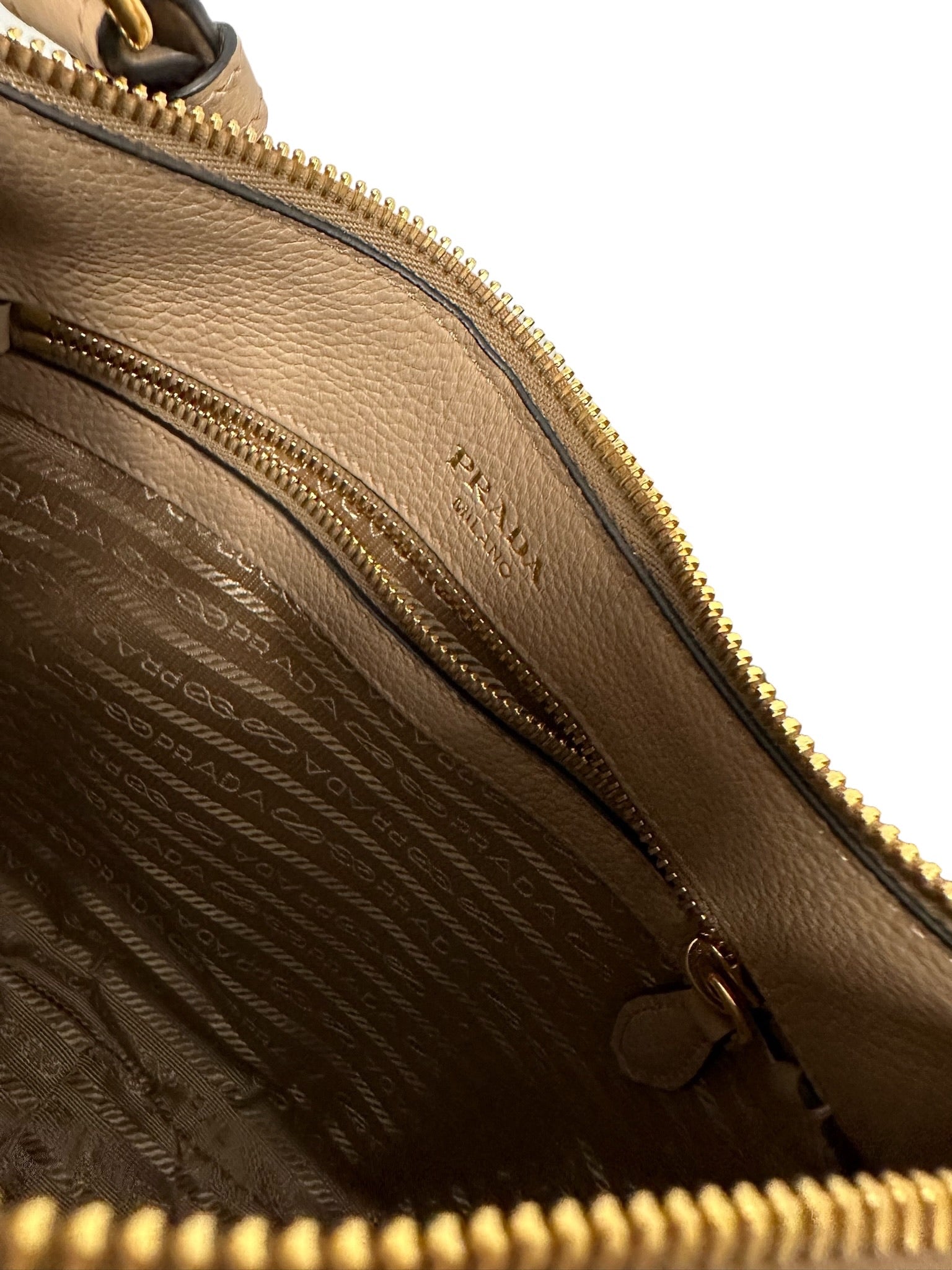 PRADA - Bolso bandolera con cremallera suave Vitello Danio beige