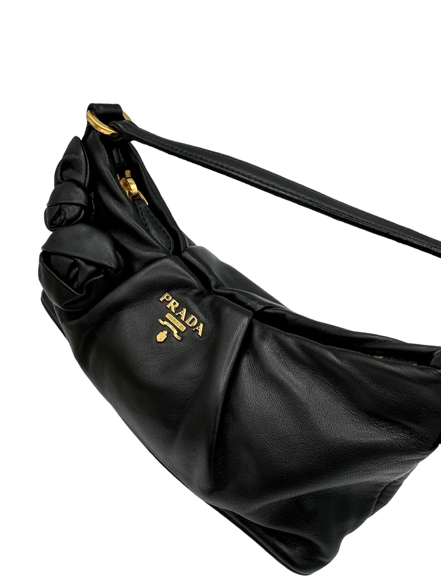 PRADA - Bolso de hombro con rosas en piel negra Glace