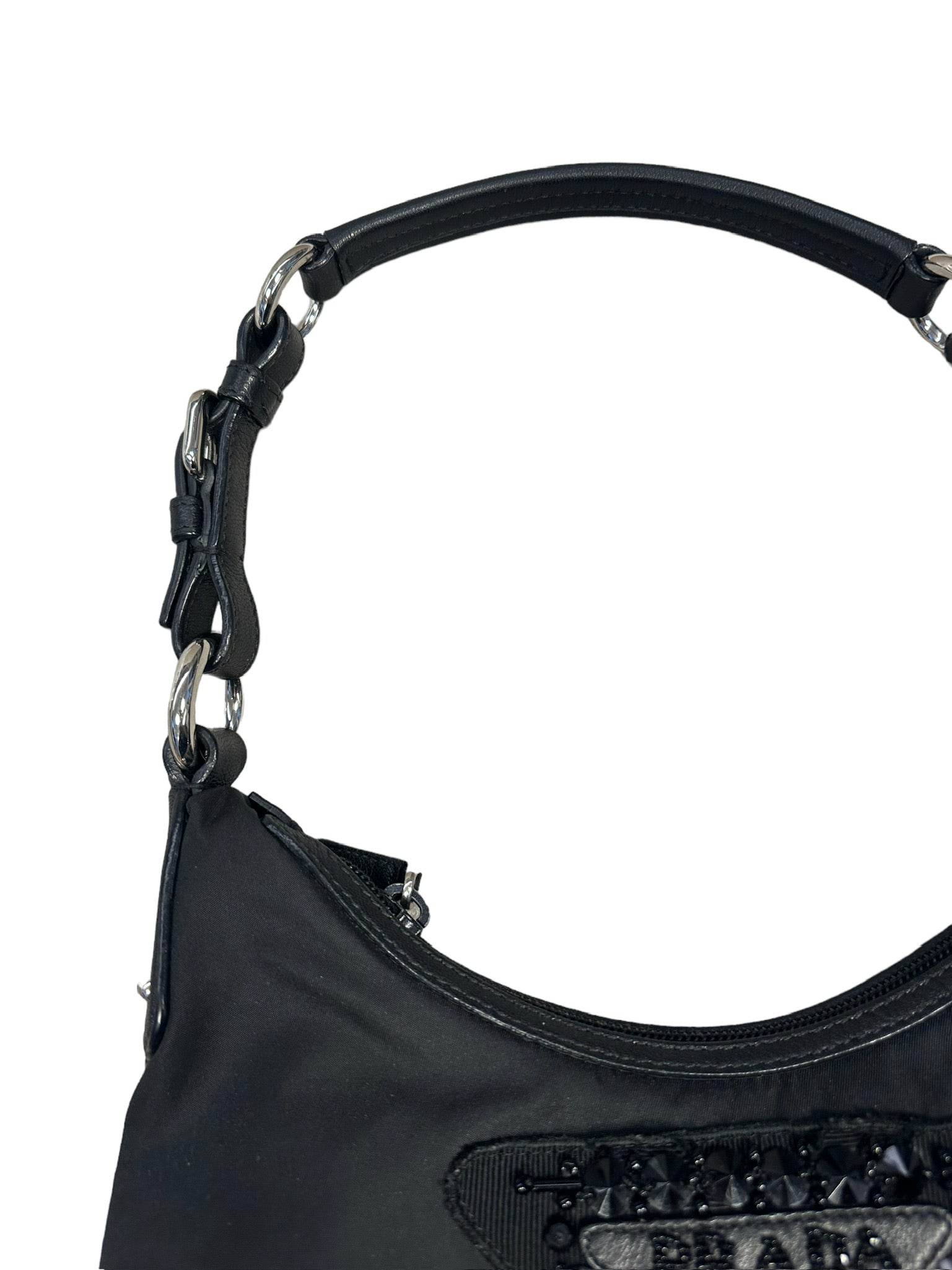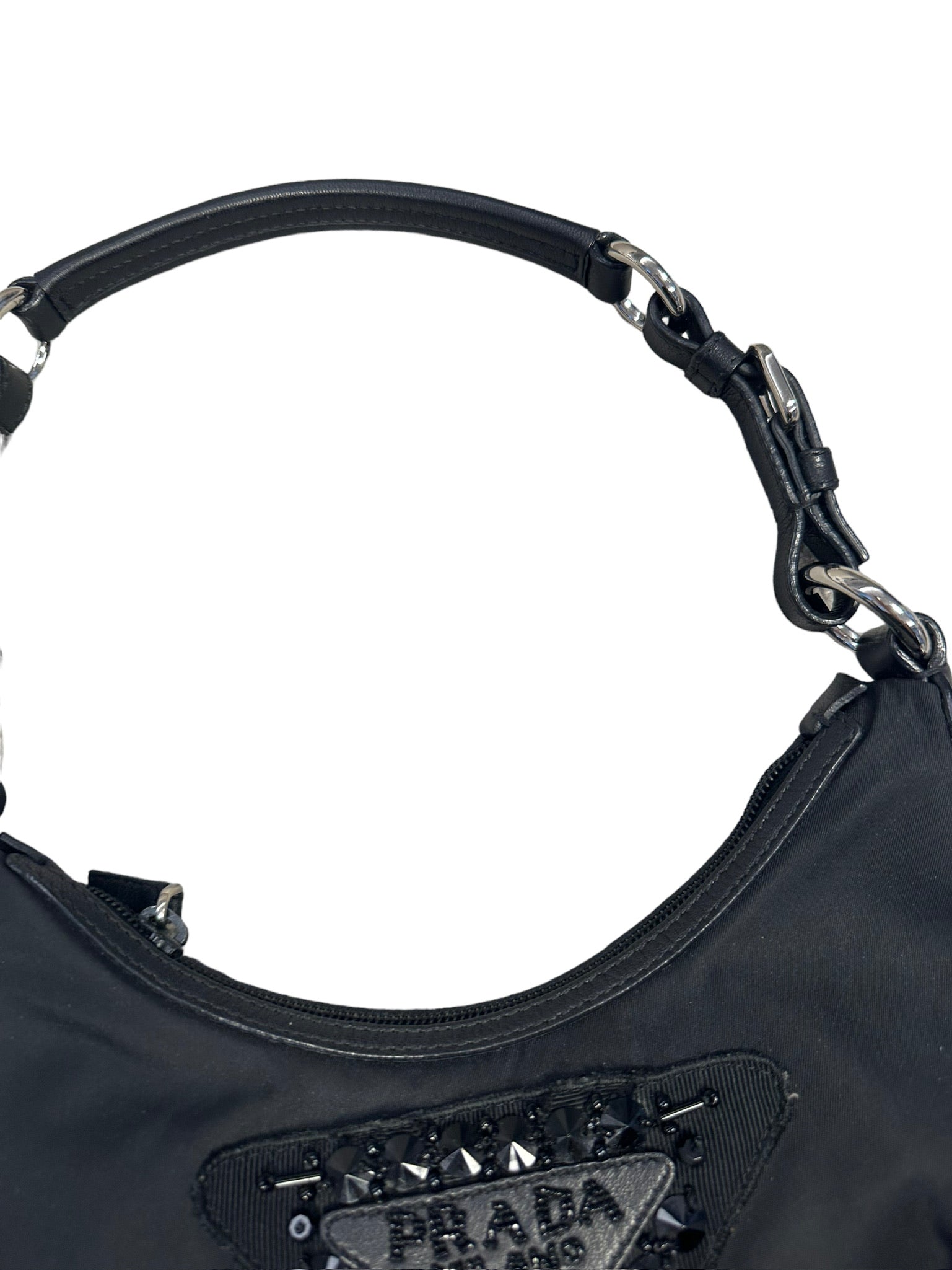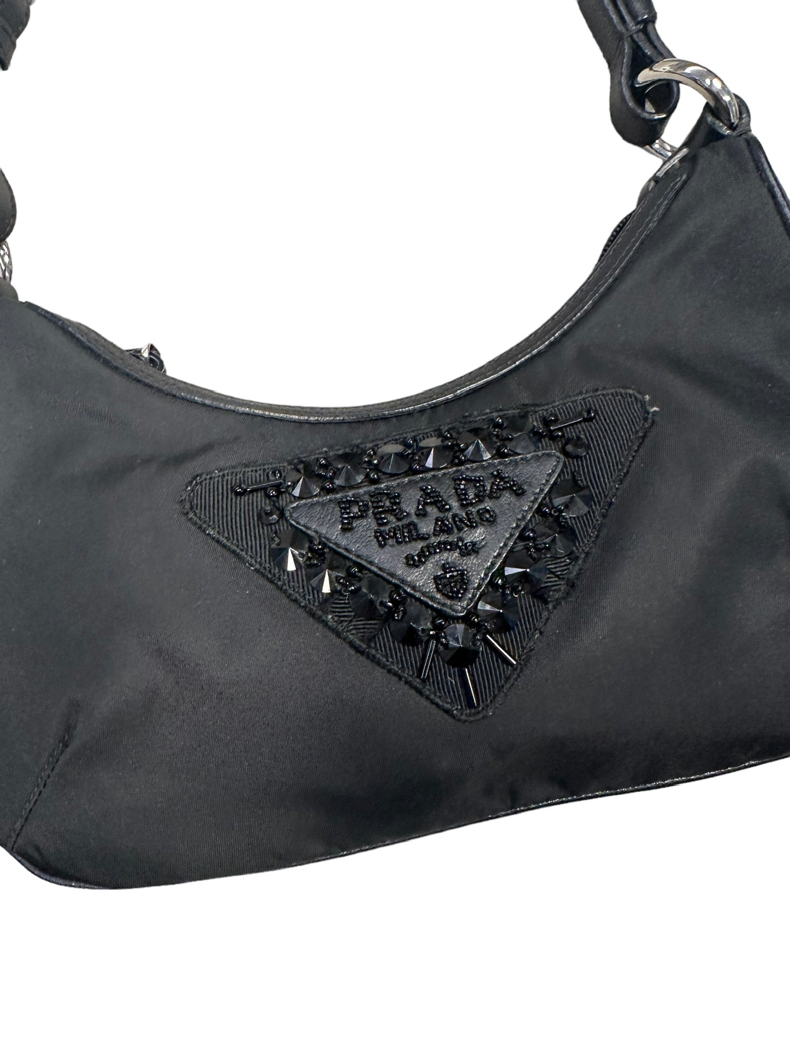 PRADA - Pochette de nailon con logotipo y cuentas en color negro