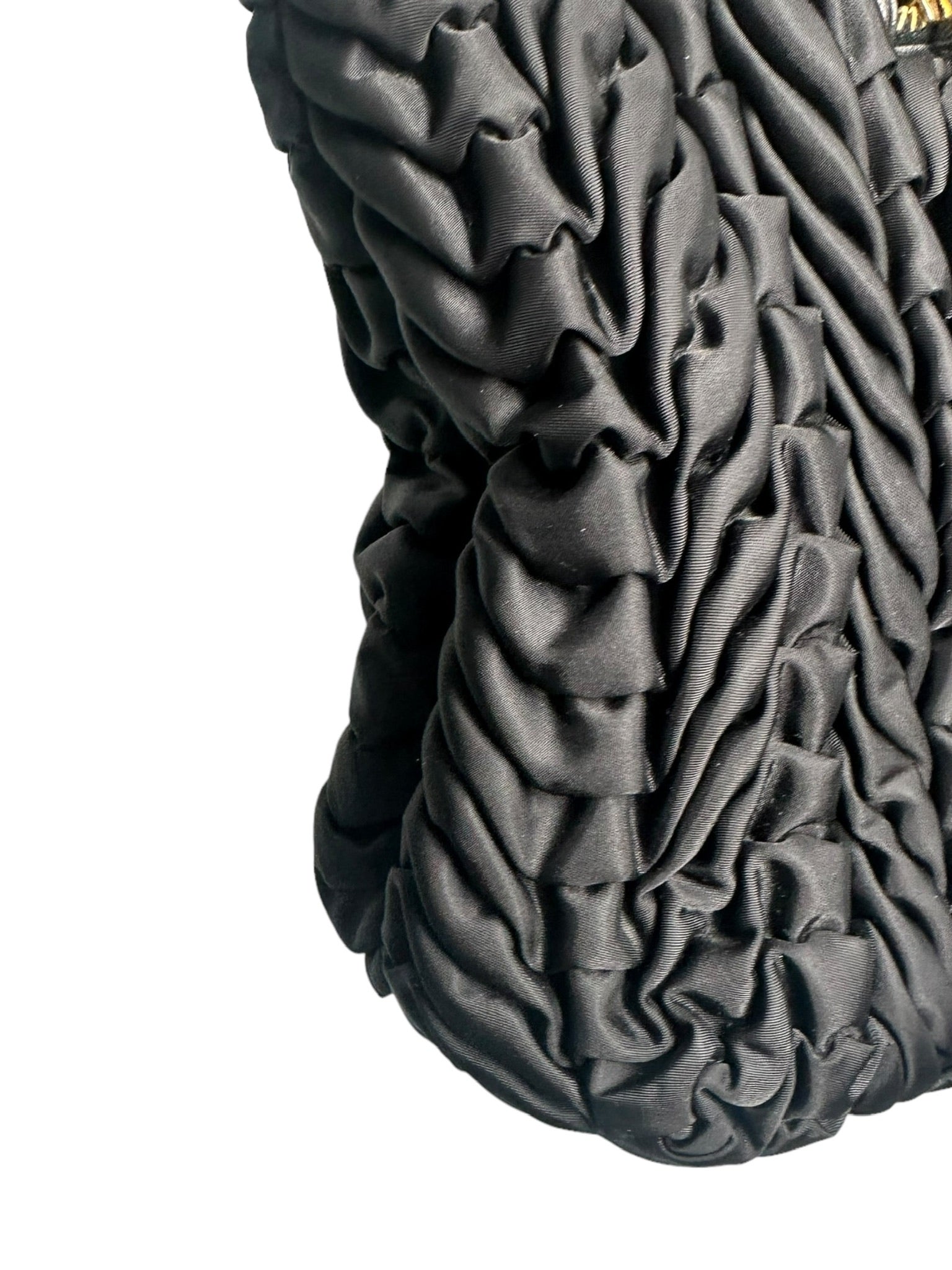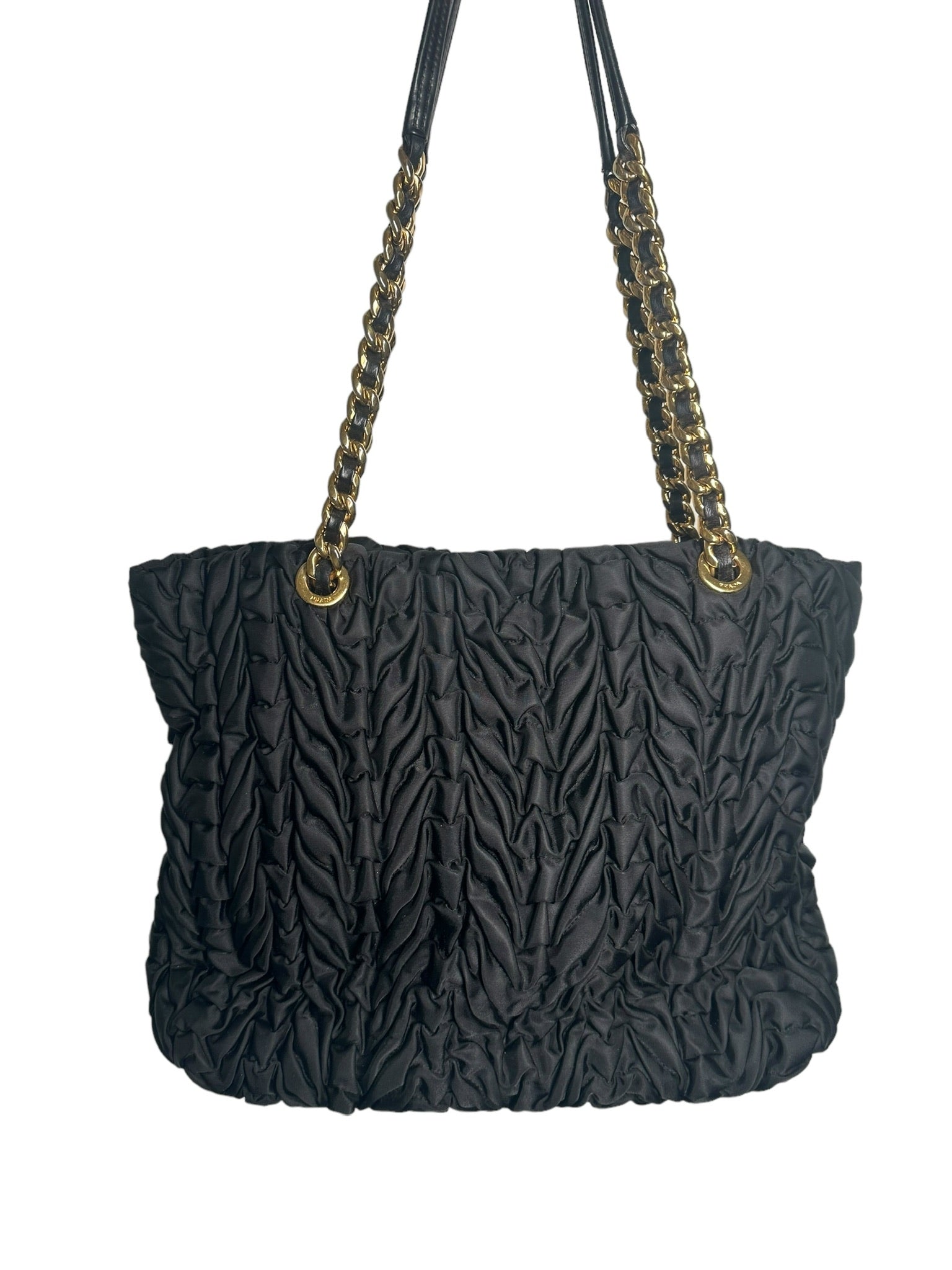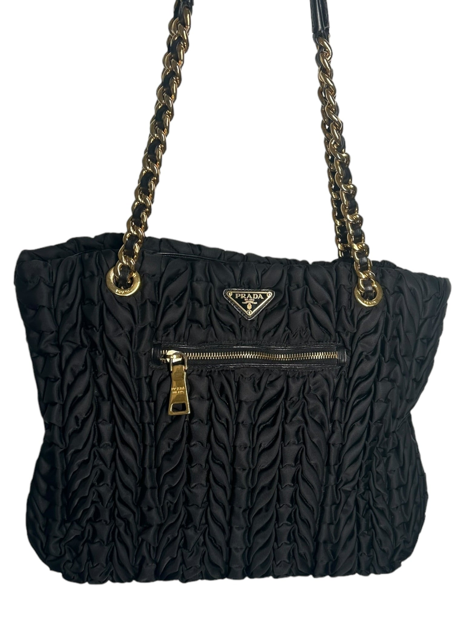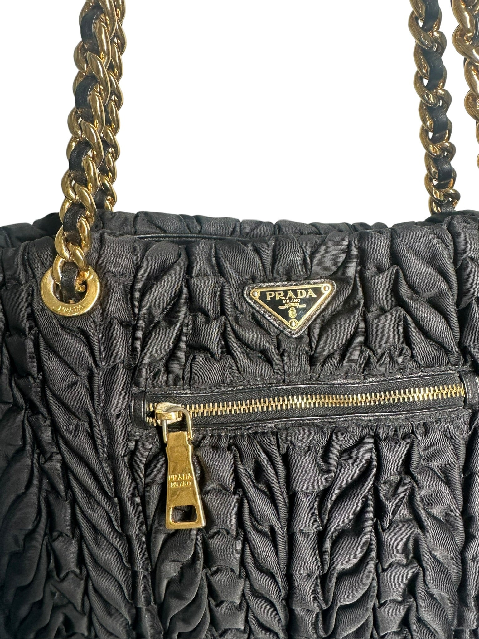 PRADA - Bolso de mano con cadena fruncida de nailon negro