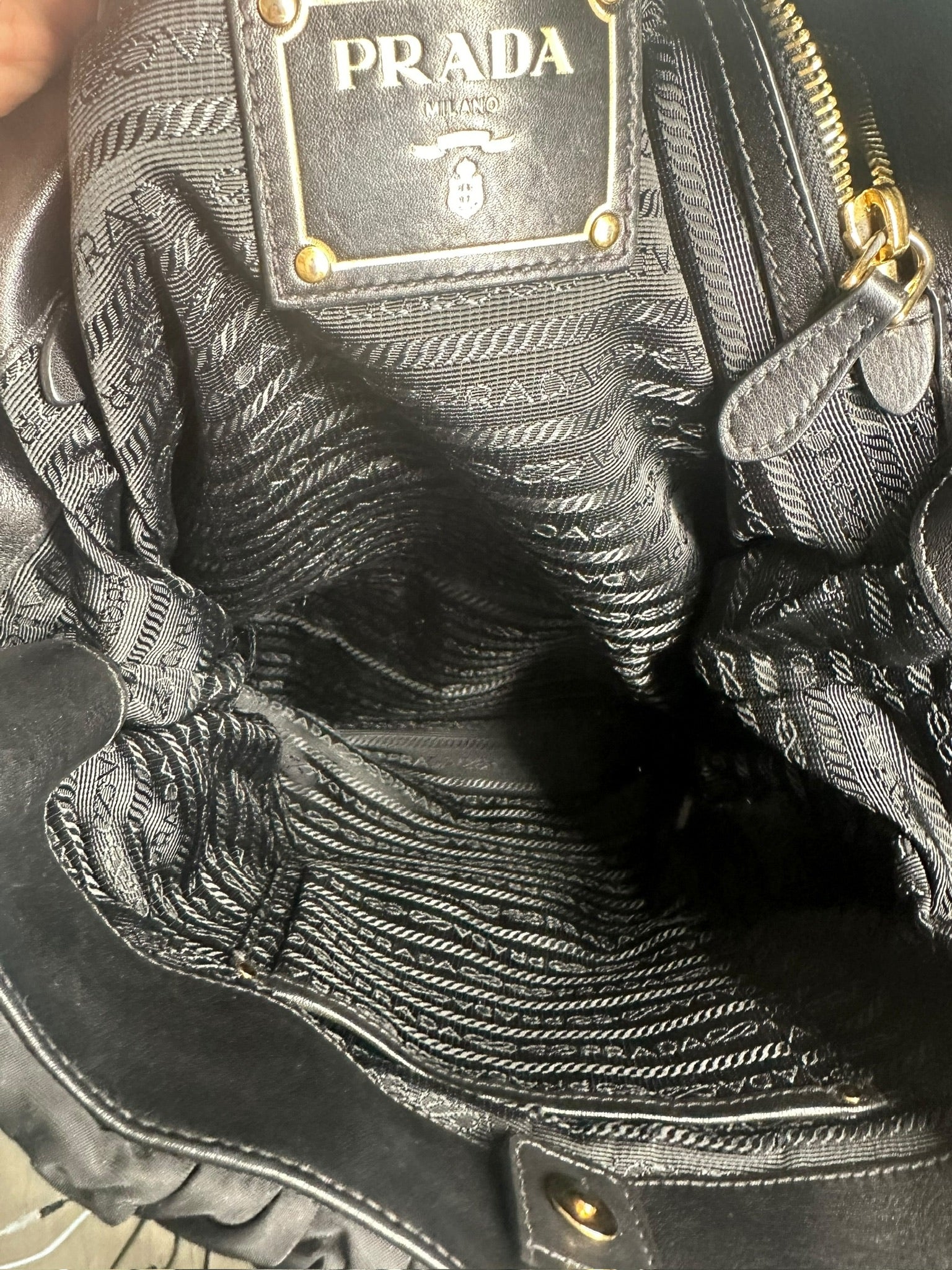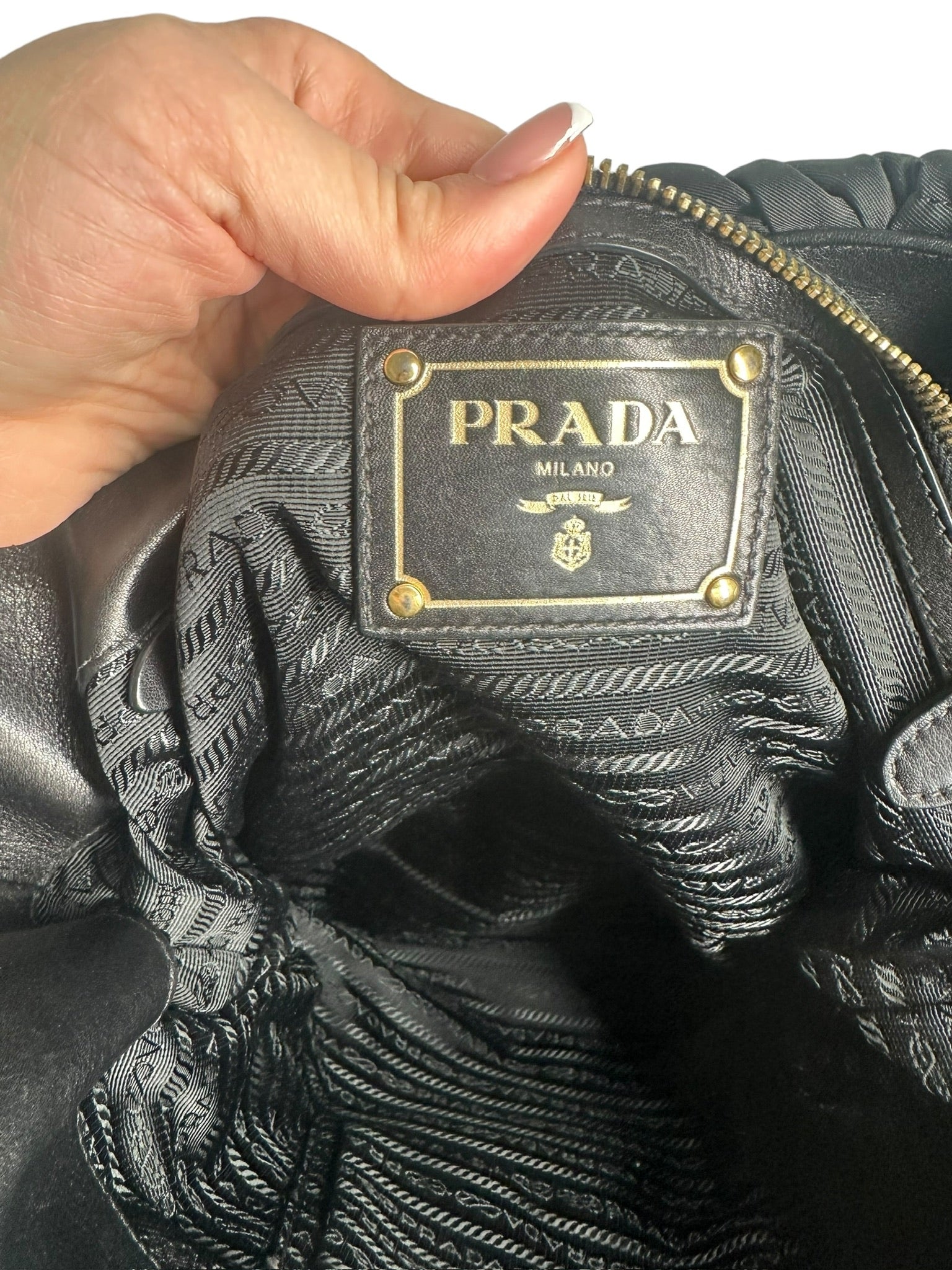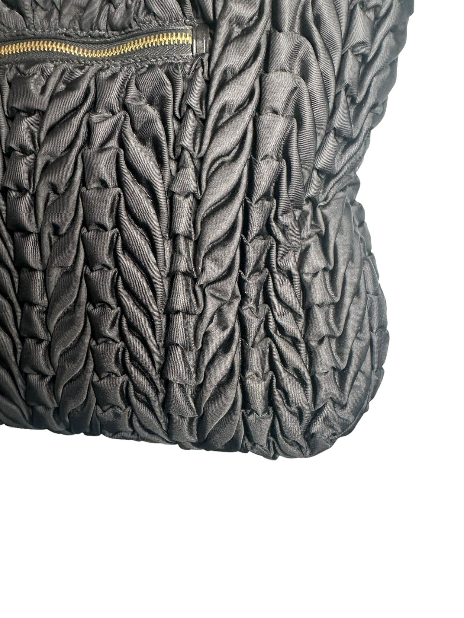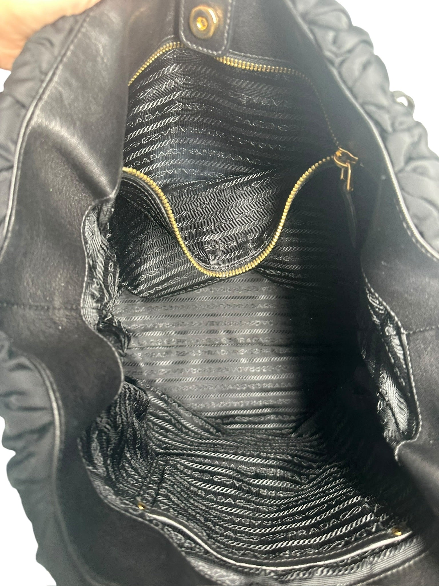 PRADA - Bolso de mano con cadena fruncida de nailon negro