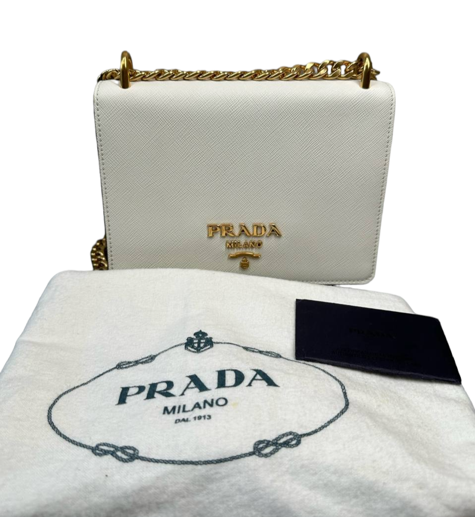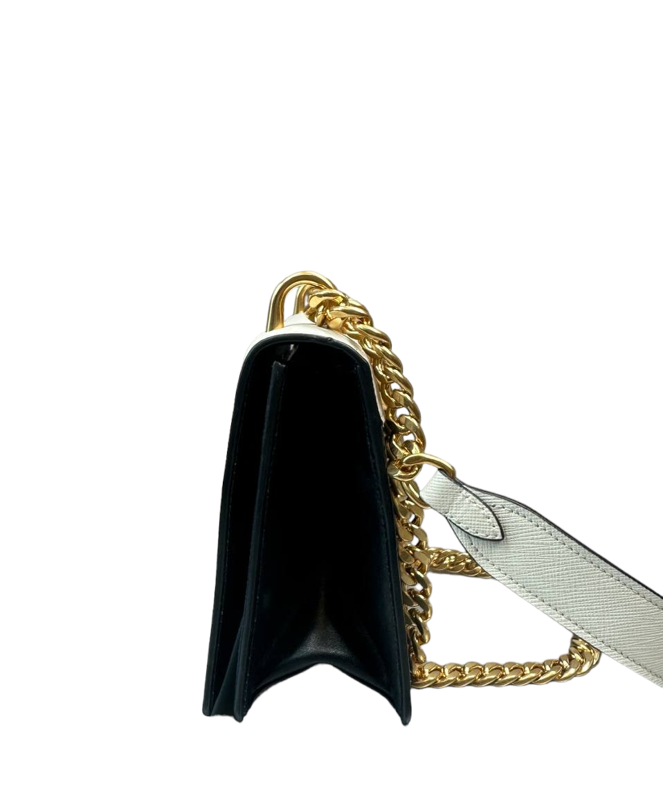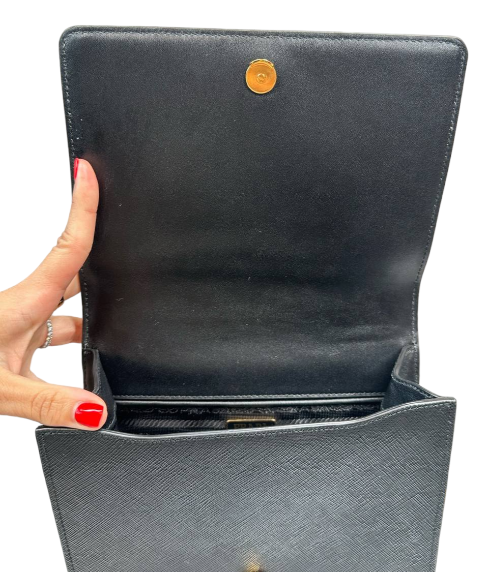 PRADA - Bolso con solapa y cadena de piel saffiano