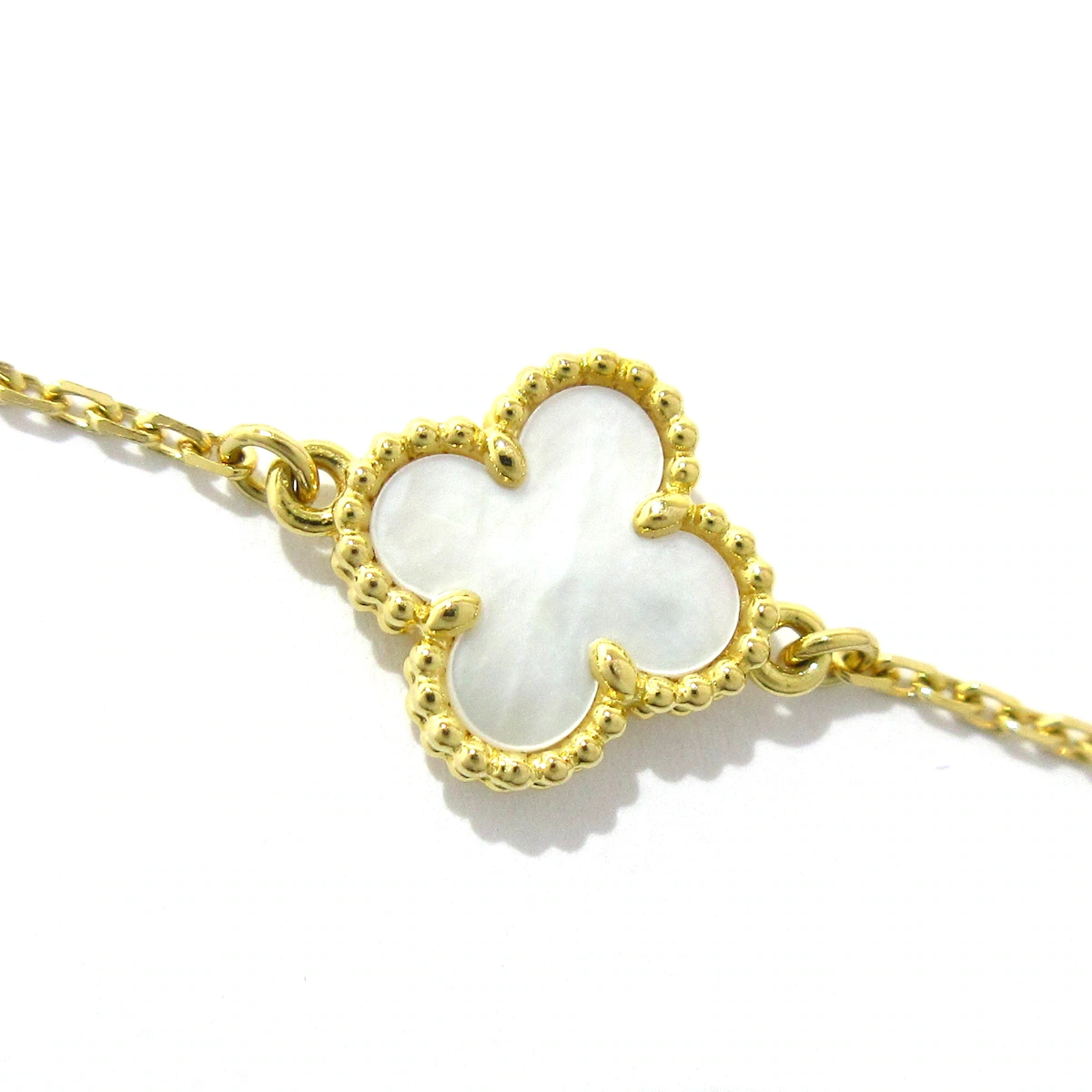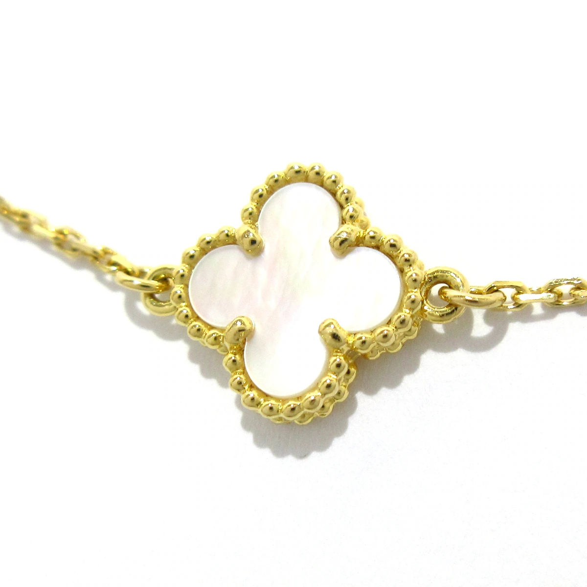 Disfrute del lujo con esta pulsera Sweet Alhambra de madreperla en oro amarillo de 18 quilates de VanCleef & Arpels usada en perfecto estado. Esta pulsera, que mide entre 16 y 17 cm de circunferencia de muñeca, está adornada con un delicado diseño de madreperla y pesa solo 1,8 g. Viene con caja y estuche para su custodia. Realce su estilo con esta elegante pieza.