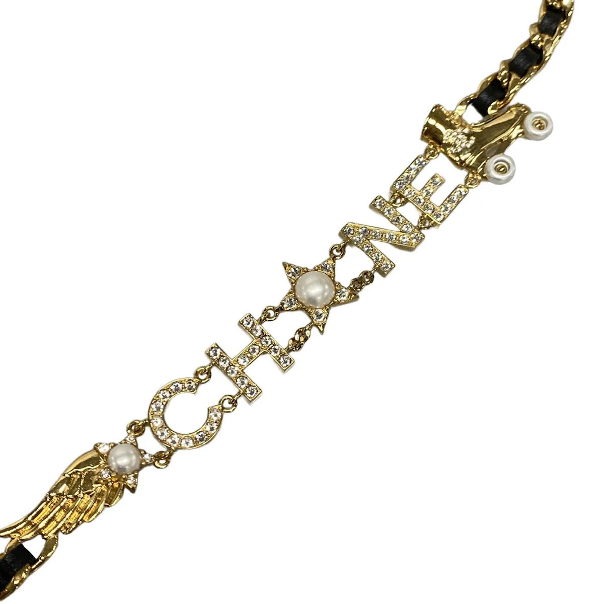 Elevate your accessory game with this stunning pre-owned belt that seamlessly blends luxury and edge. Crafted from quality leather, this piece features an eye-catching combination of gold hardware, rhinestones, and faux pearl embellishments that catch the light beautifully.