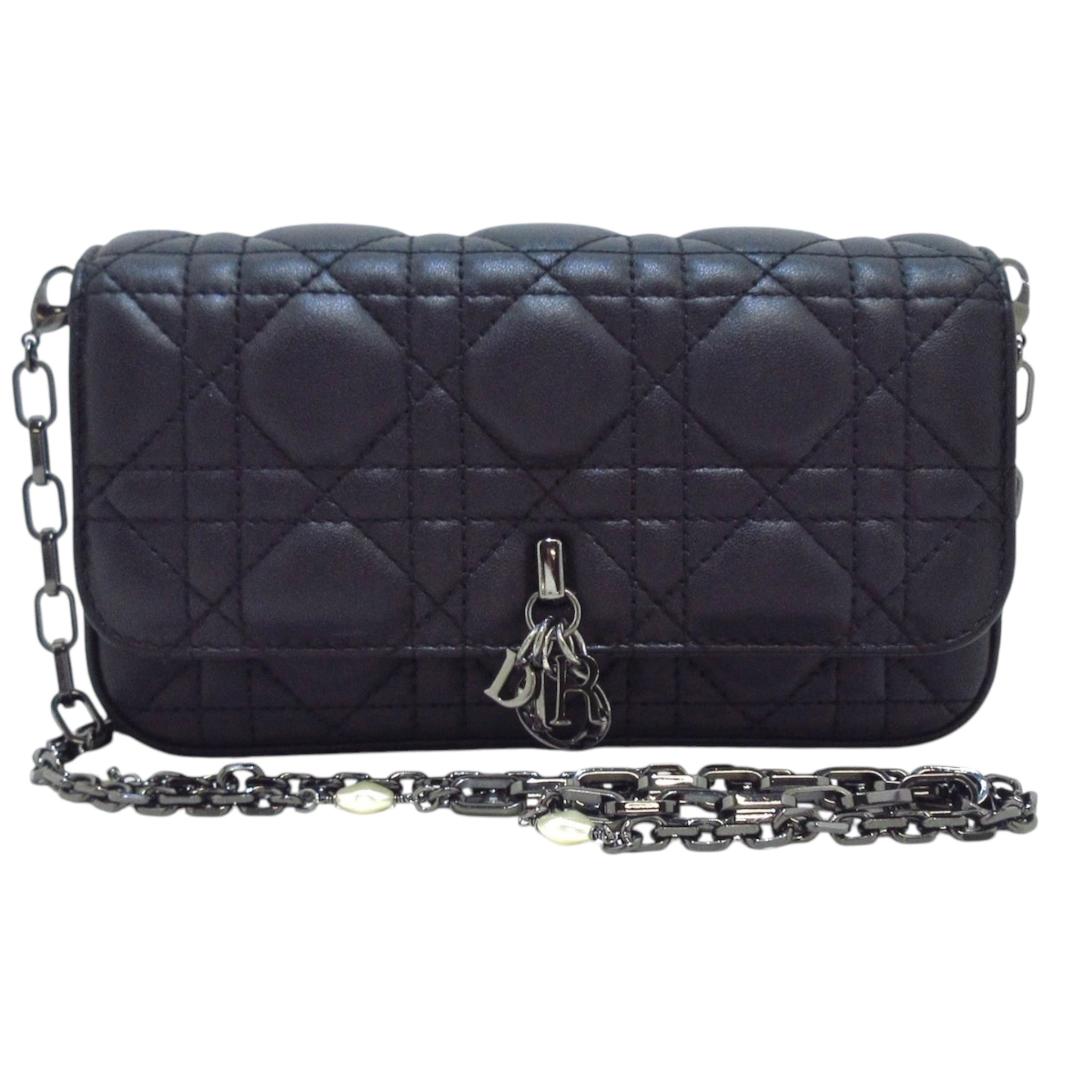 Bolso bandolera My Dior Talk para teléfono de piel de cordero negra USADO