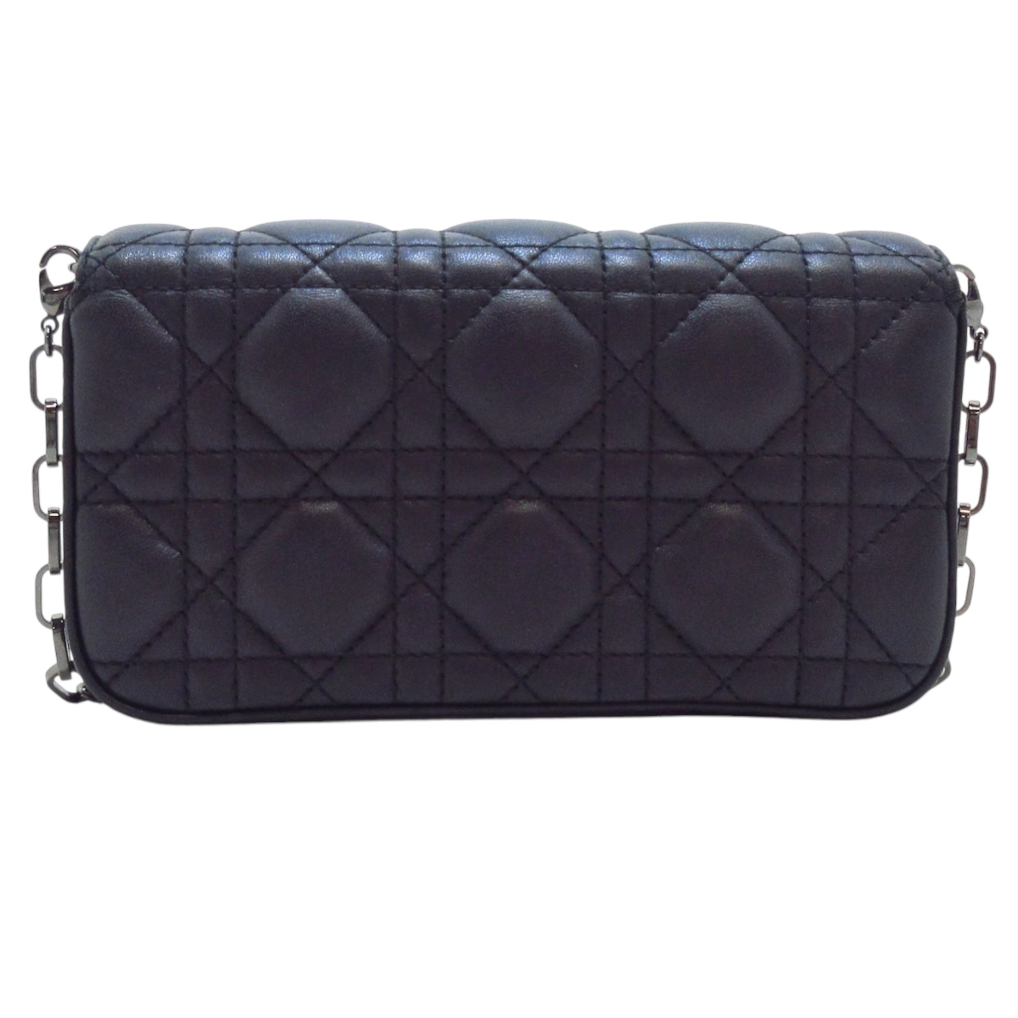 Mejora tu juego de accesorios con el estuche para teléfono My Dior Talk de piel de cordero negra de Dior, donde el lujo se combina con la practicidad.