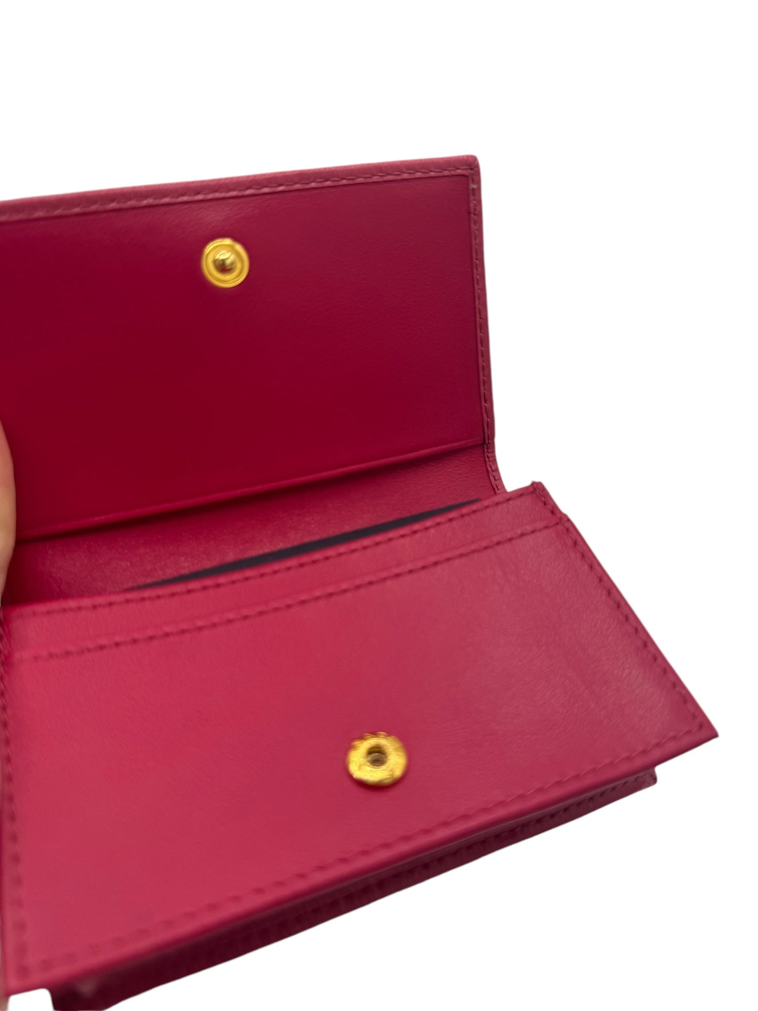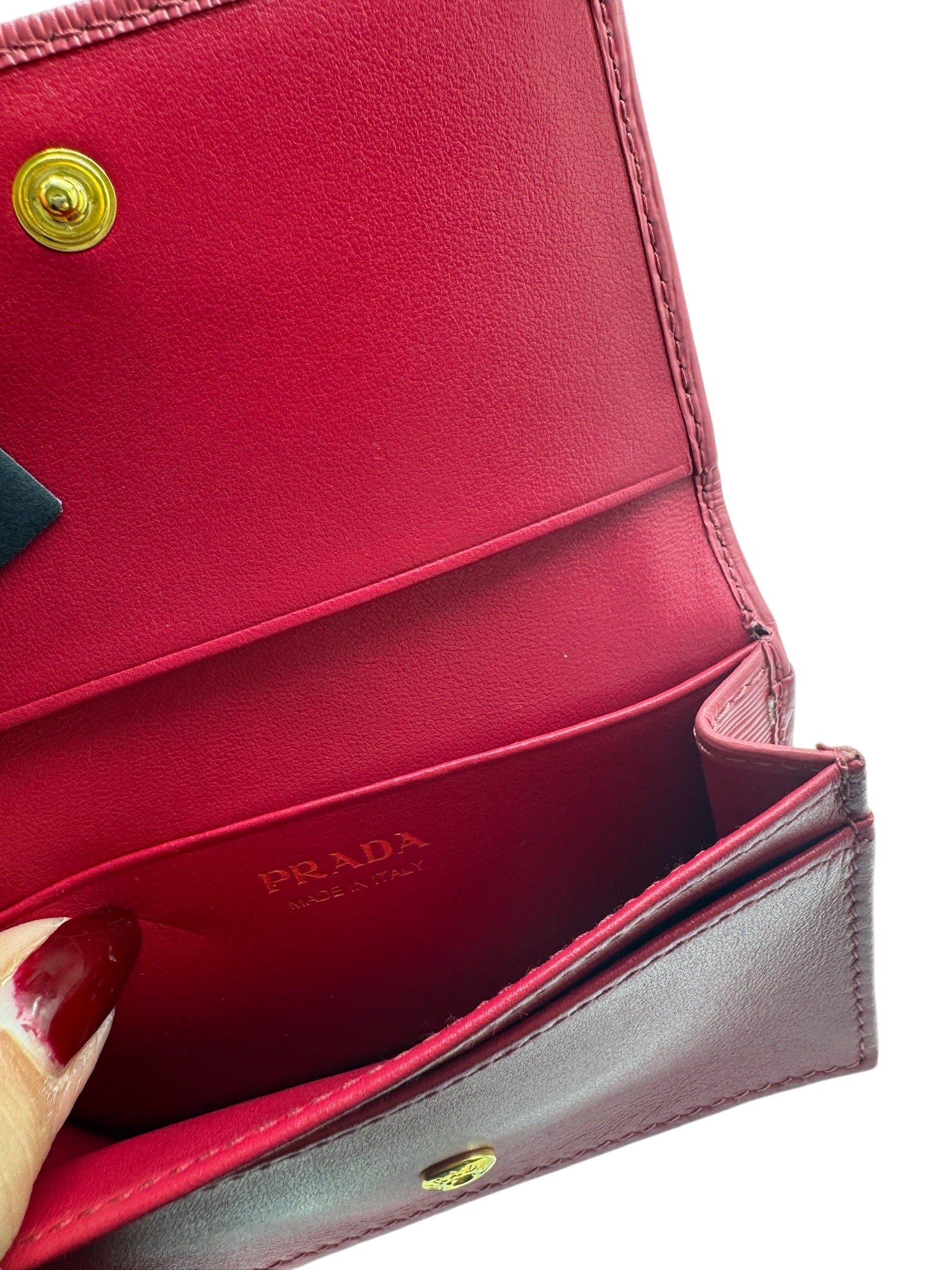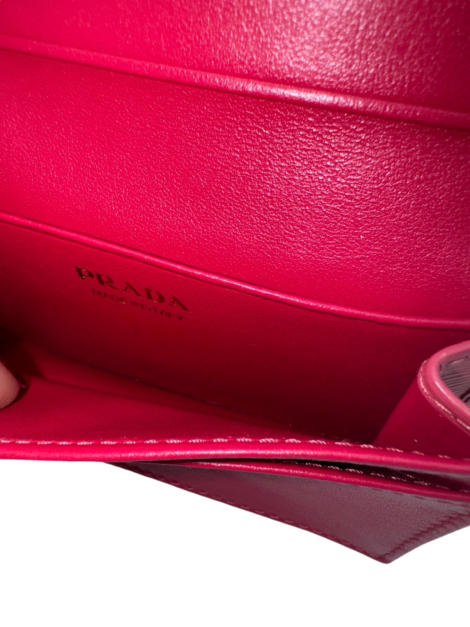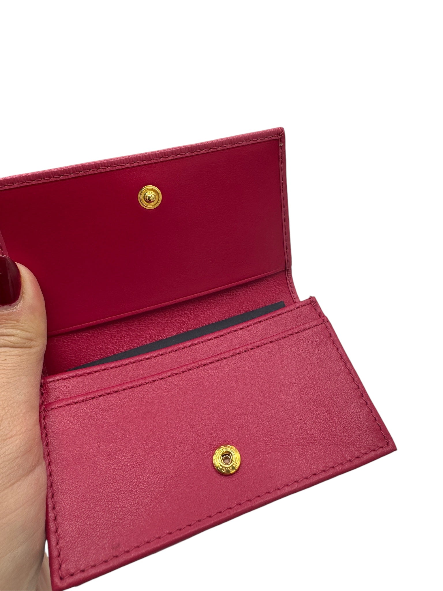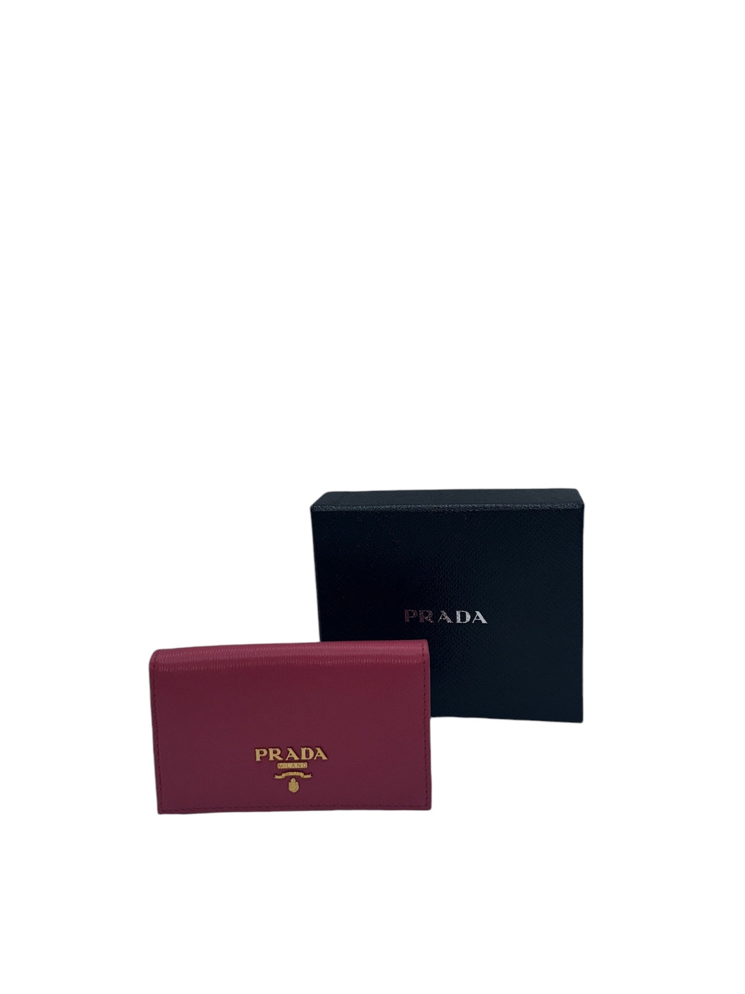 Mejore su imagen profesional con nuestro tarjetero Prada de cuero rosa de segunda mano. Con un exterior elegante y pulido con un desgaste sutil, este tarjetero es perfecto para eventos de networking. El interior está diseñado para mantener sus tarjetas en perfectas condiciones. Mejore su estilo con este accesorio elegante y sin esfuerzo.