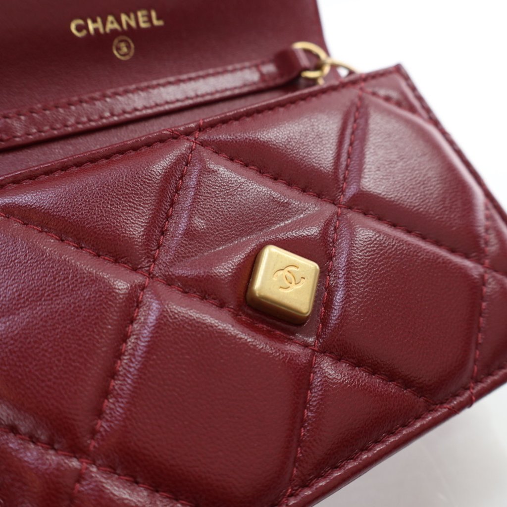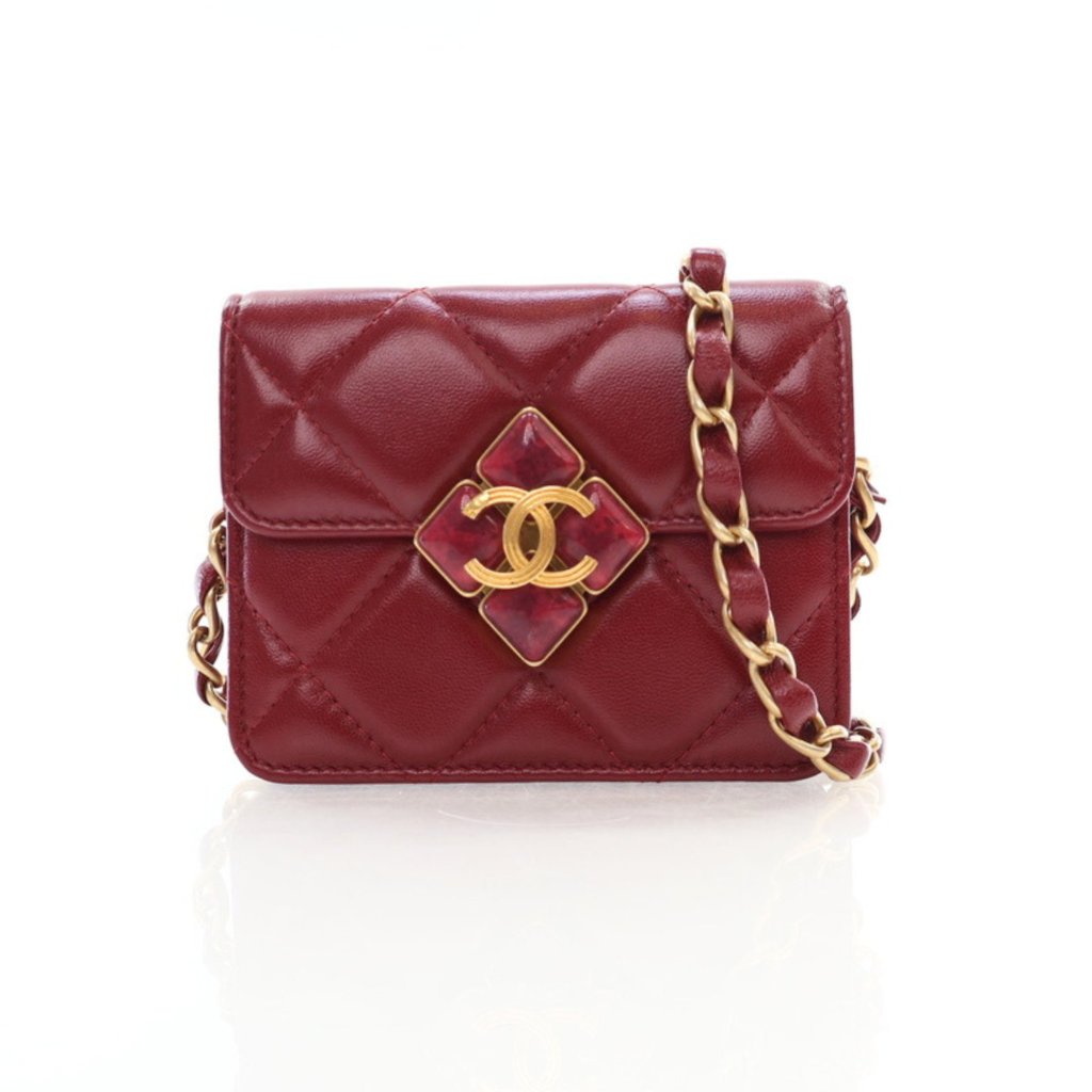 Bolso bandolera CC Diamond Lock pequeño de piel de cordero burdeos de segunda mano