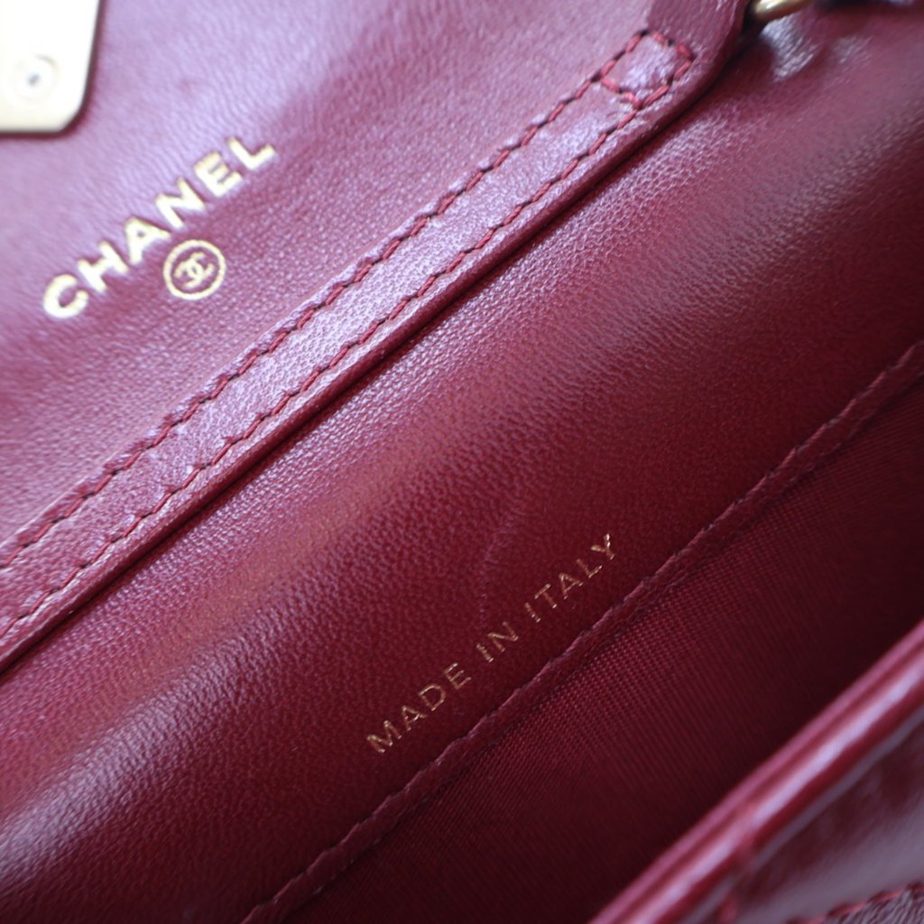 Descubre la elegancia del bolso Diamond Lock de CHANEL, una fusión perfecta de estilo y funcionalidad. Este pequeño bolso bandolera de piel de cordero color burdeos está diseñado para realzar tu look diario.