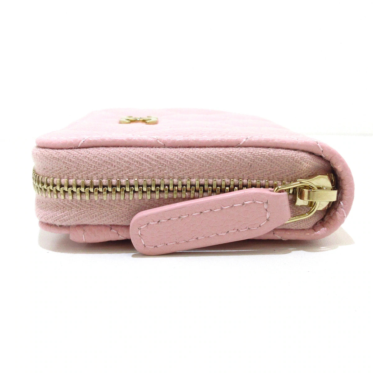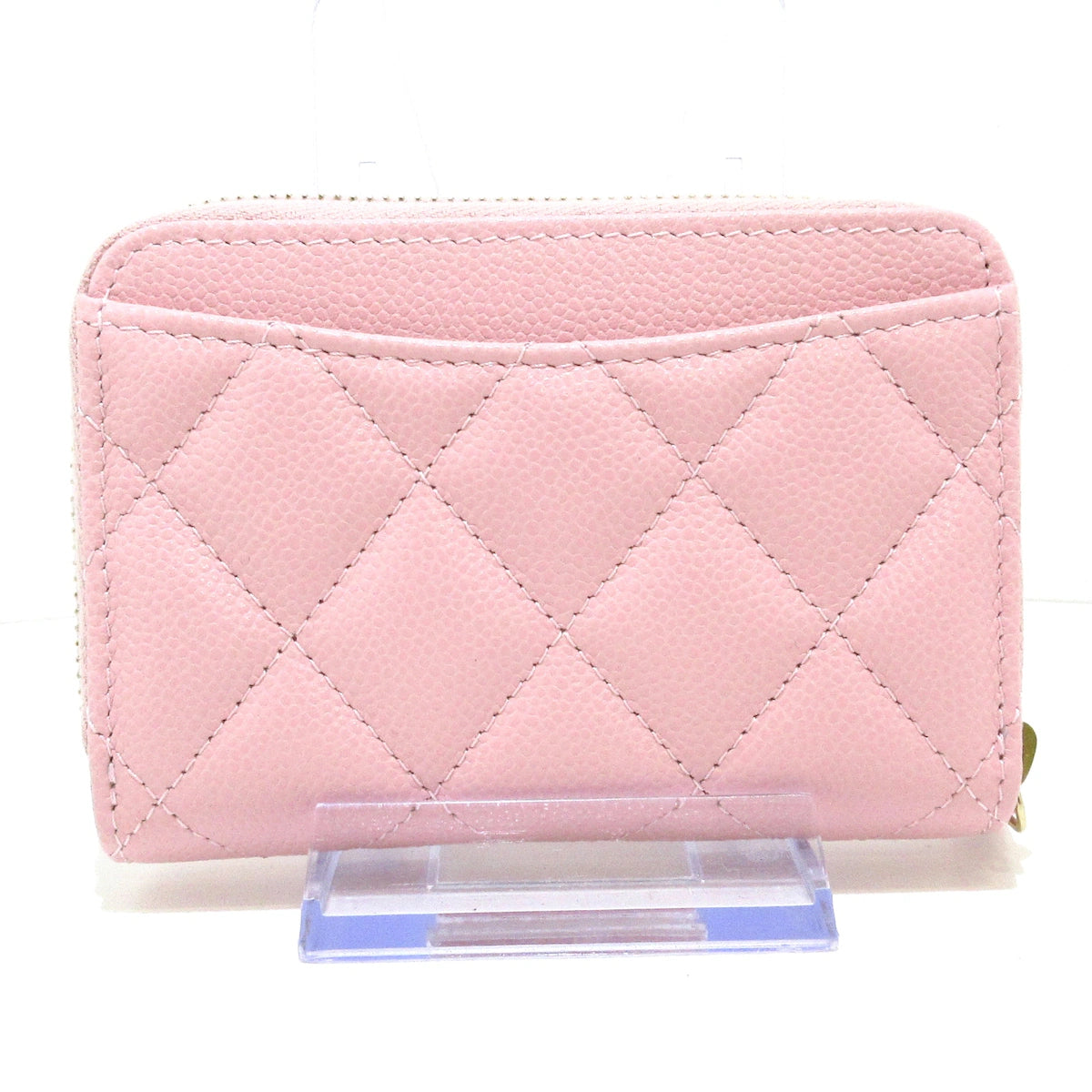 Monedero clásico con cremallera CC de piel de caviar rosa claro USADO