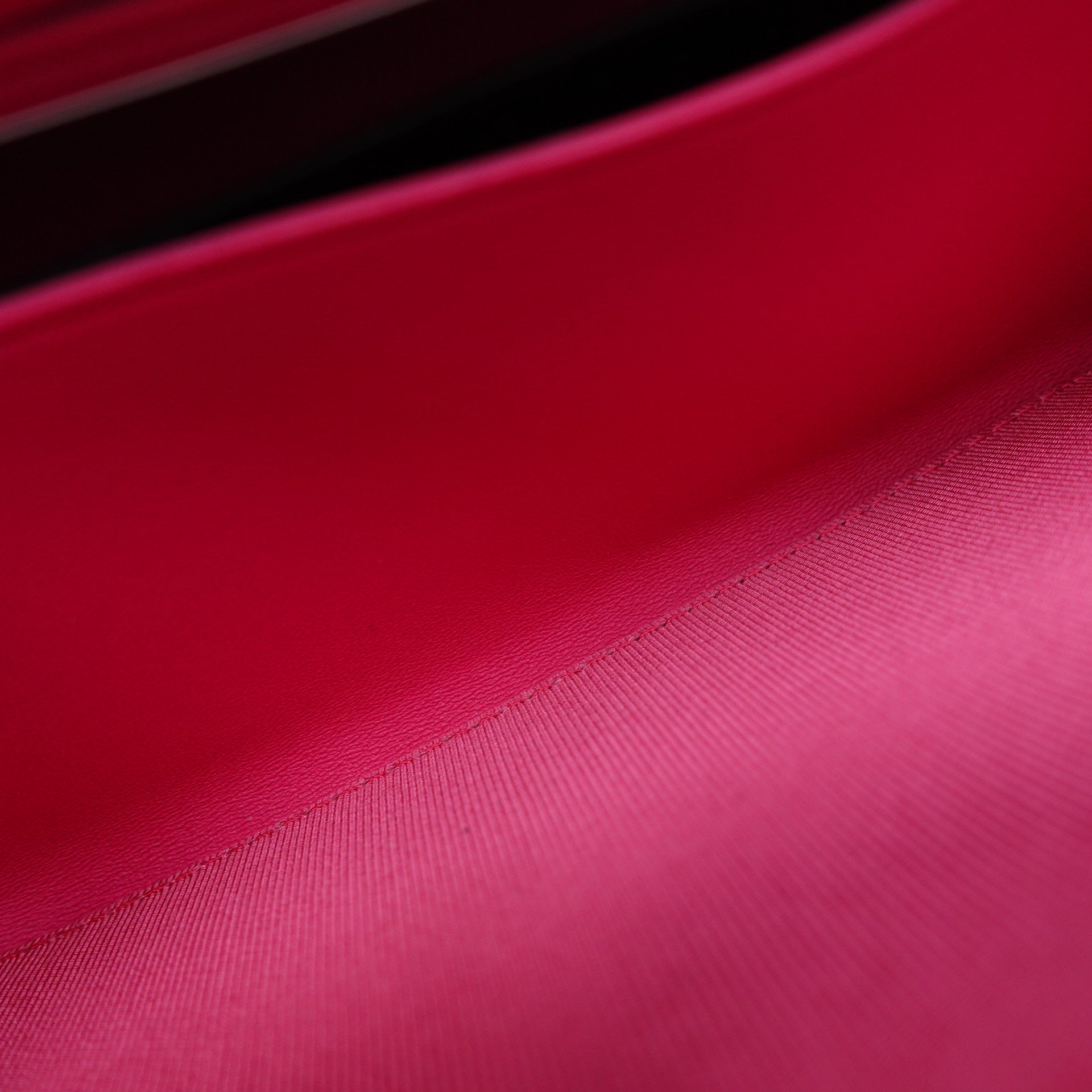 Descubra la elegancia de la Cartera Grande con Cremallera y Fuelle Acolchado de Piel de Cordero Rosa de CHANEL. Este exquisito accesorio está diseñado para realzar su estilo y ofrecerle practicidad.