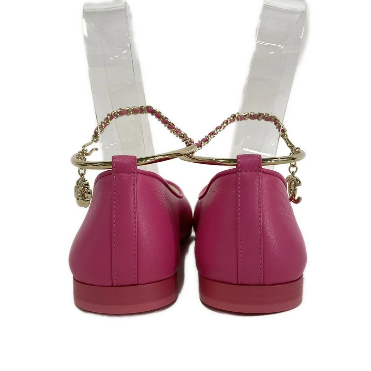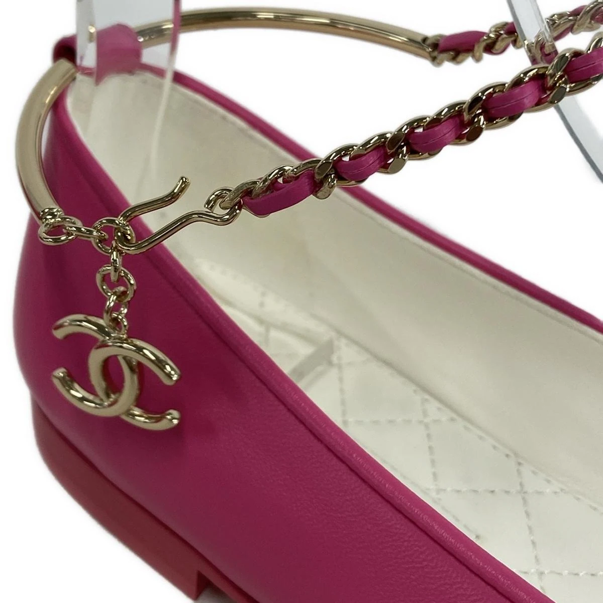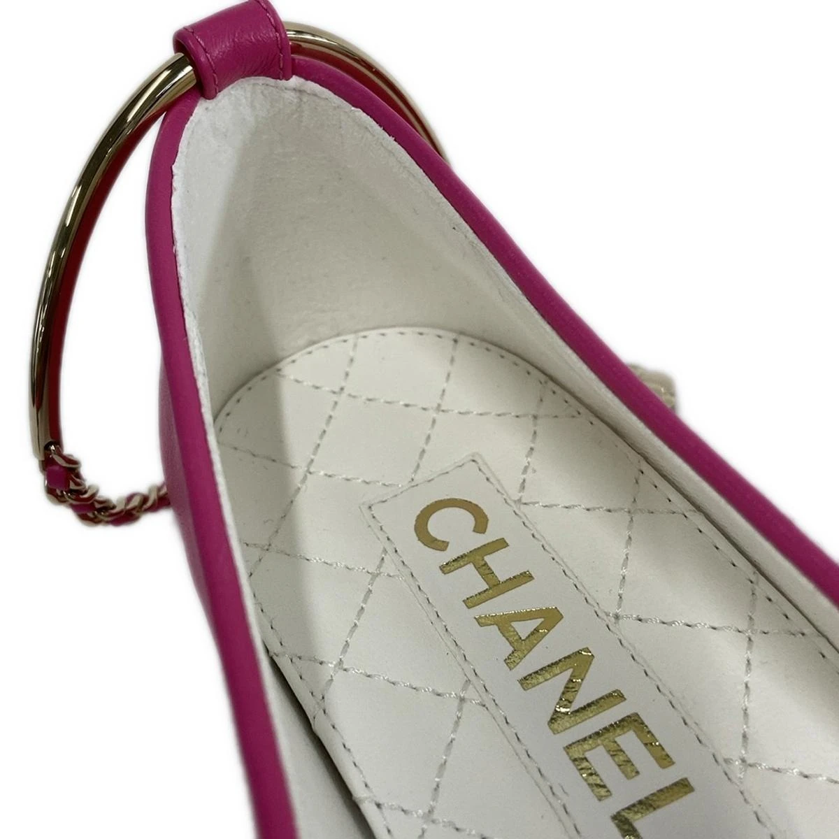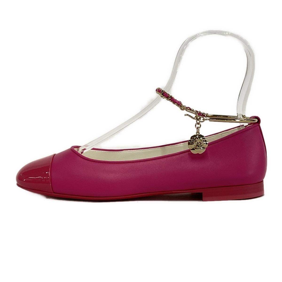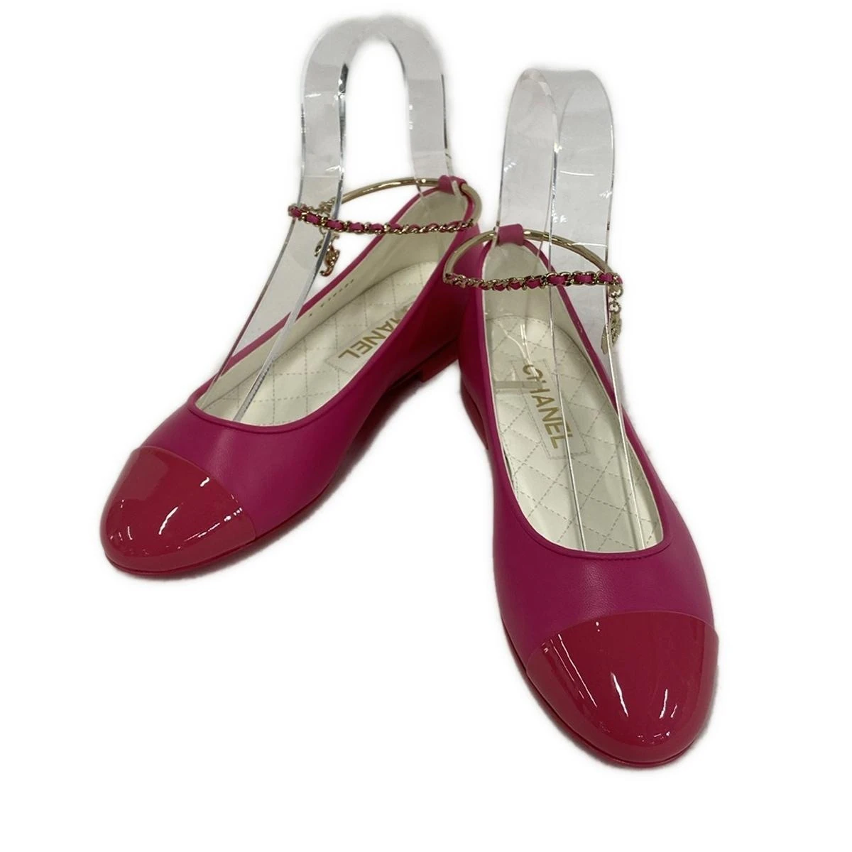 ¡Date un capricho con estas bailarinas de charol rosa de Chanel de segunda mano! En muy buenas condiciones, estas bailarinas presentan un diseño ligero y duradero con un exterior de charol rosa elegante y con estilo. El interior ofrece un soporte cómodo y un toque de elegancia con un pequeño tacón y accesorios incluidos. Perfectos para cualquier ocasión, estos zapatos realzarán tu atuendo y te harán sentir segura y elegante.