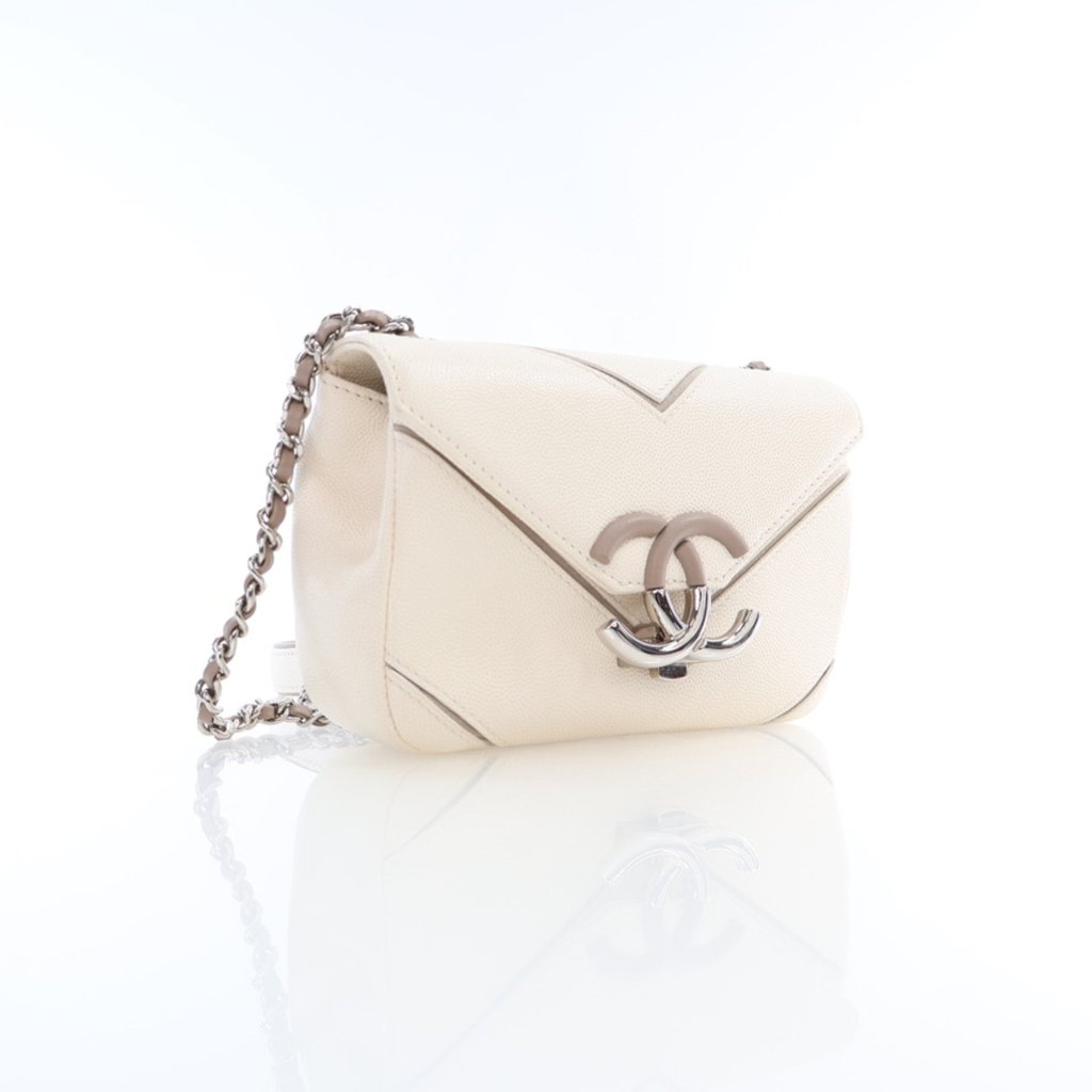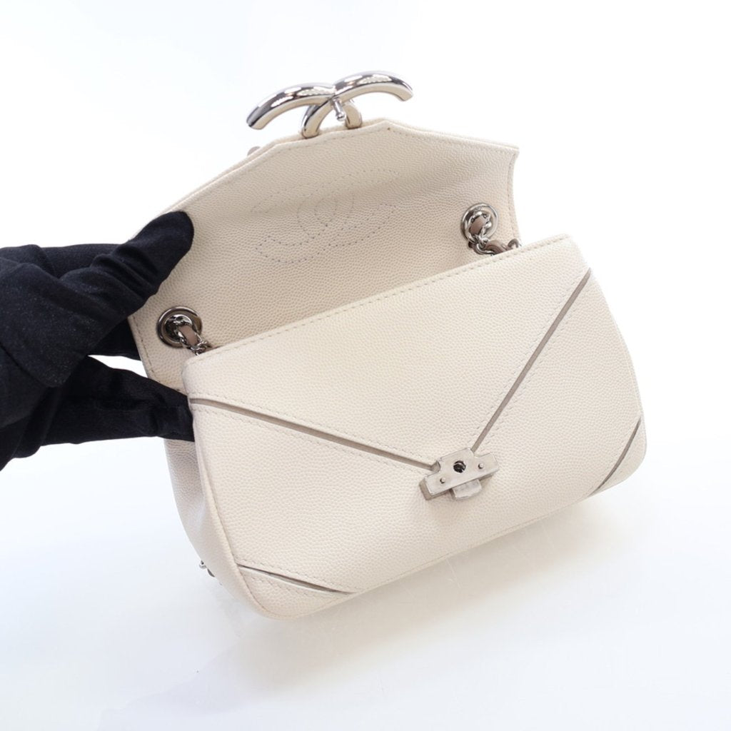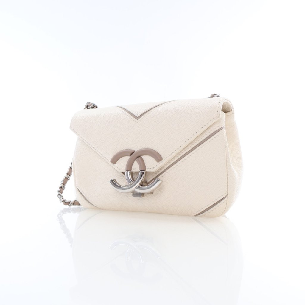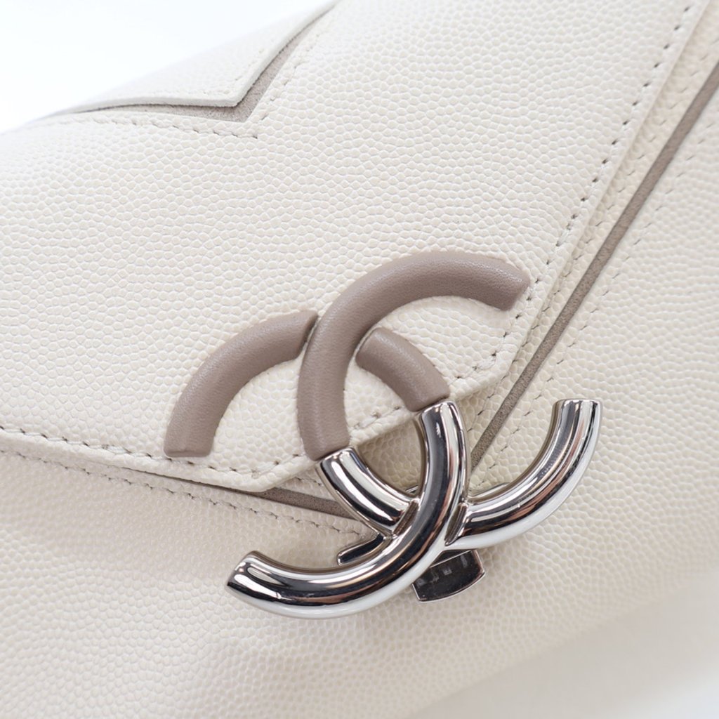 Bolso de hombro con solapa CC White Caviar Macro Chevron de segunda mano