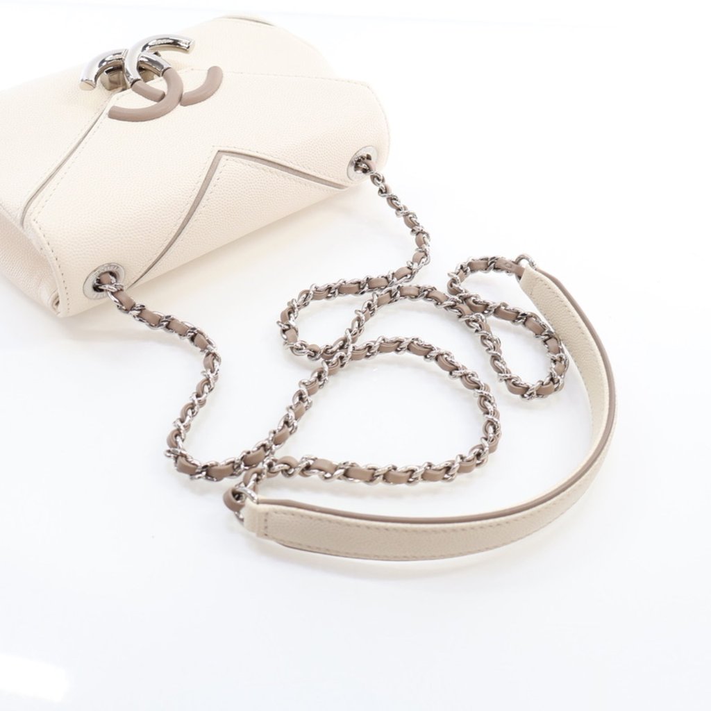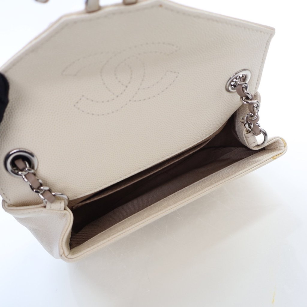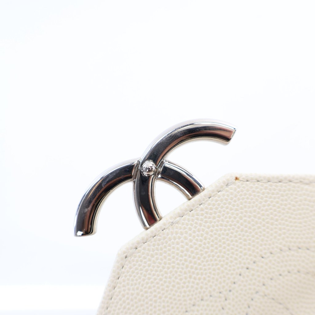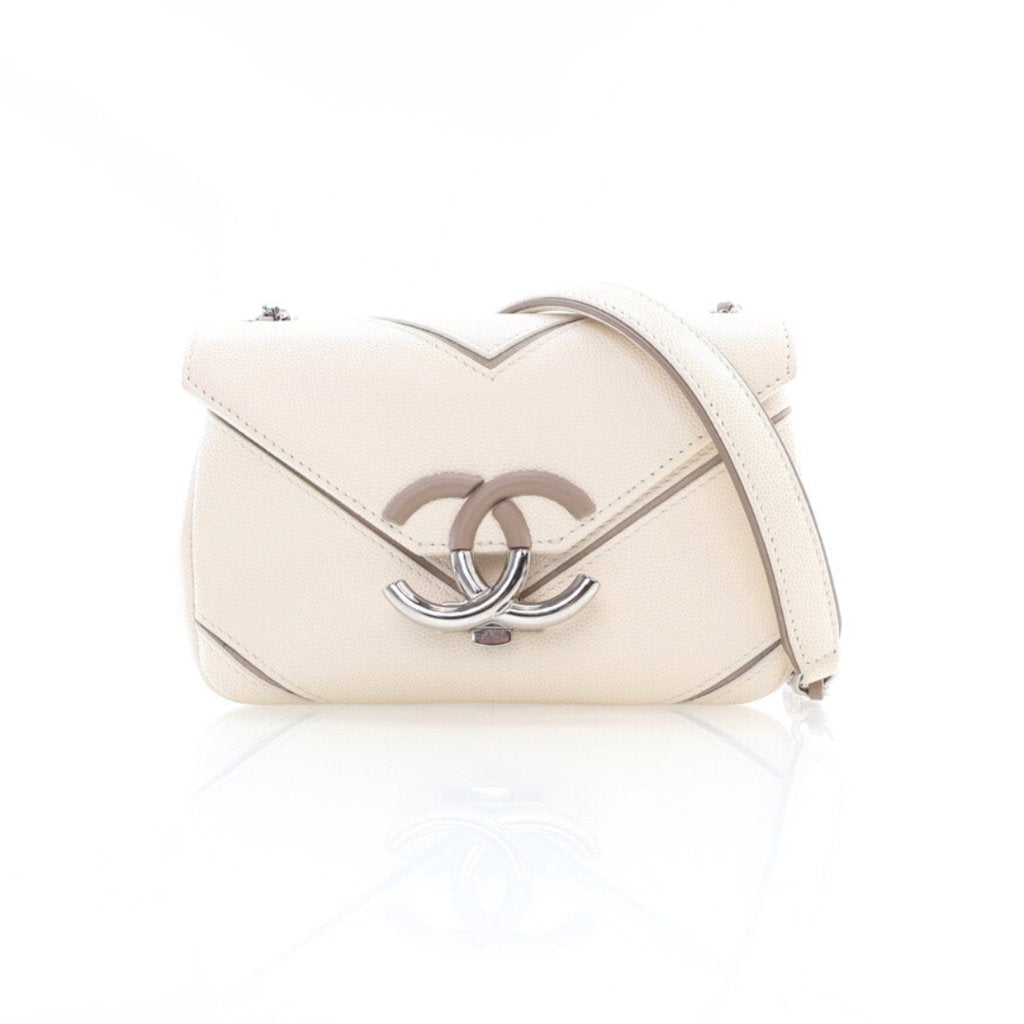 Bolso de hombro con solapa CC White Caviar Macro Chevron de segunda mano