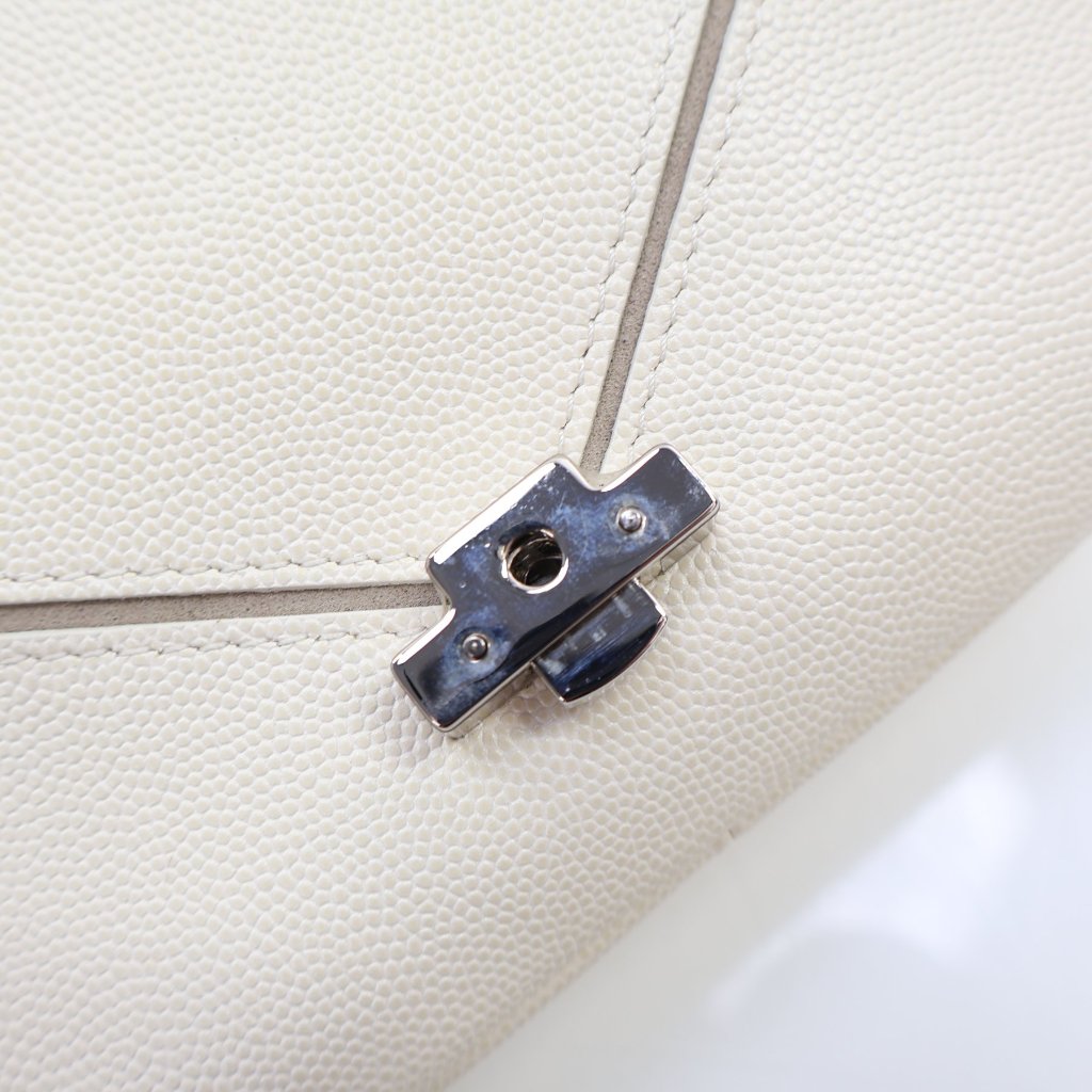 Mejora tu juego de accesorios con el bolso de hombro con solapa CHANEL White Caviar Macro Chevron, donde el estilo se combina con la practicidad.