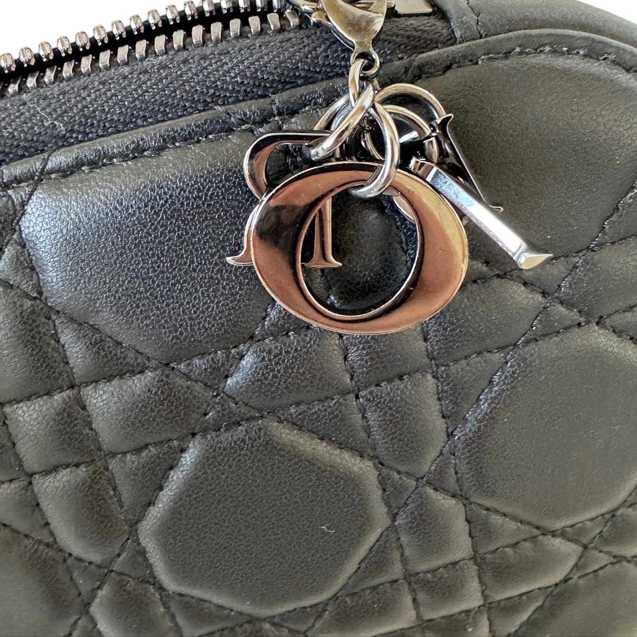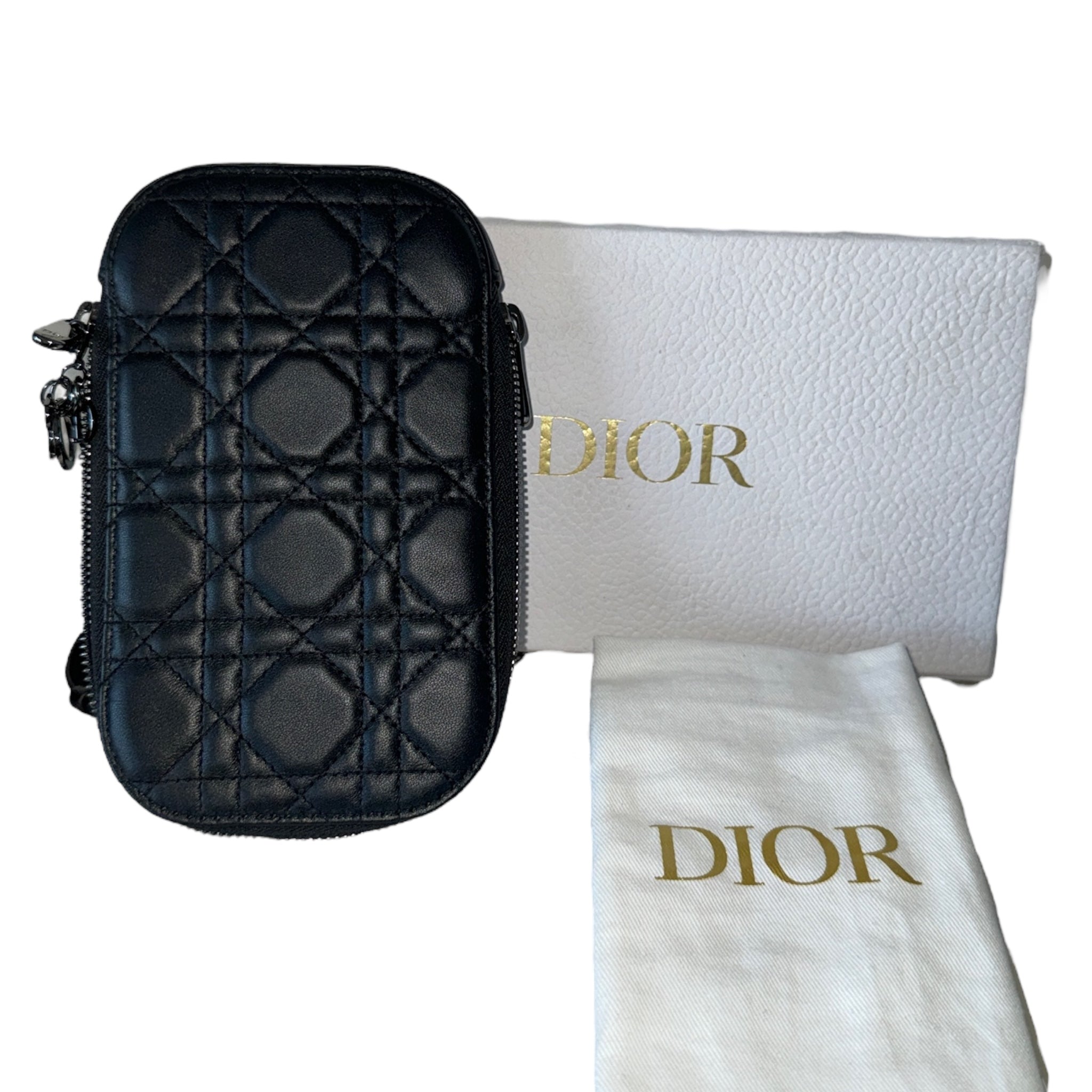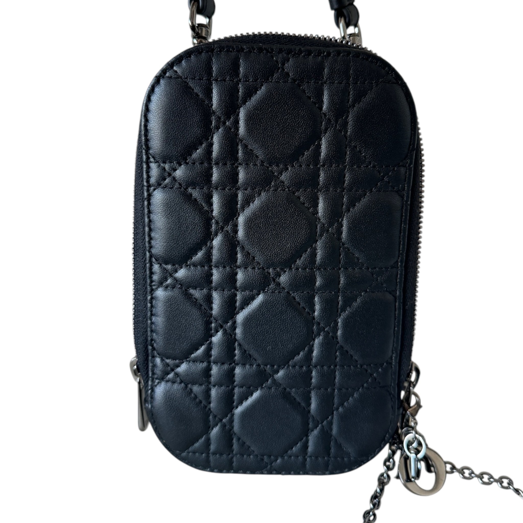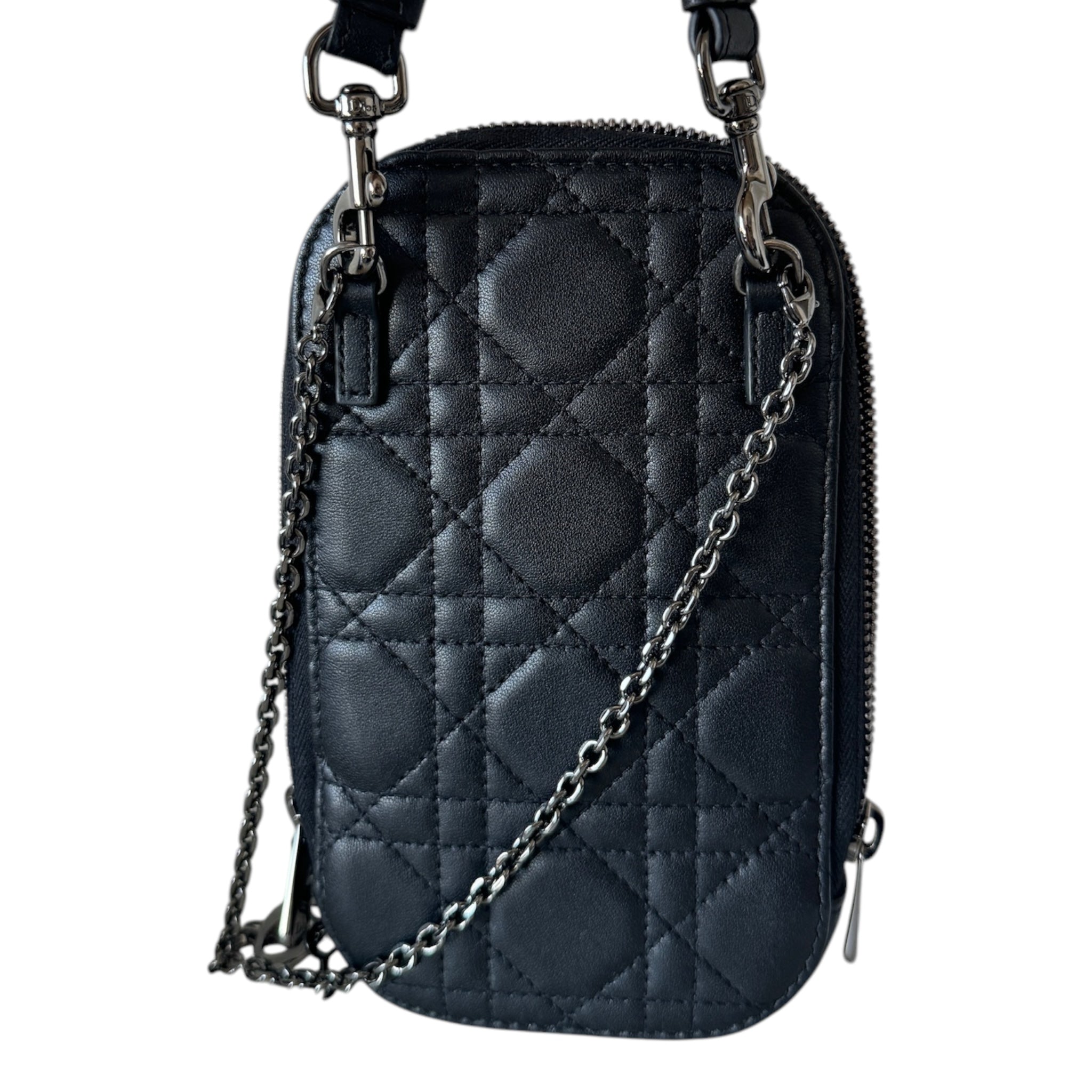 DIOR - Bolso bandolera de piel Cannage negra con soporte para teléfono