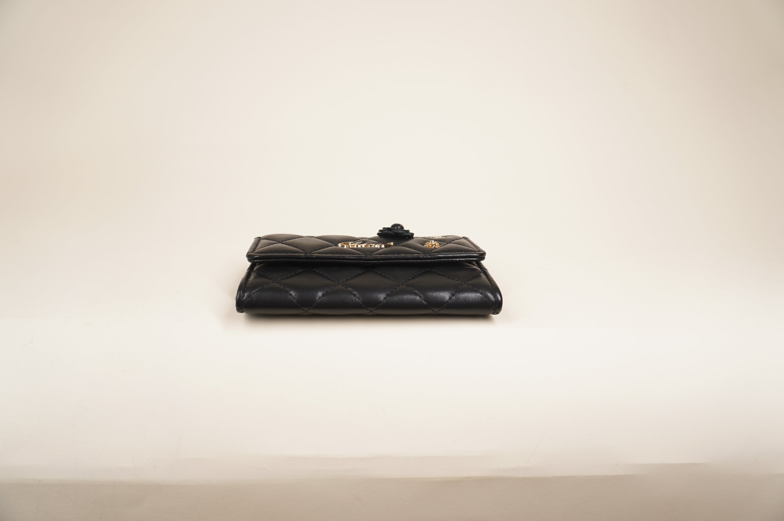 This Chanel Black Lambskin Black CardHolder is a must-have accessory for any fashion-forward individual. Made from high-quality lambskin, it offers both durability and elegance. With its sleek design and spacious compartments, it is perfect for organizing your cards while adding a touch of luxury to your everyday style.