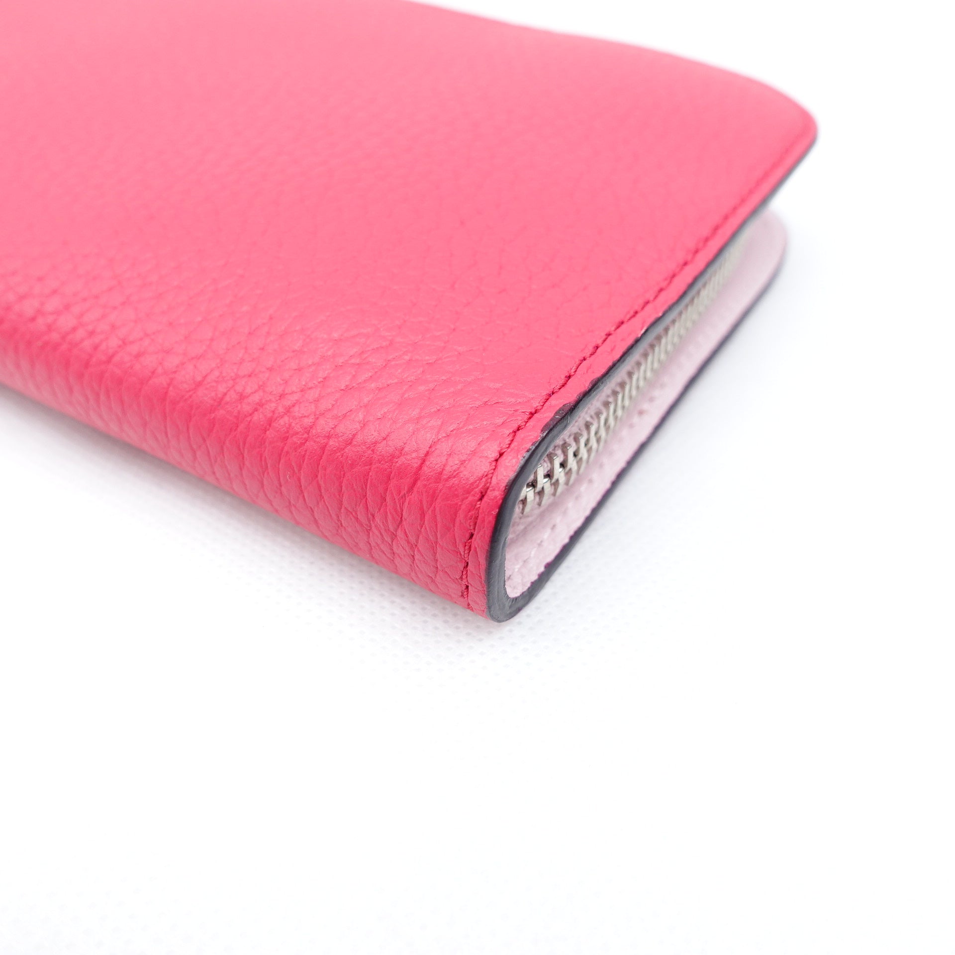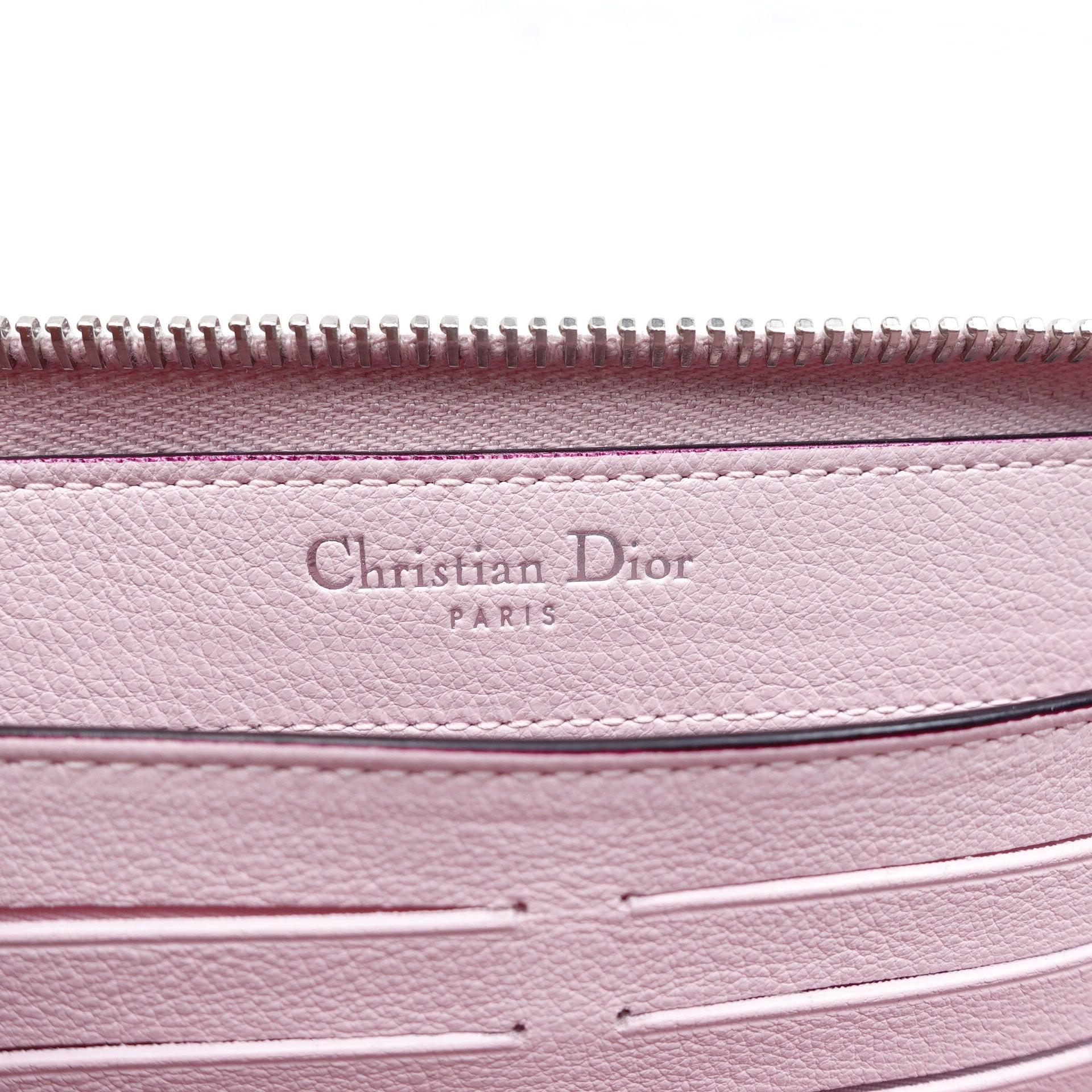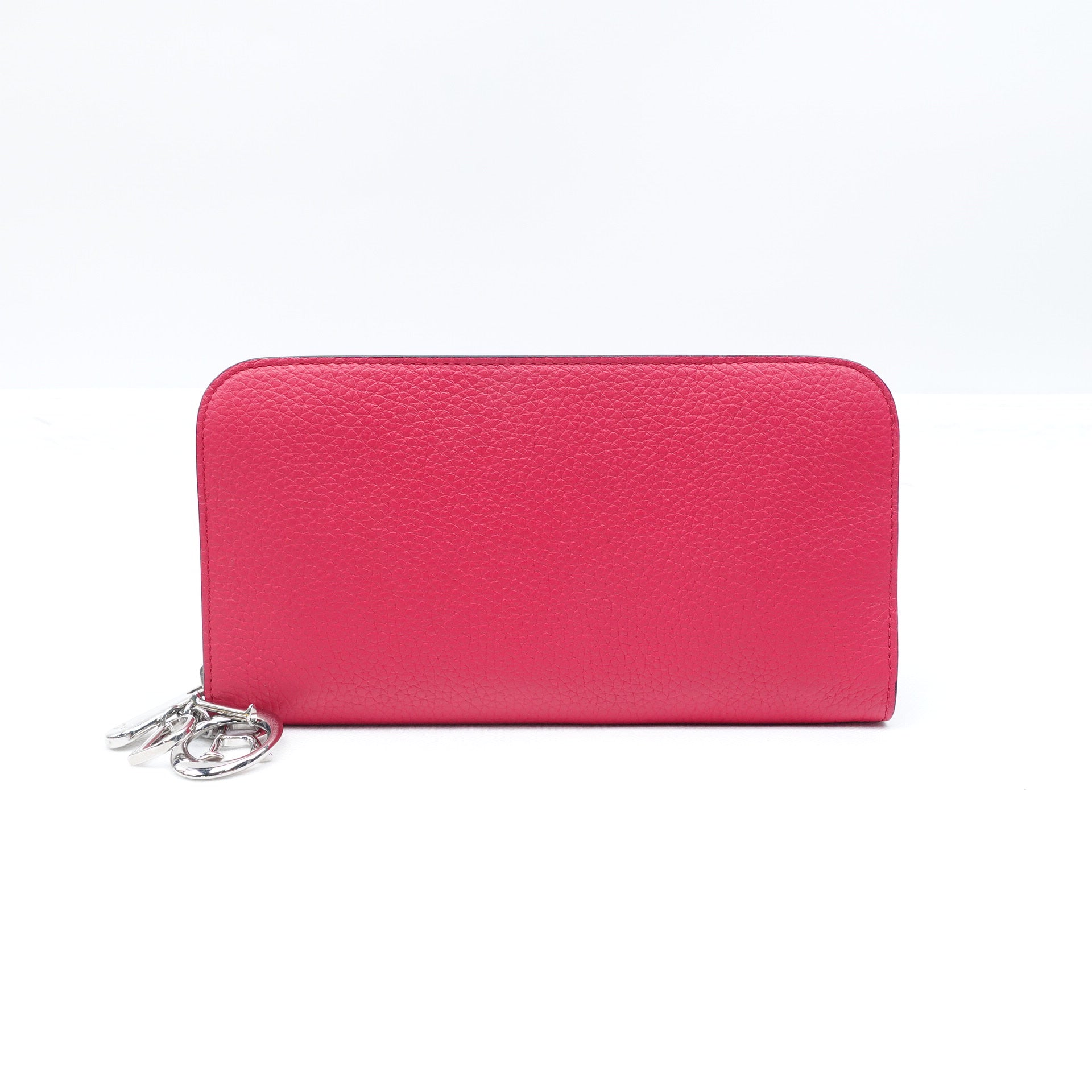 Añade un toque de sofisticación a tu armario con la cartera larga Diorissimo de piel fucsia de Dior.