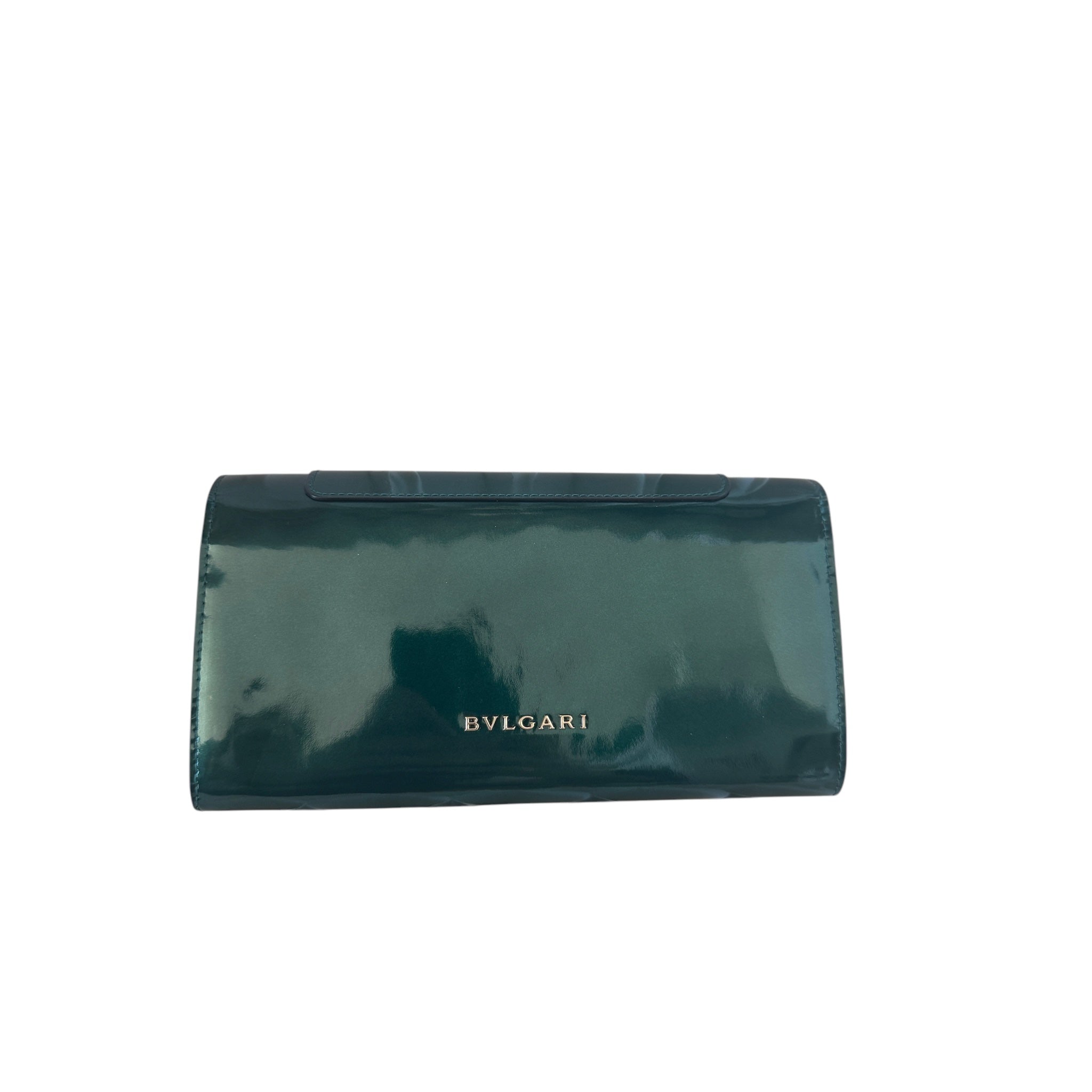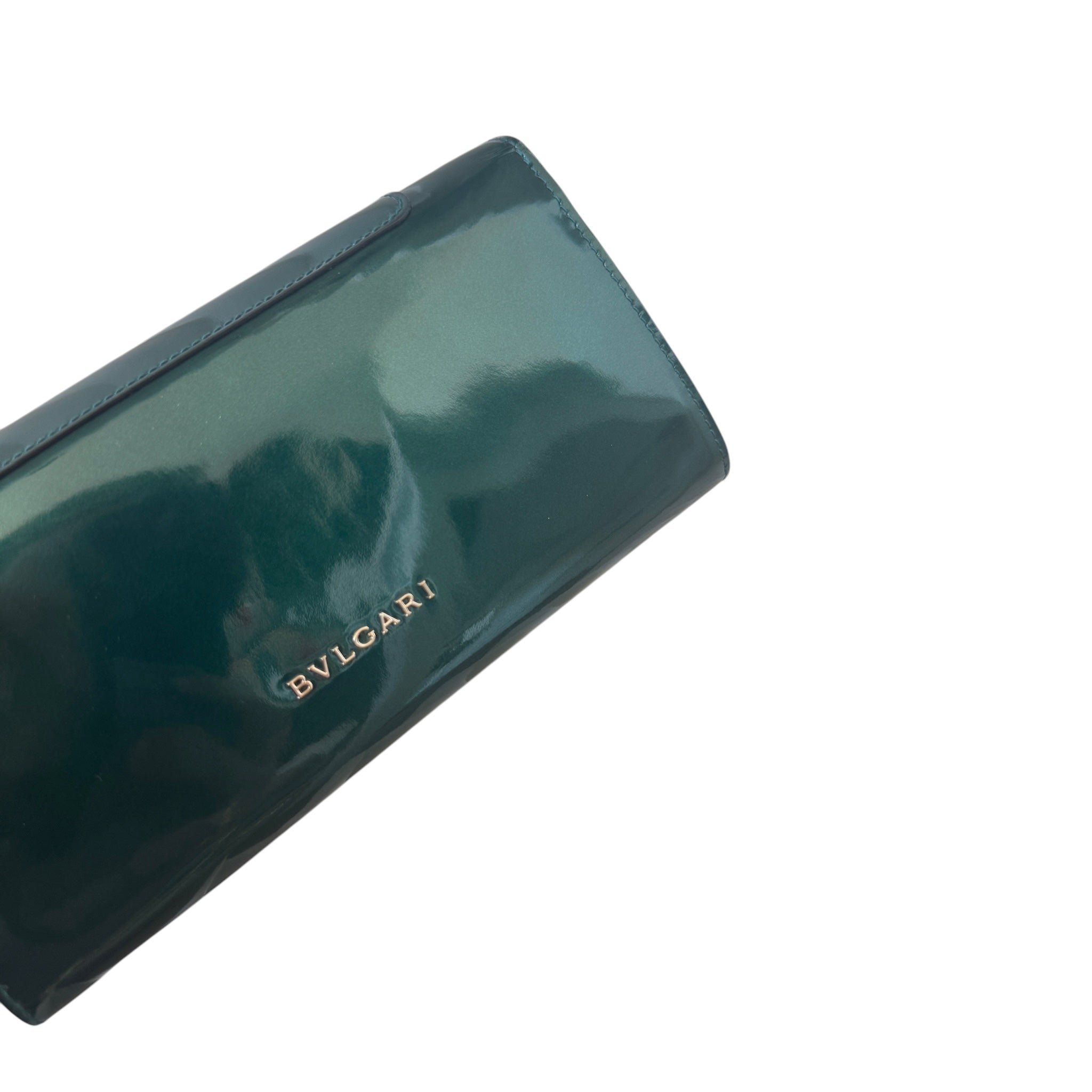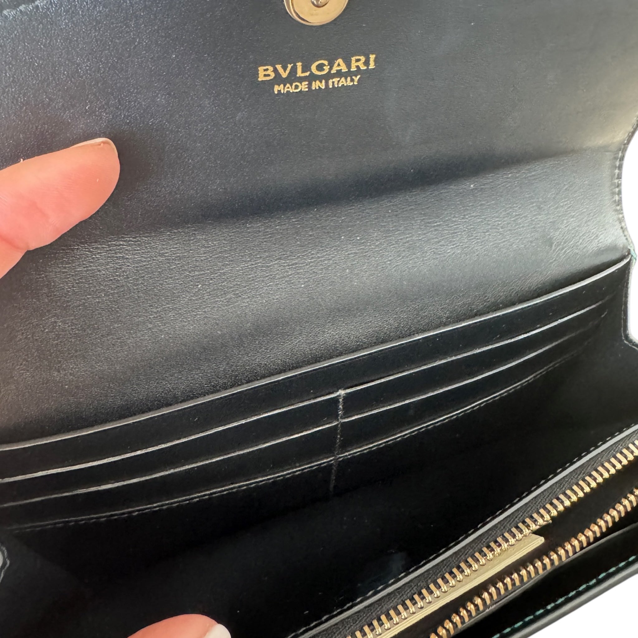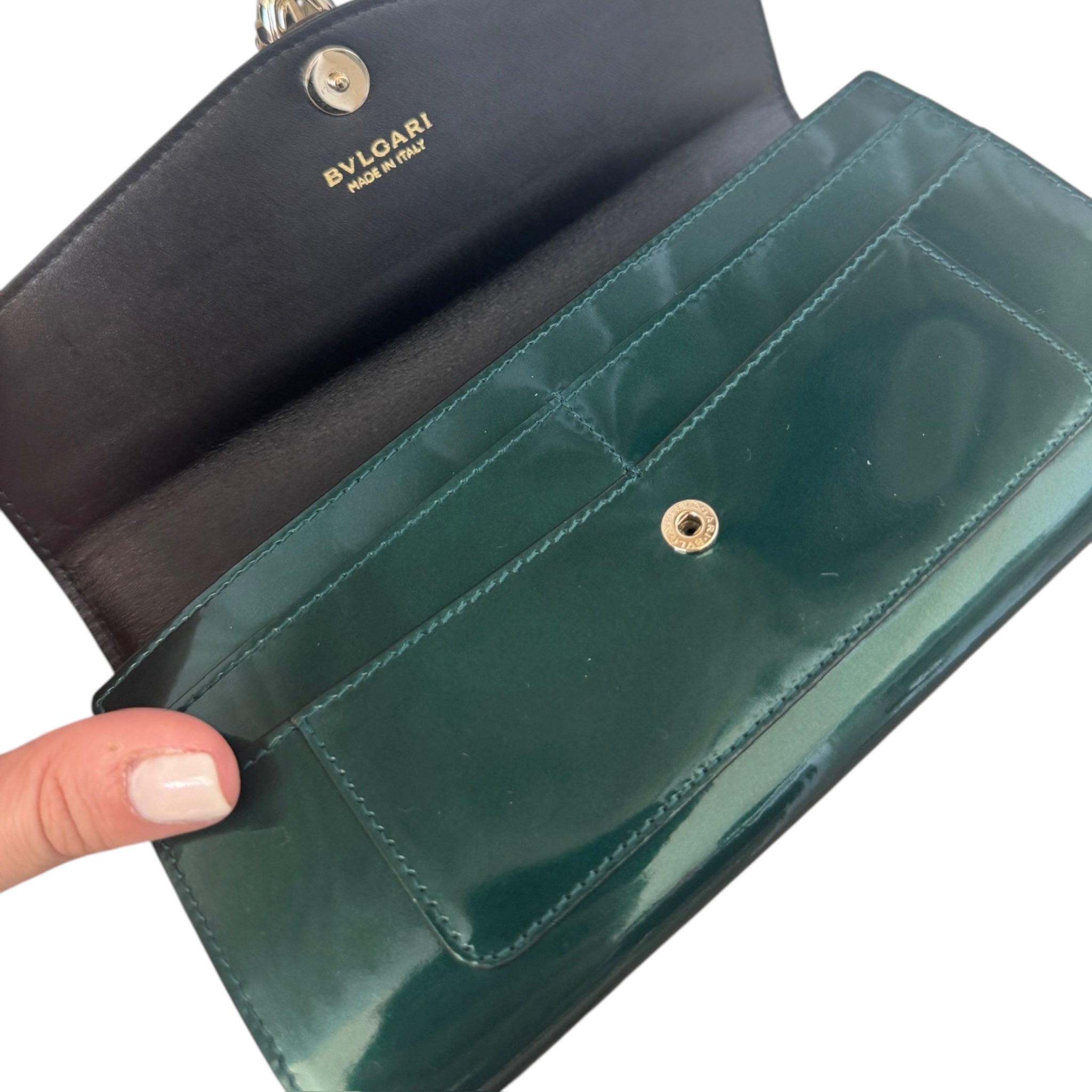 Añade un toque de elegancia a tu colección con la cartera BVLGARI - Serpenti Forever de cuero verde metalizado.