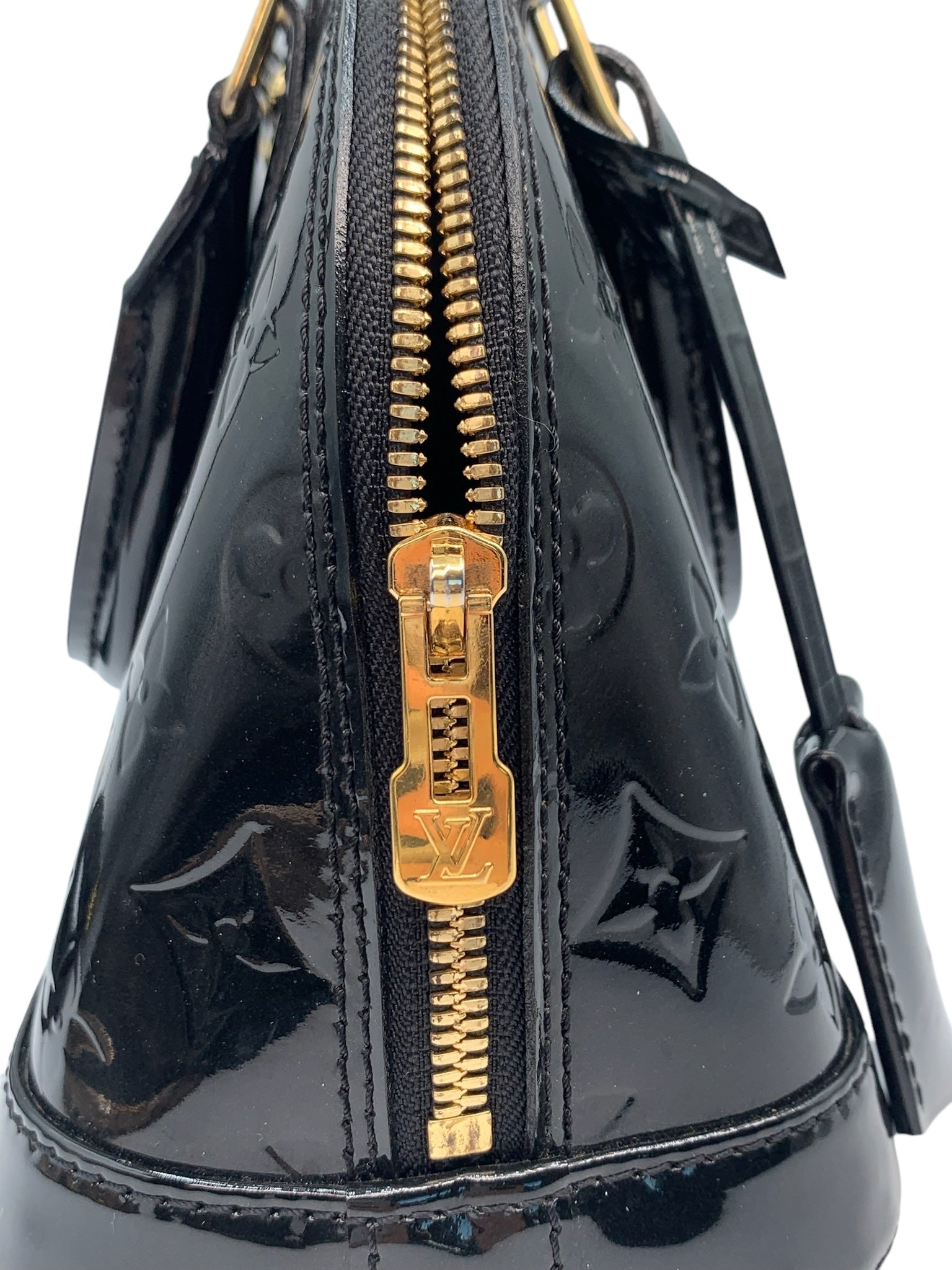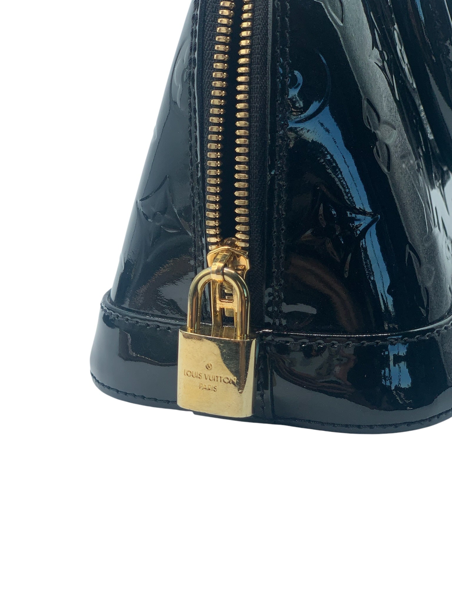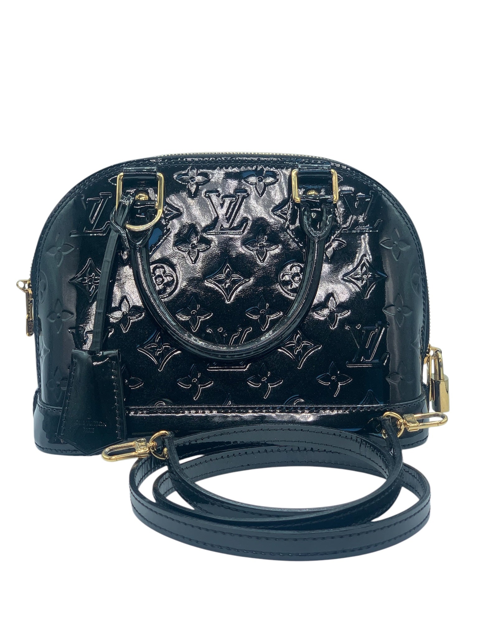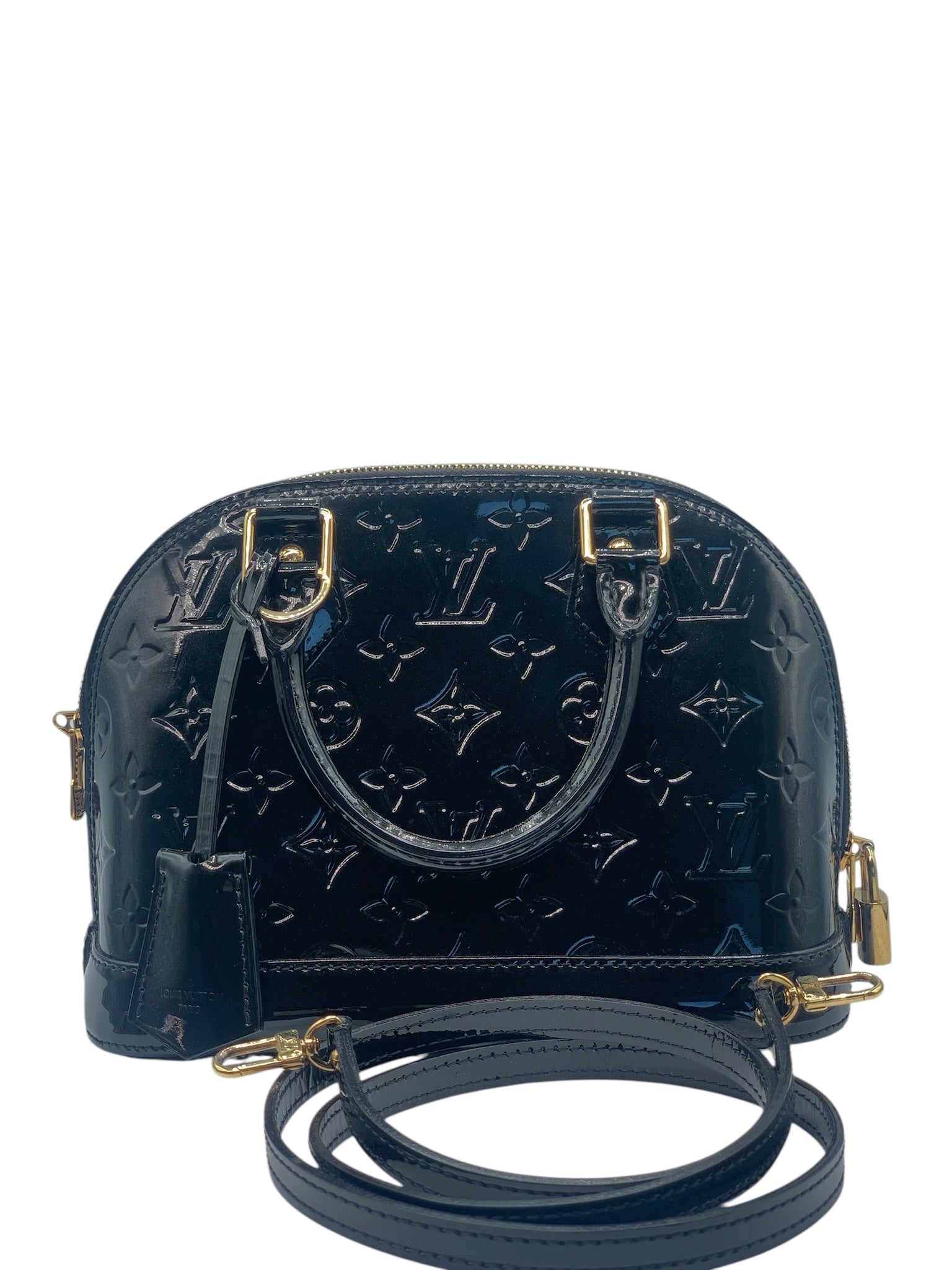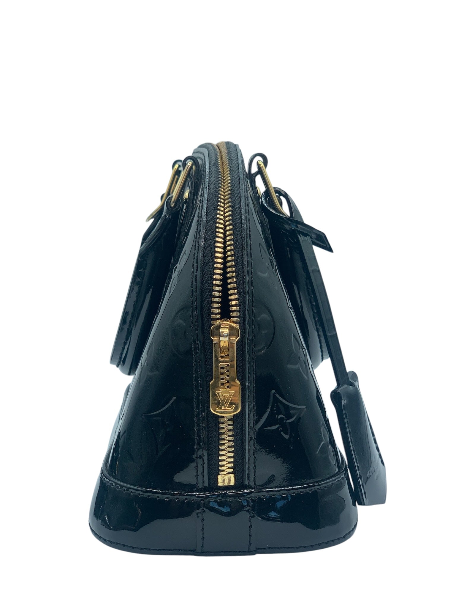 Descubra la elegancia del bolso de hombro Alma BB Vernis negro de LOUIS VUITTON, una combinación perfecta de estilo y funcionalidad.