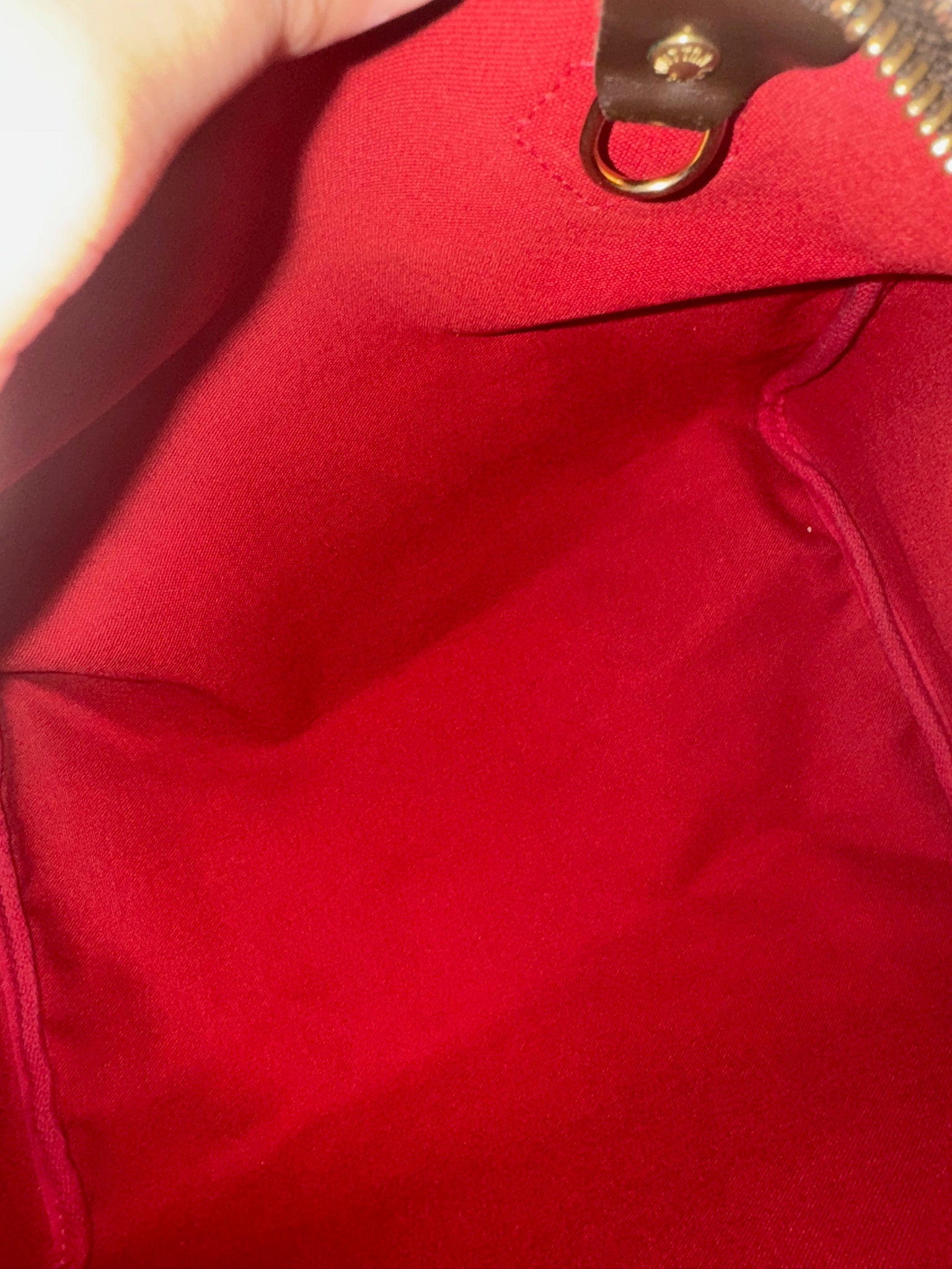 - Presenta el diseño Damier Ebene Canvas, un patrón característico de la marca de lujo.