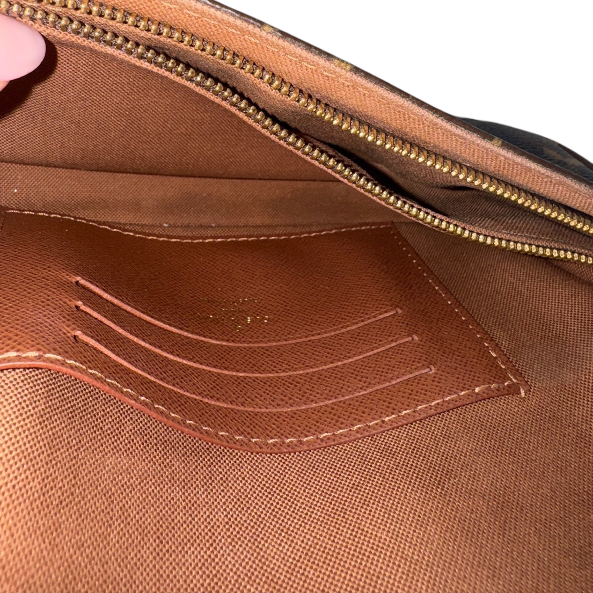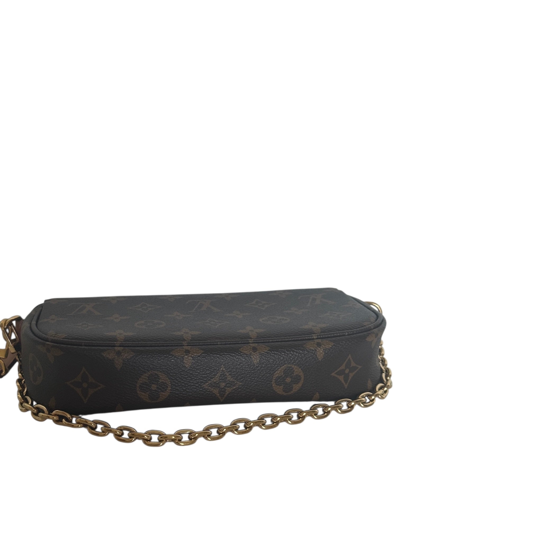 Realza tu estilo con la Cartera LV Ivy de lona con monograma y cadena de segunda mano. Su lujoso exterior de lona revestida irradia sofisticación, mientras que el interior de tela suave añade un toque de comodidad. Con detalles dorados y una correa extraíble adicional, esta versátil cartera es perfecta para cualquier ocasión. Dimensiones: