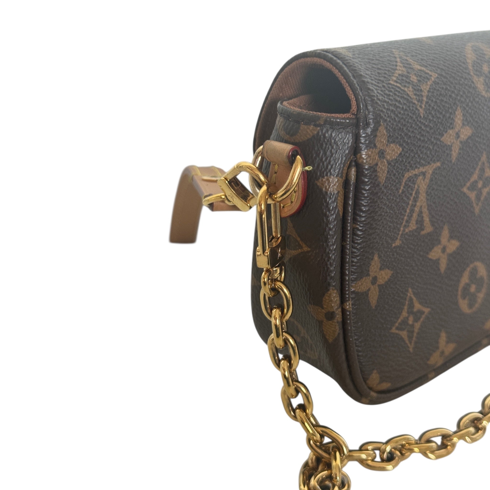 Cartera LV Ivy de lona con monograma y cadena de segunda mano
