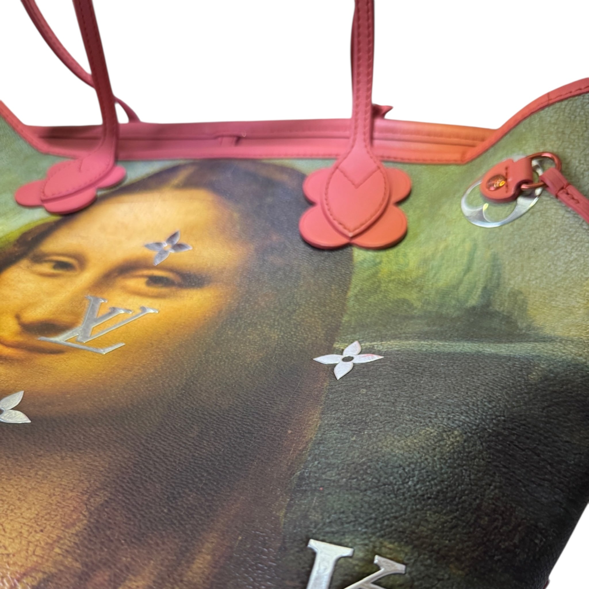 Bolso de hombro LV Neverfull NM Tote de edición limitada de lona con estampado Da Vinci de Jeff Koons de segunda mano