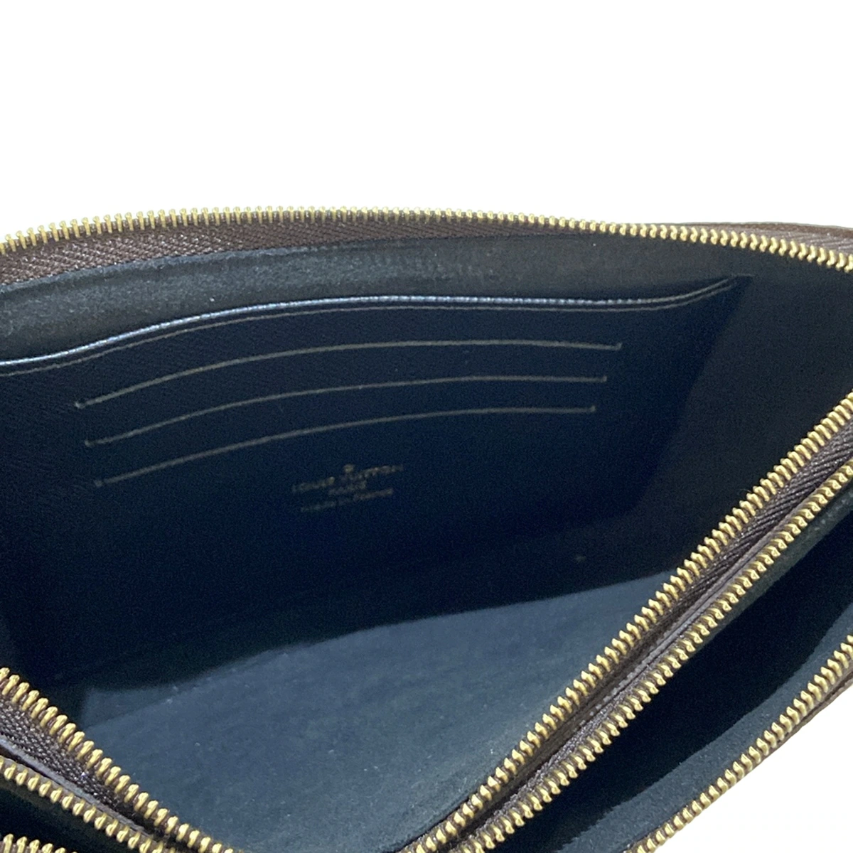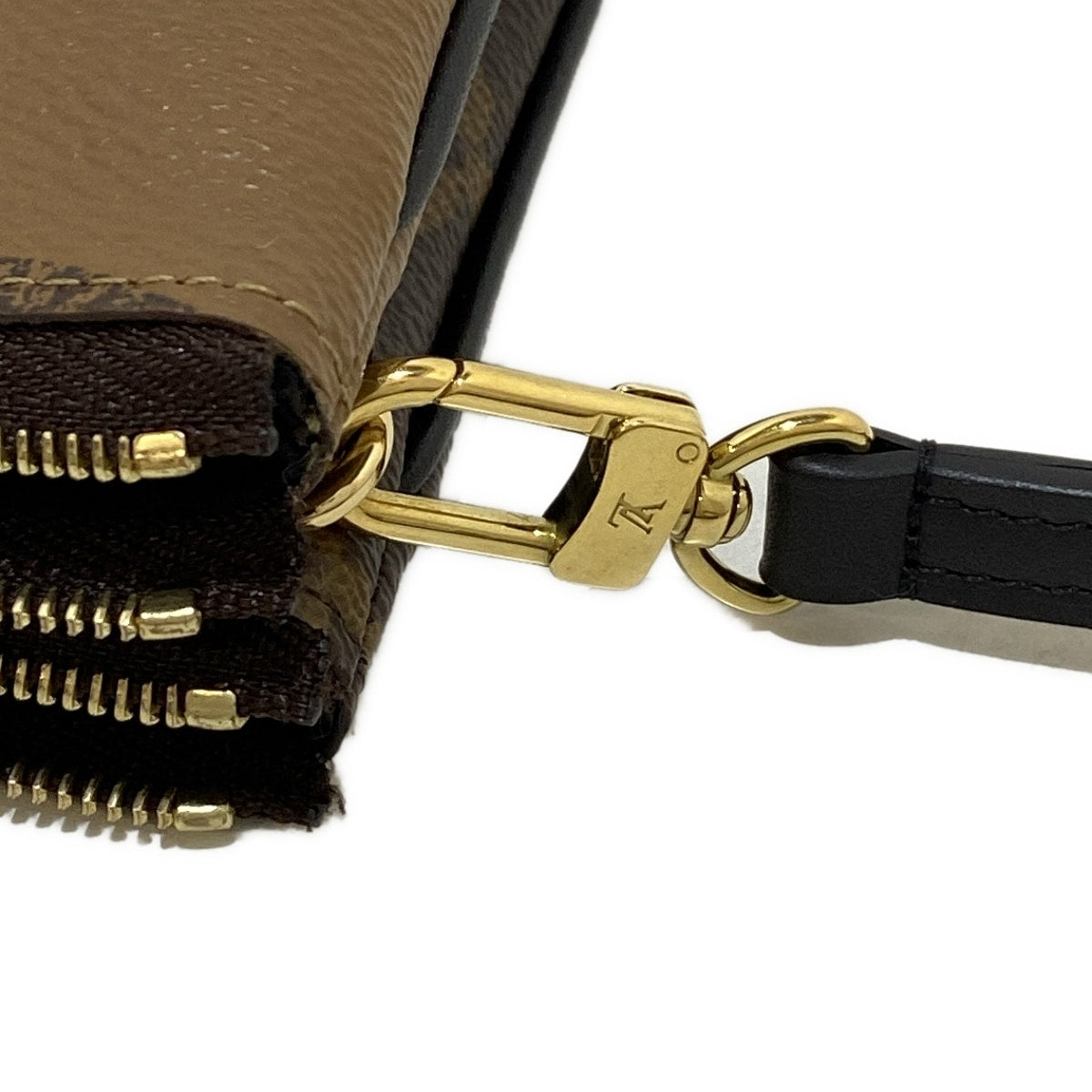 Este bolso bandolera con doble cremallera Pochette de LOUIS VUITTON usado presenta un diseño exclusivo de lona con monograma invertido, perfecto para agregar un toque de lujo a tu atuendo.