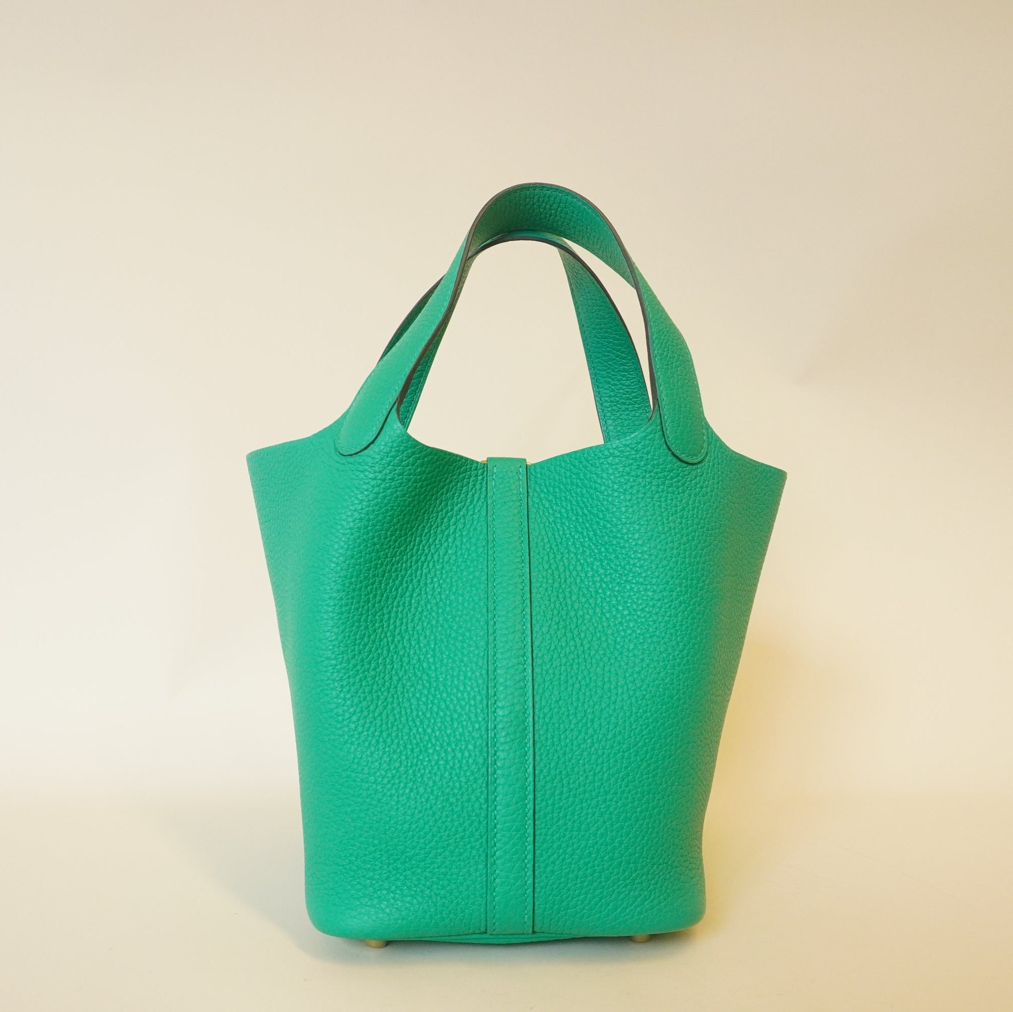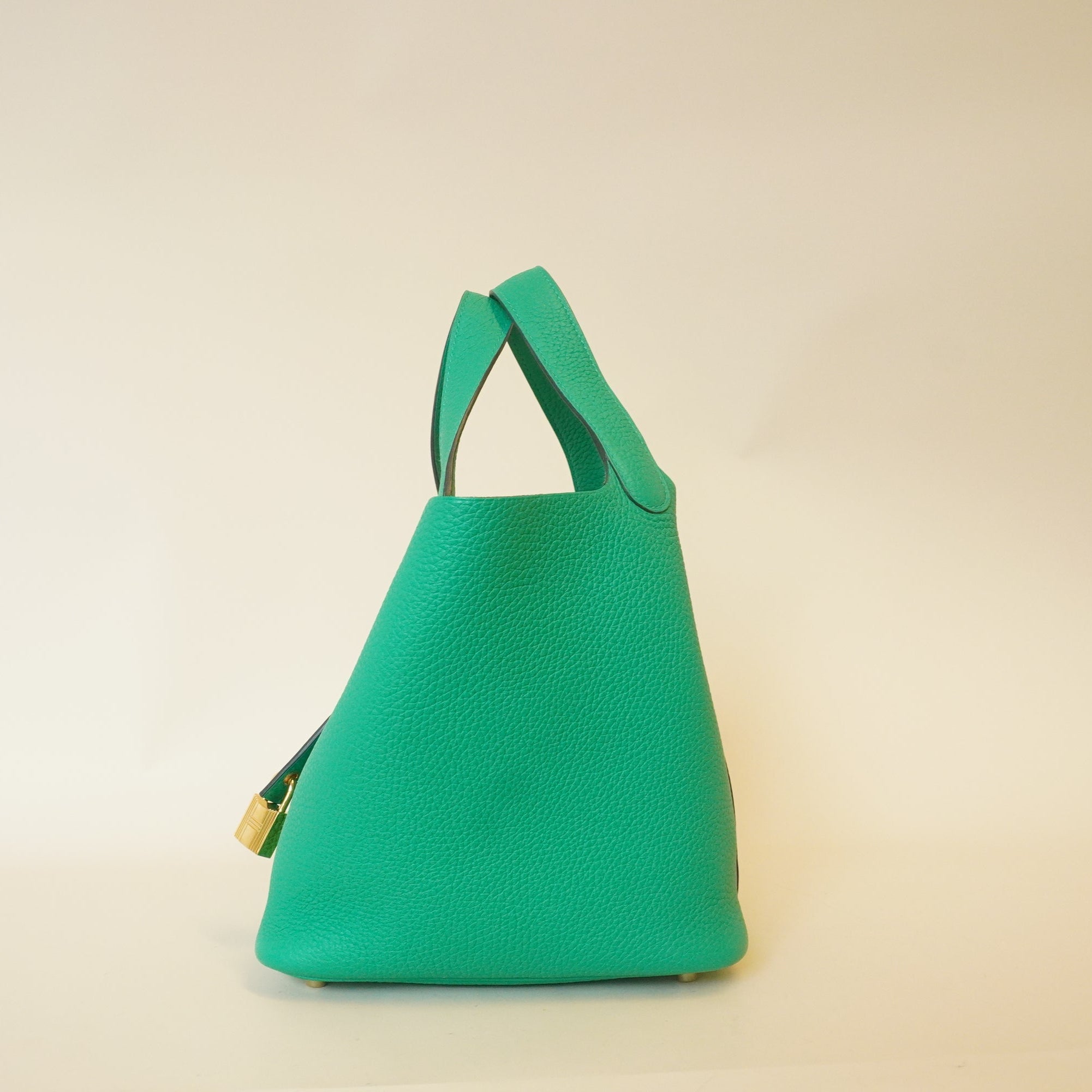 - Diseño elegante: El bolso de mano HERMES Mint Taurillon Clemence Picotin Lock PM es un accesorio clásico. Su diseño minimalista pero sofisticado, perfecto para cualquier ocasión. El bolso luce un distintivo cierre Picotin que le aporta un toque de lujo.