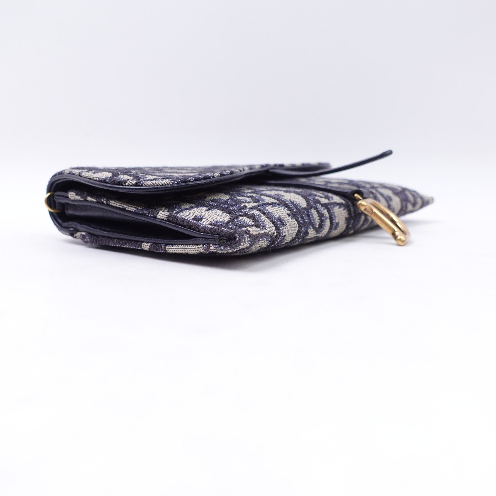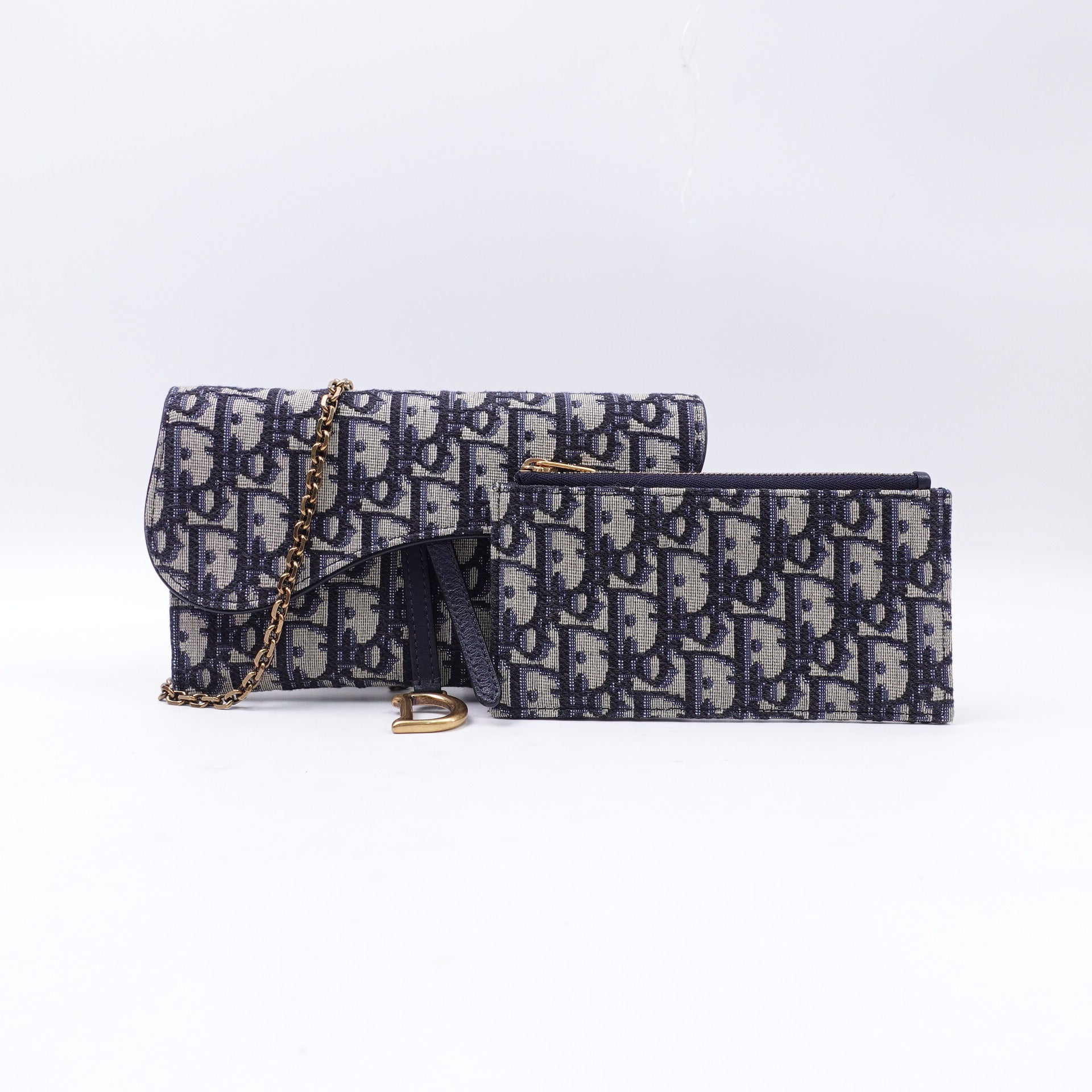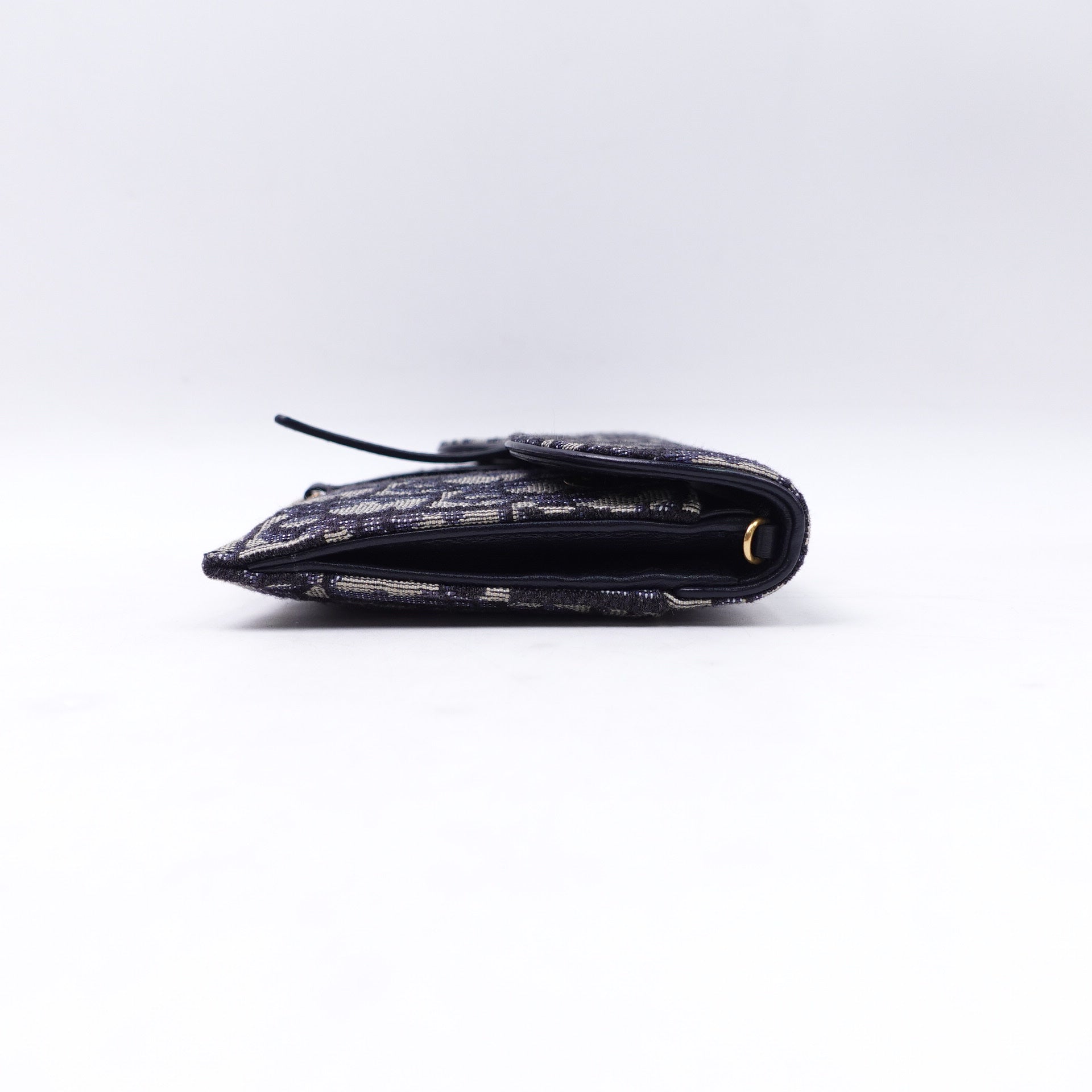 Cartera de lona oblicua azul marino de segunda mano con cadena