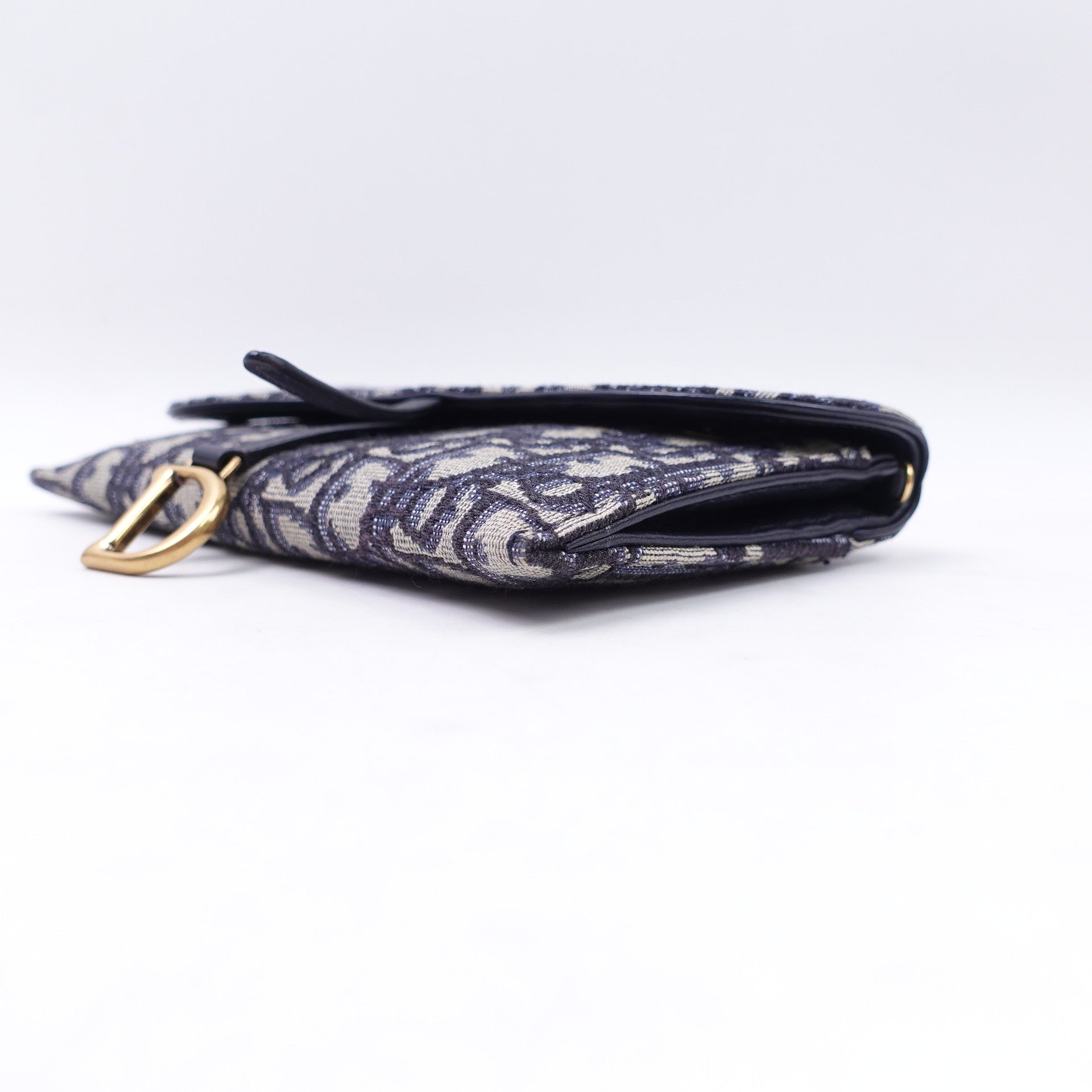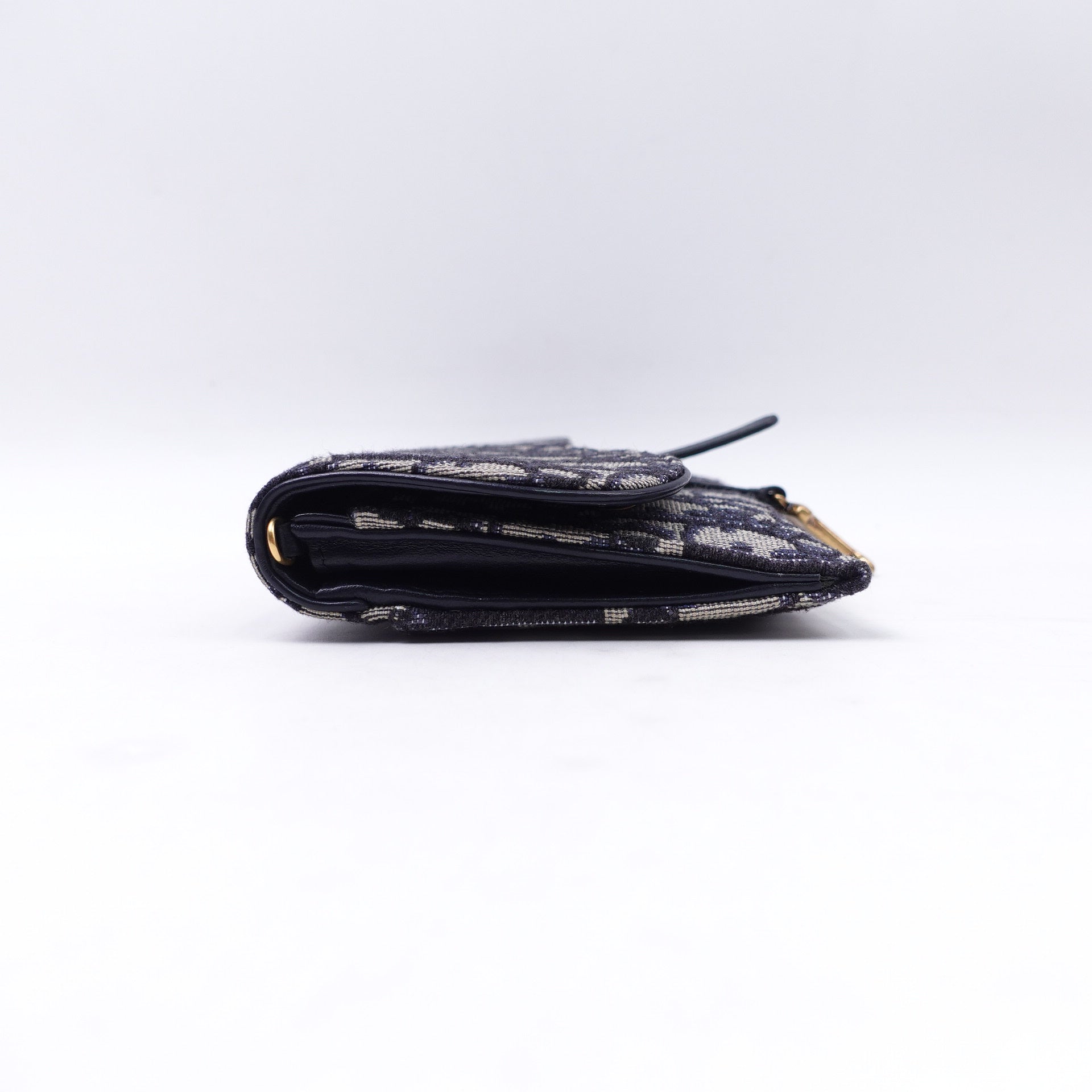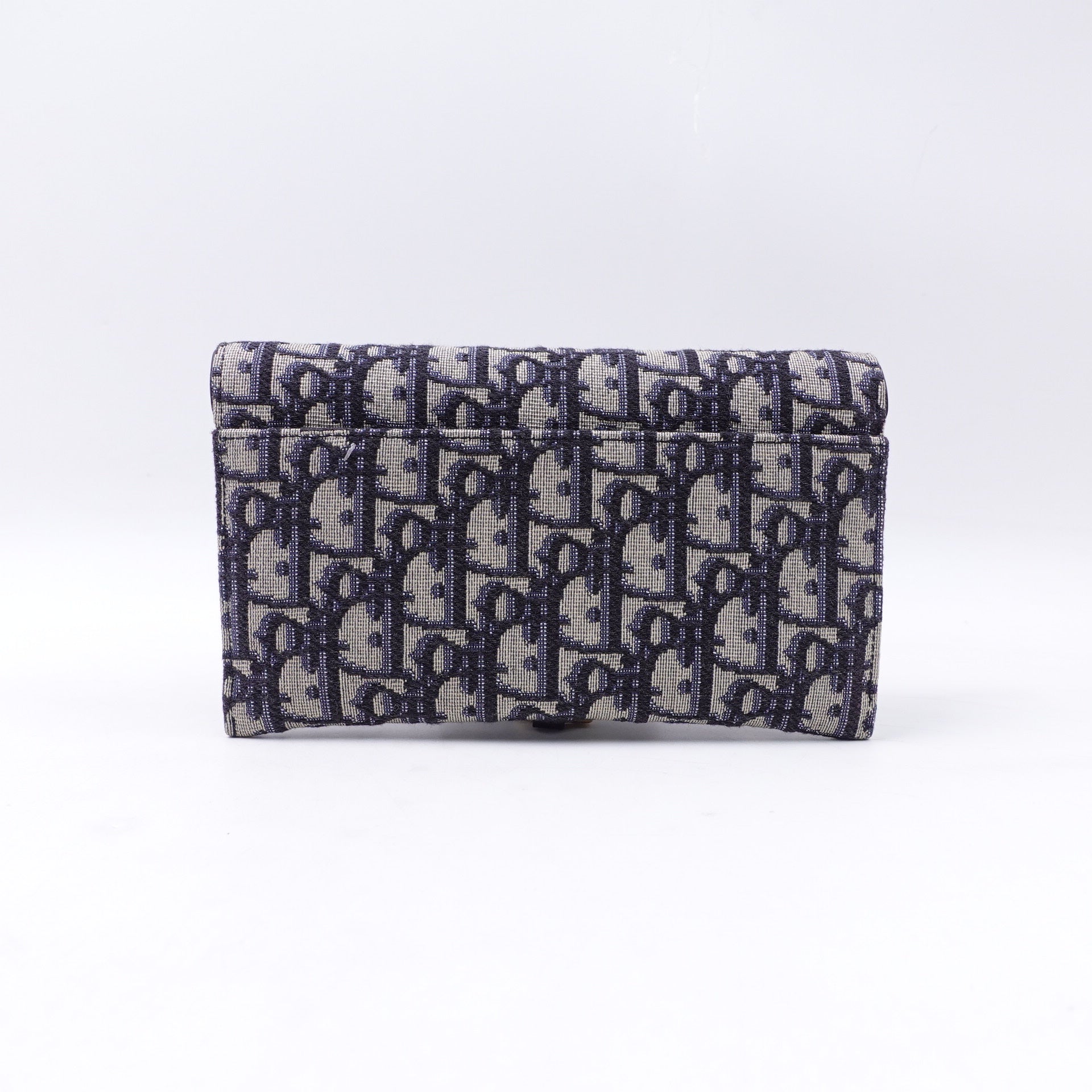 Cartera de lona oblicua azul marino de segunda mano con cadena