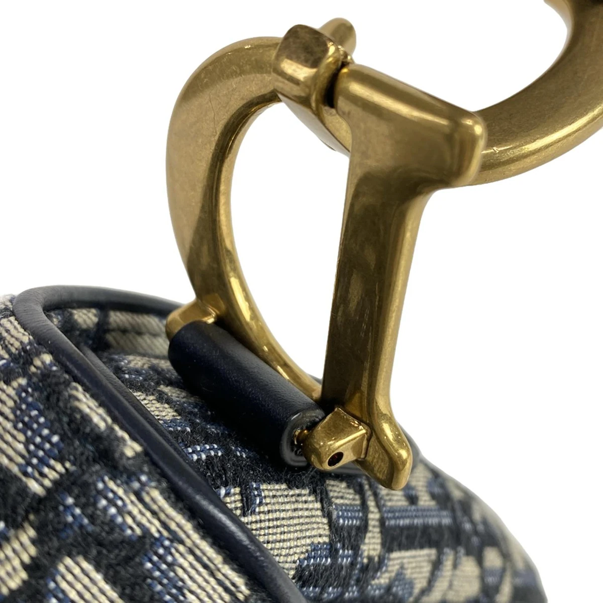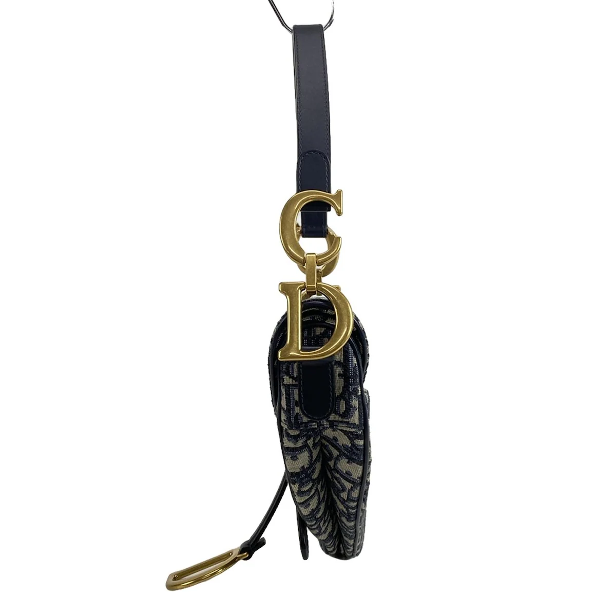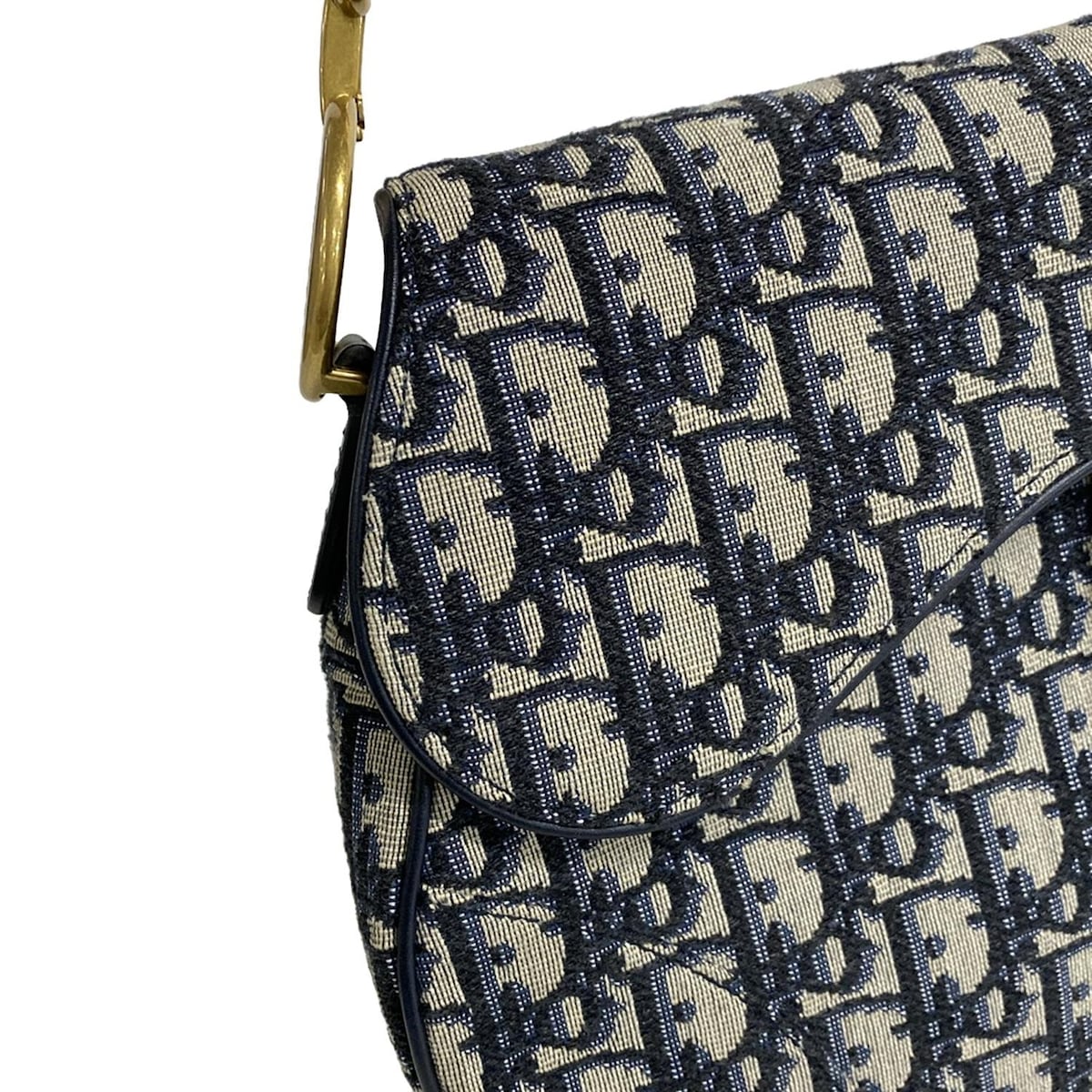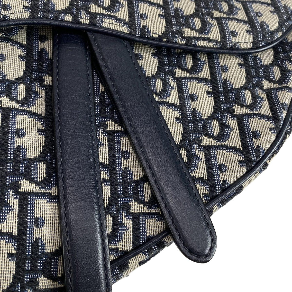 Mejora tu juego de accesorios con el bolso de hombro Saddle Bag de piel jacquard azul marino y crema de DIOR, una combinación perfecta de estilo y practicidad.