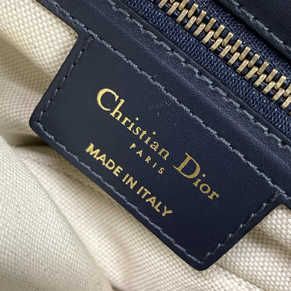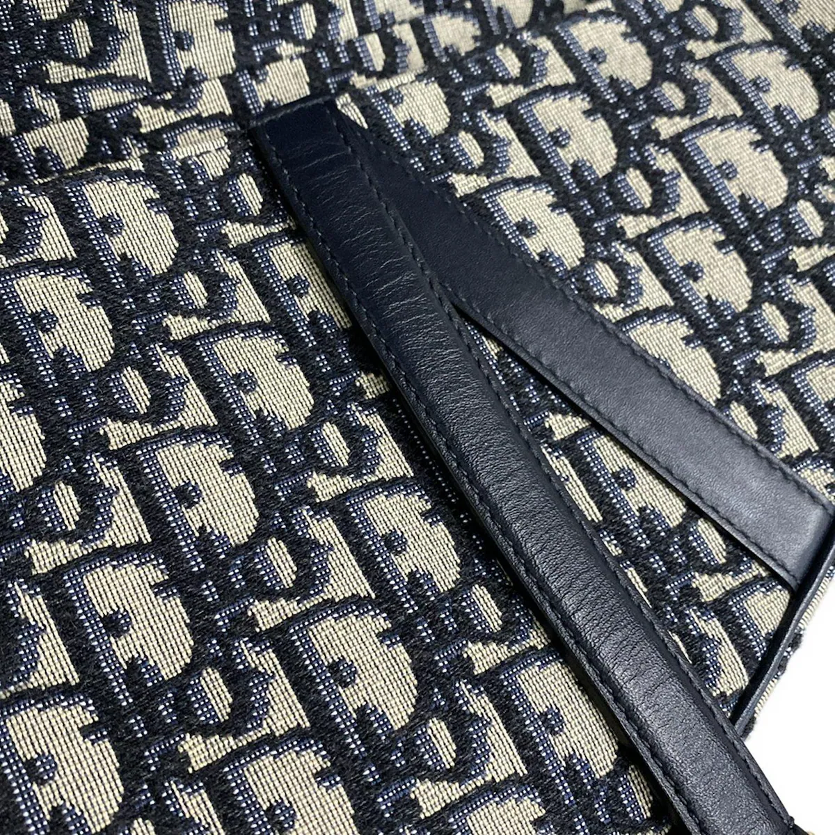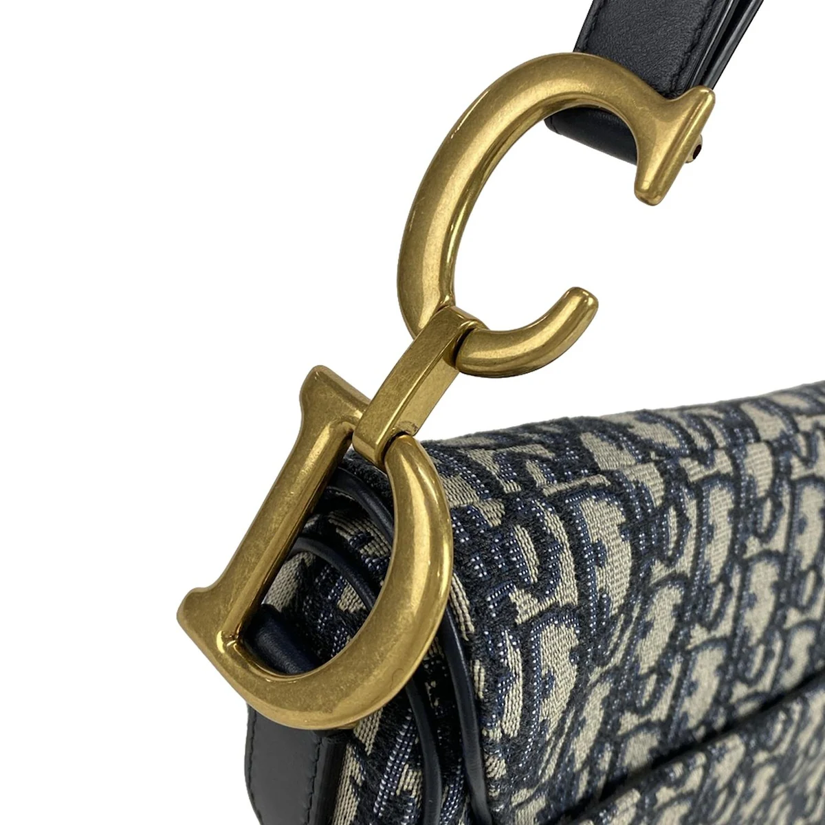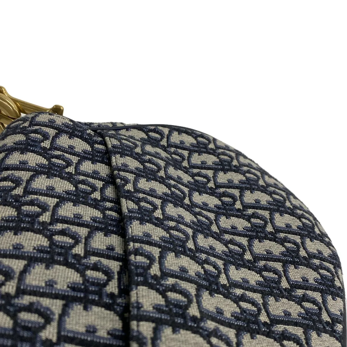 Mejora tu juego de accesorios con el bolso de hombro Saddle Bag de piel jacquard azul marino y crema de DIOR, una combinación perfecta de estilo y practicidad.